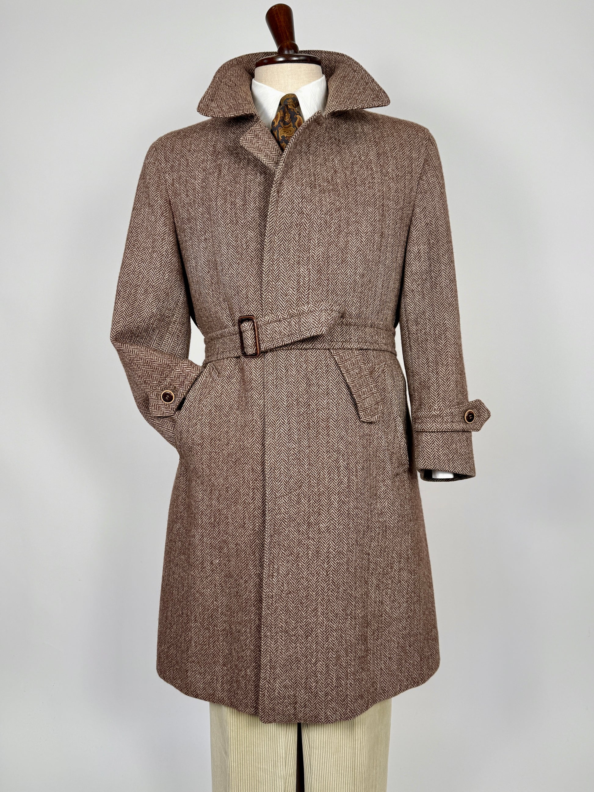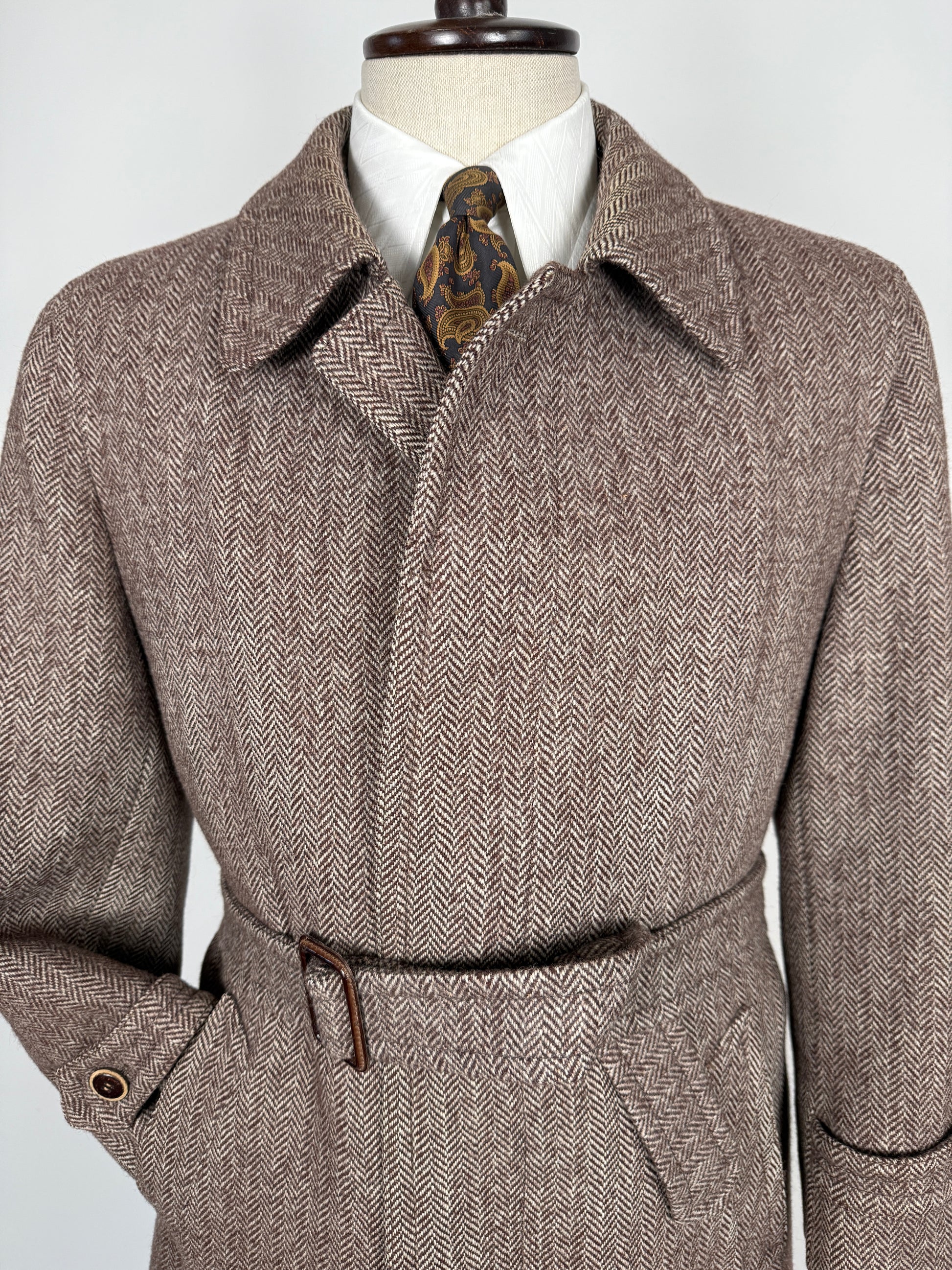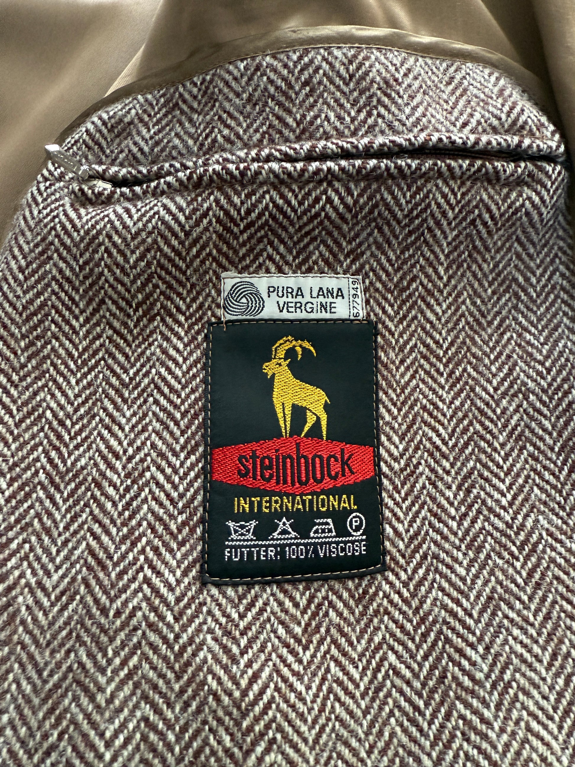 Cappotto Steinbock anni ‘70/‘80 in tweed 100% lana con trama herringbone marrone.
