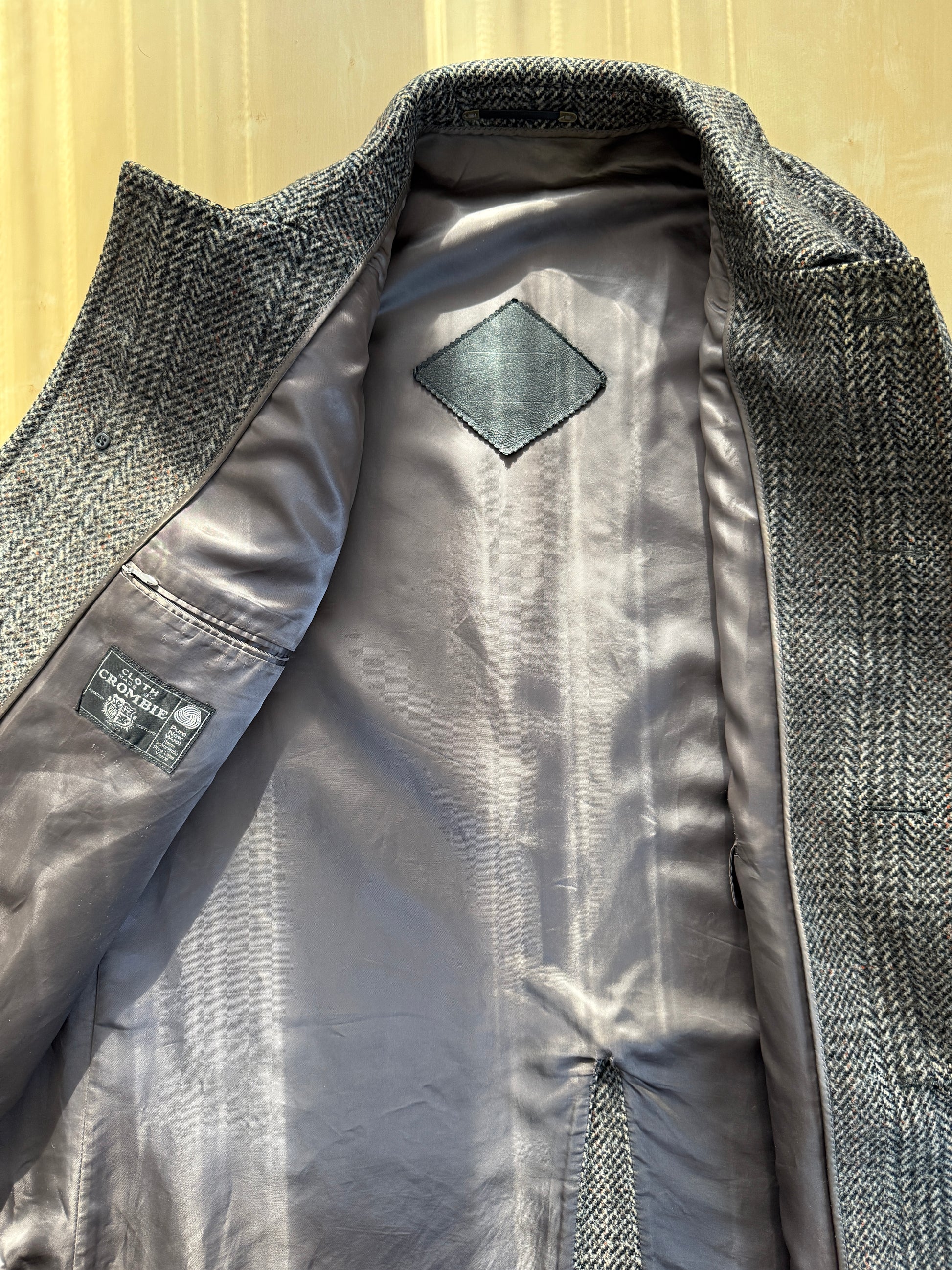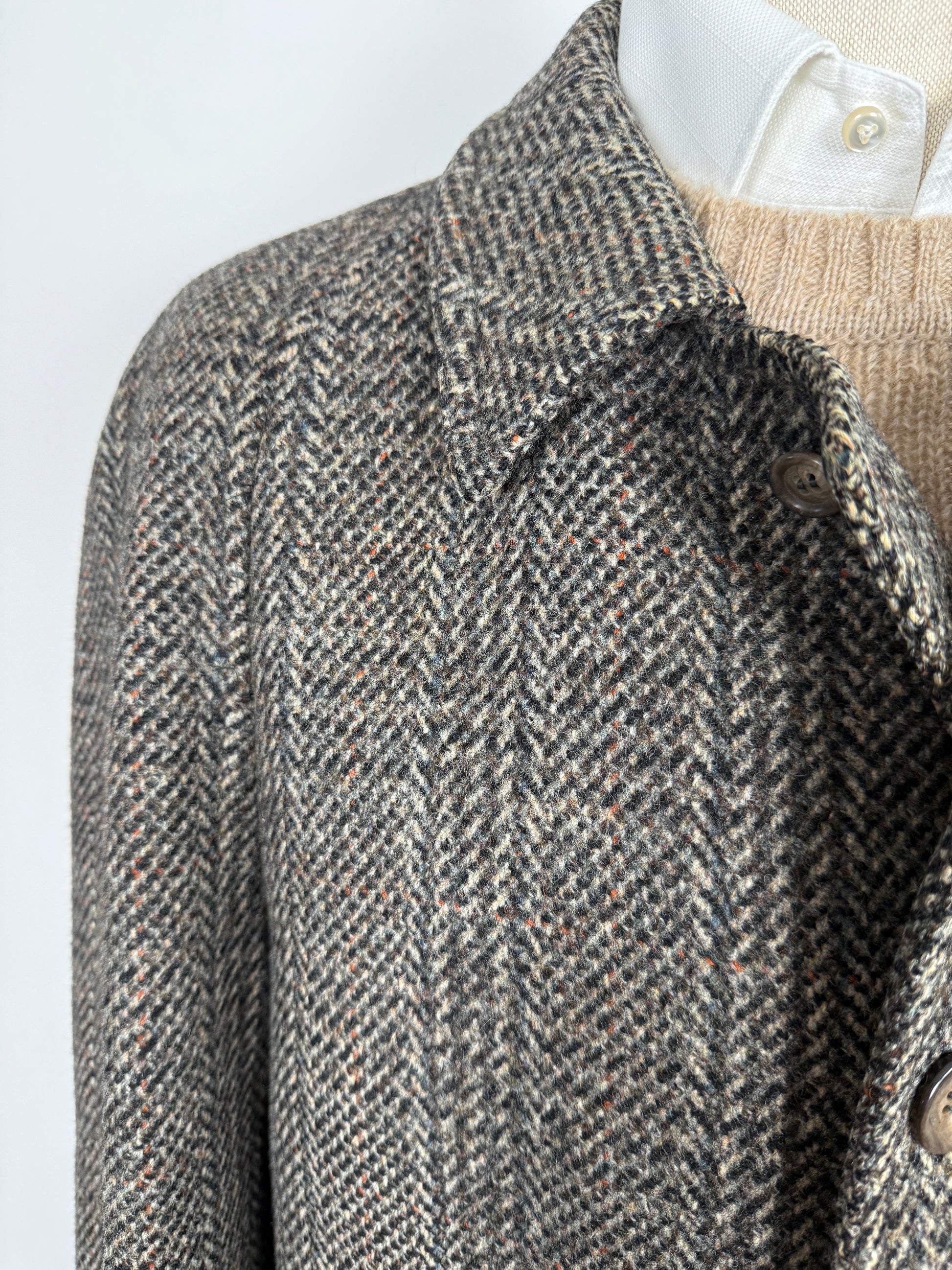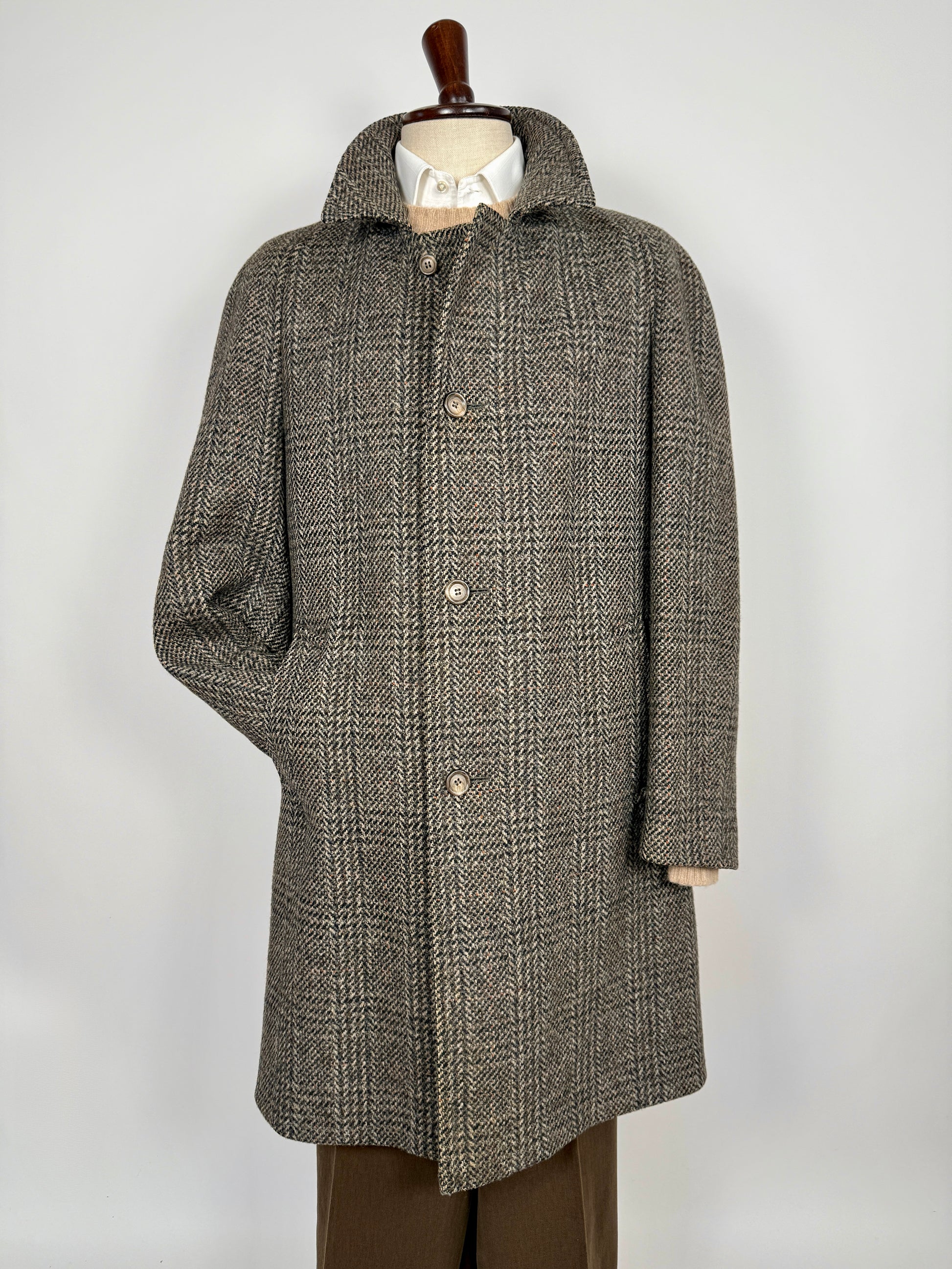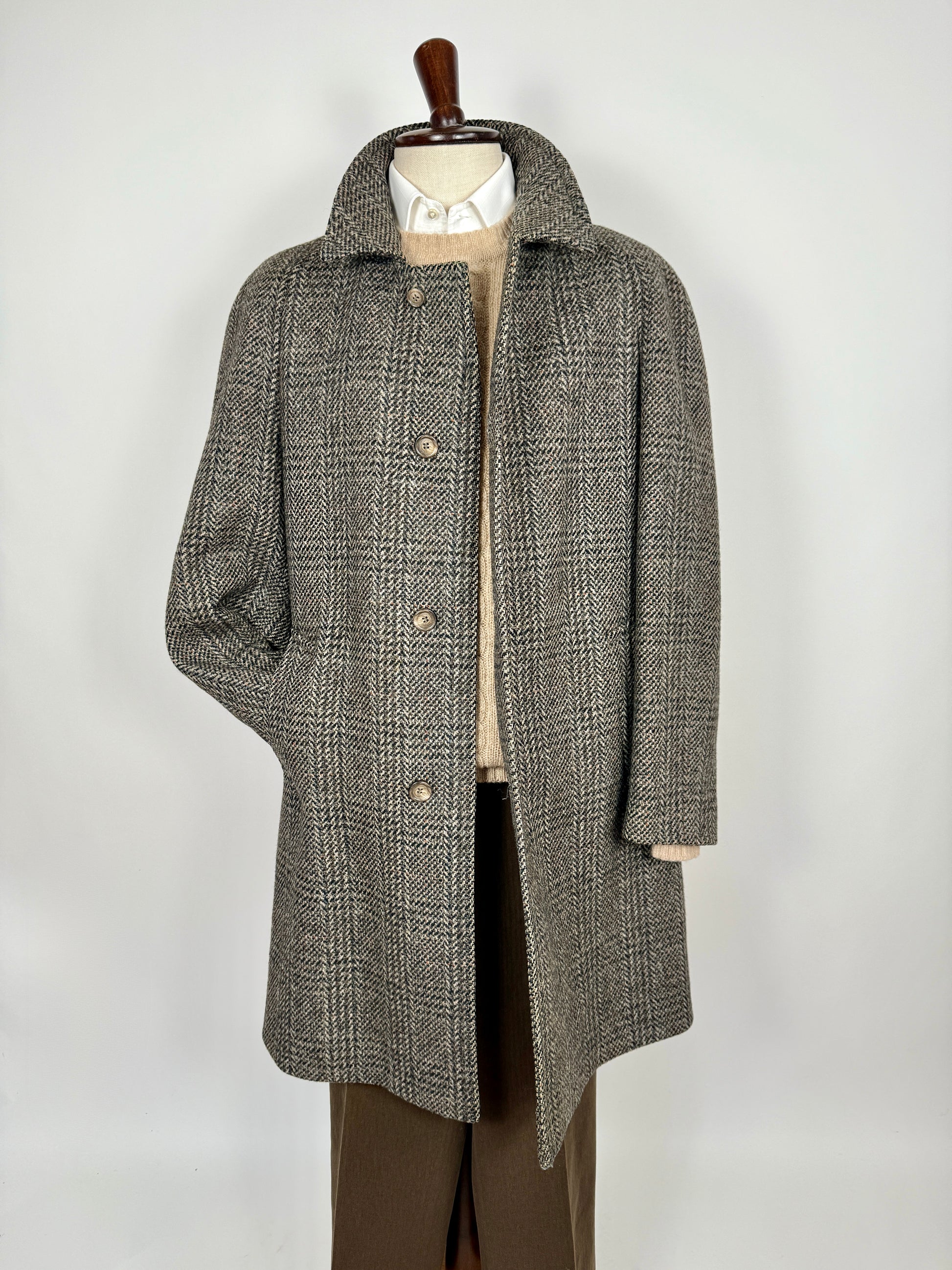 Cappotto raglan anni ‘80 di confezione italiana, confezionato con uno splendido tweed scozzese di Crombie (100% lana vergine).