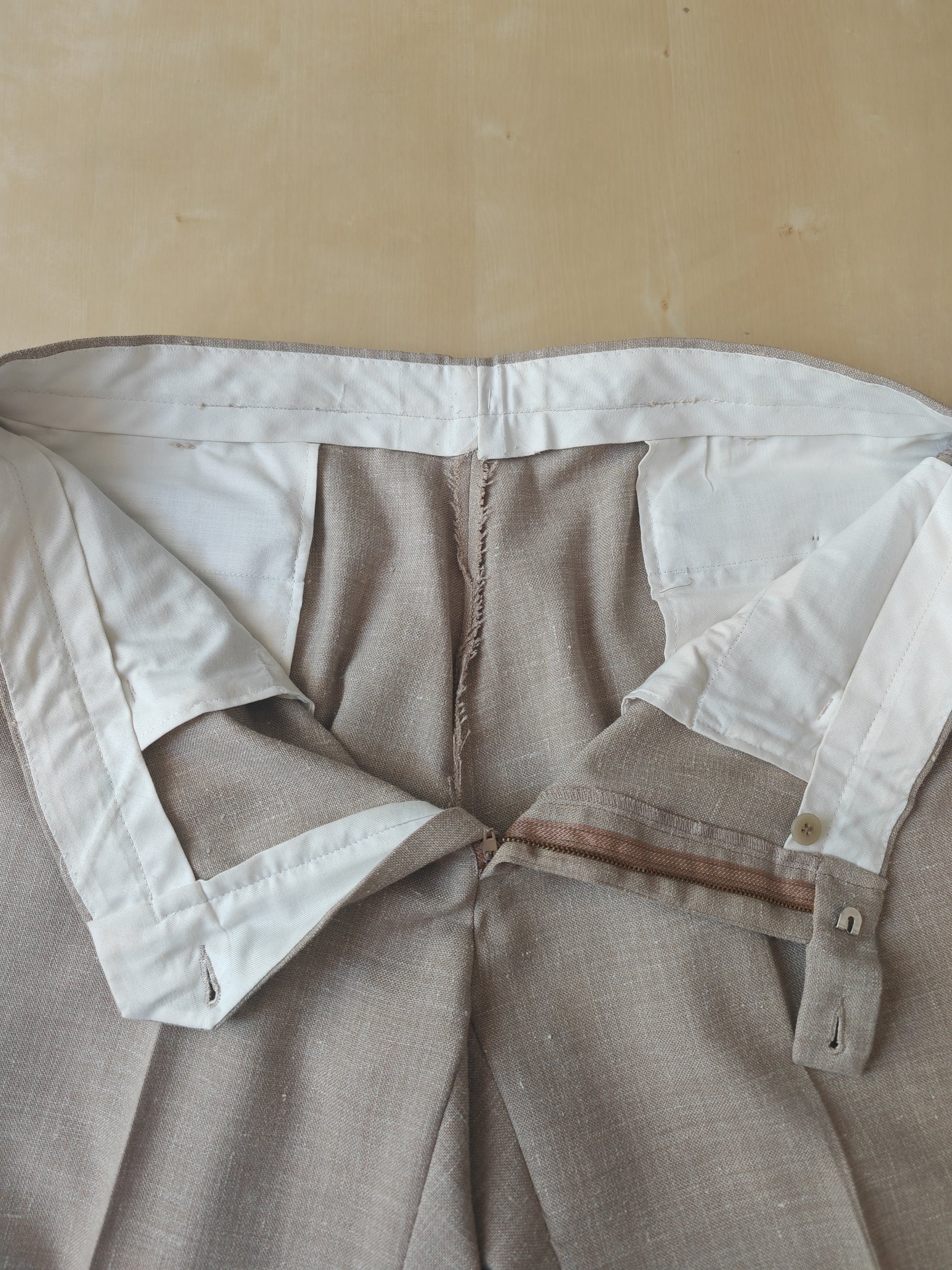 Completo estivo anni '70 in tela misto lino ecru - tg. 48/50