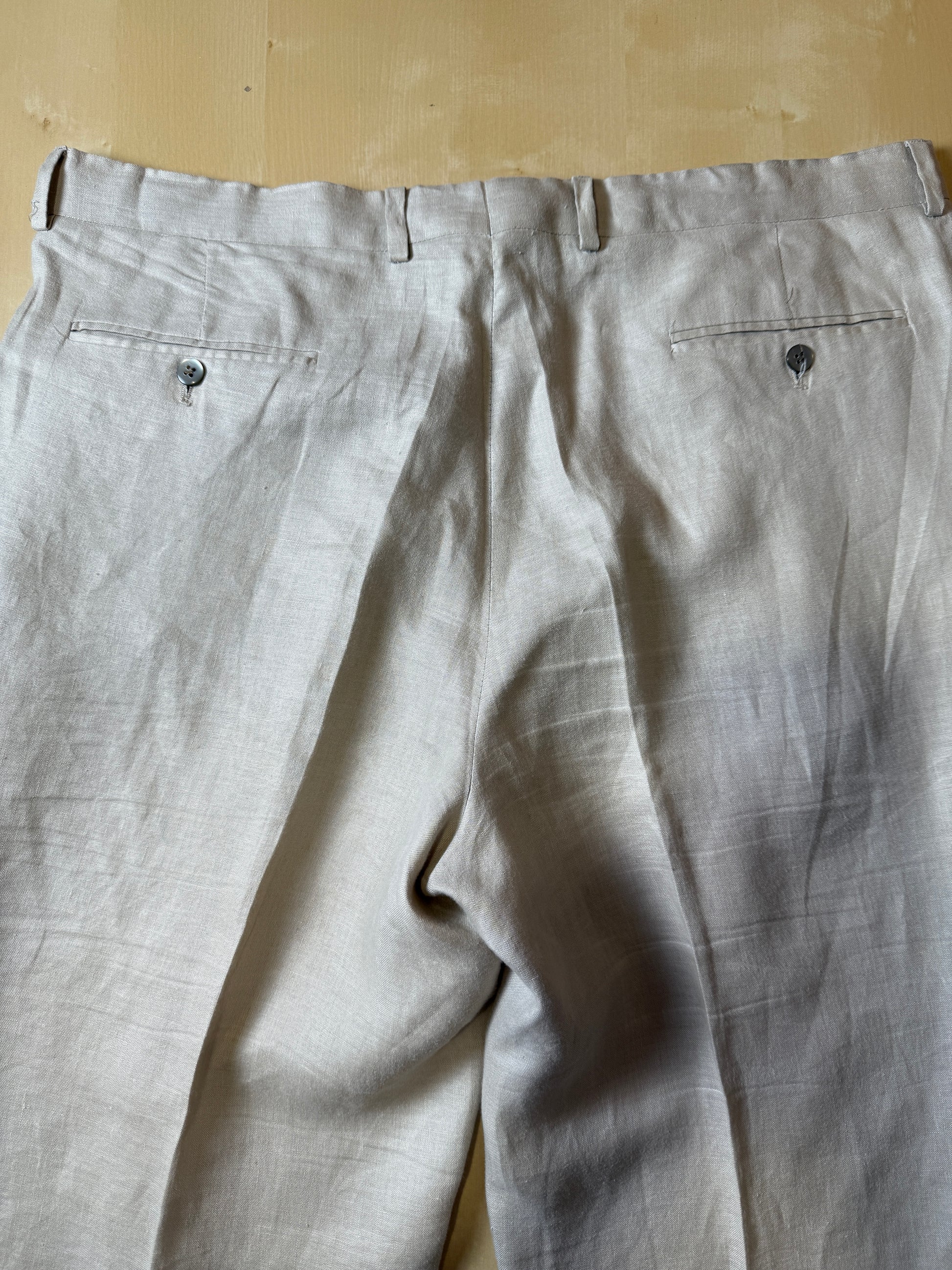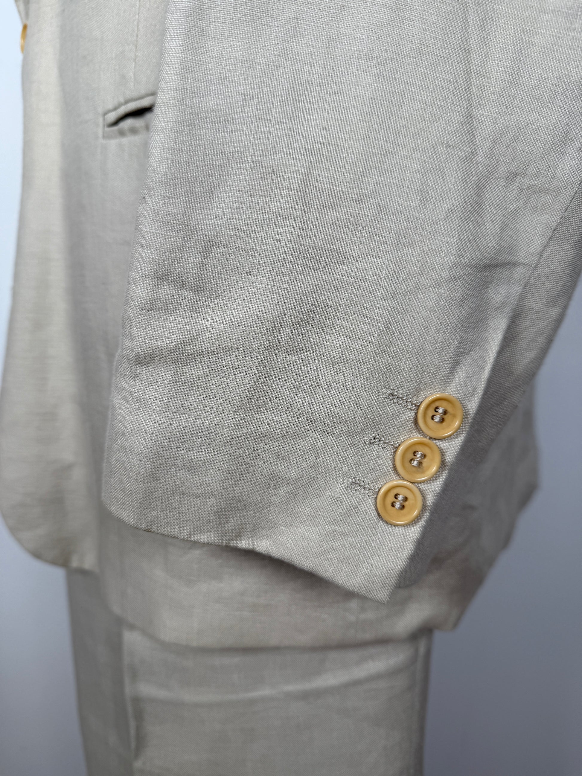 Completo anni ‘80 di confezione Lebole, in puro lino color beige chiaro/ecru.