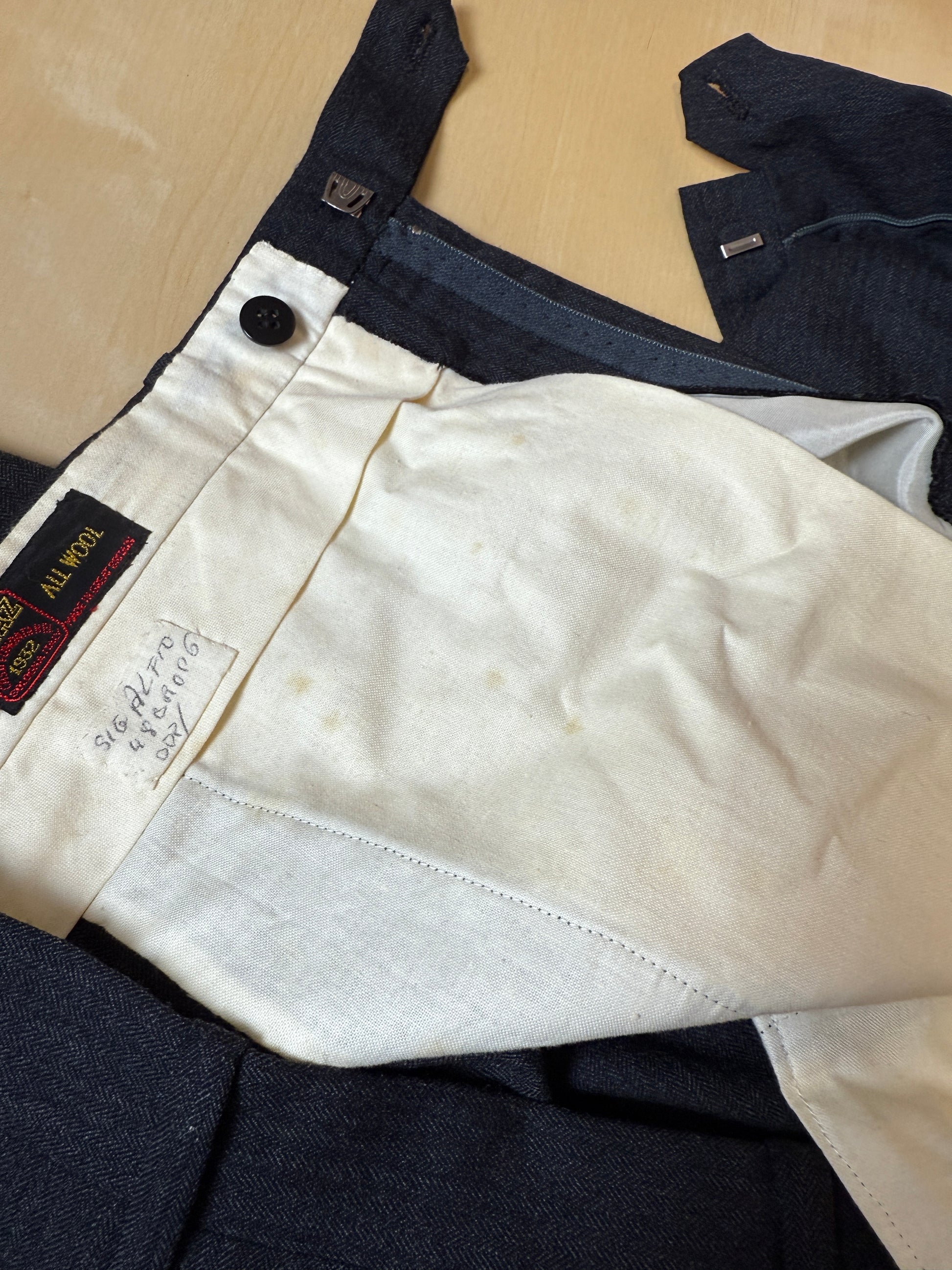 Condizioni ottime. Qualche minimo e ininfluente segno limitato alla fodera interna dei pantaloni.