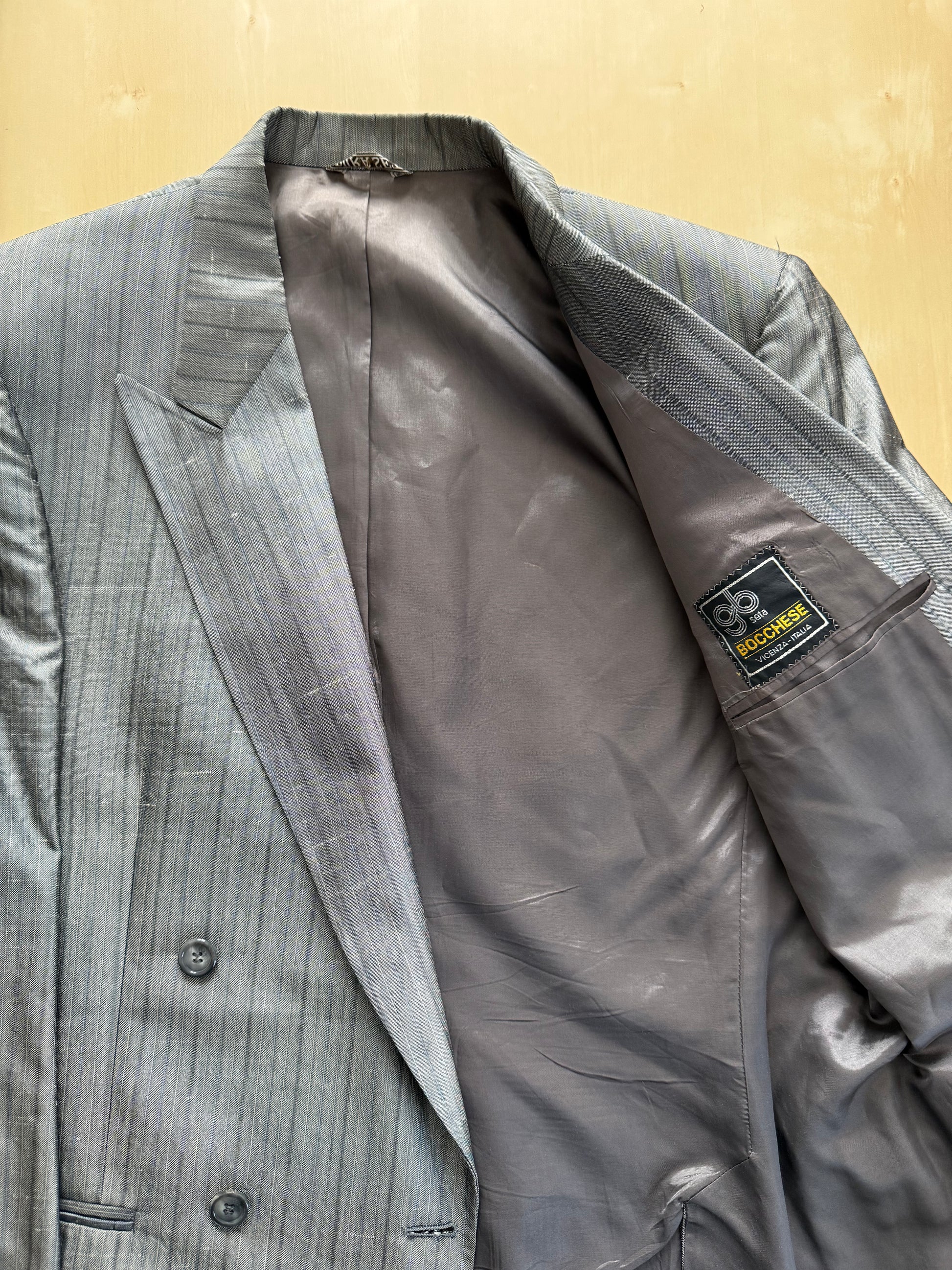 Completo doppiopetto anni ‘70/‘80 pura seta shantung - tg. 48/50