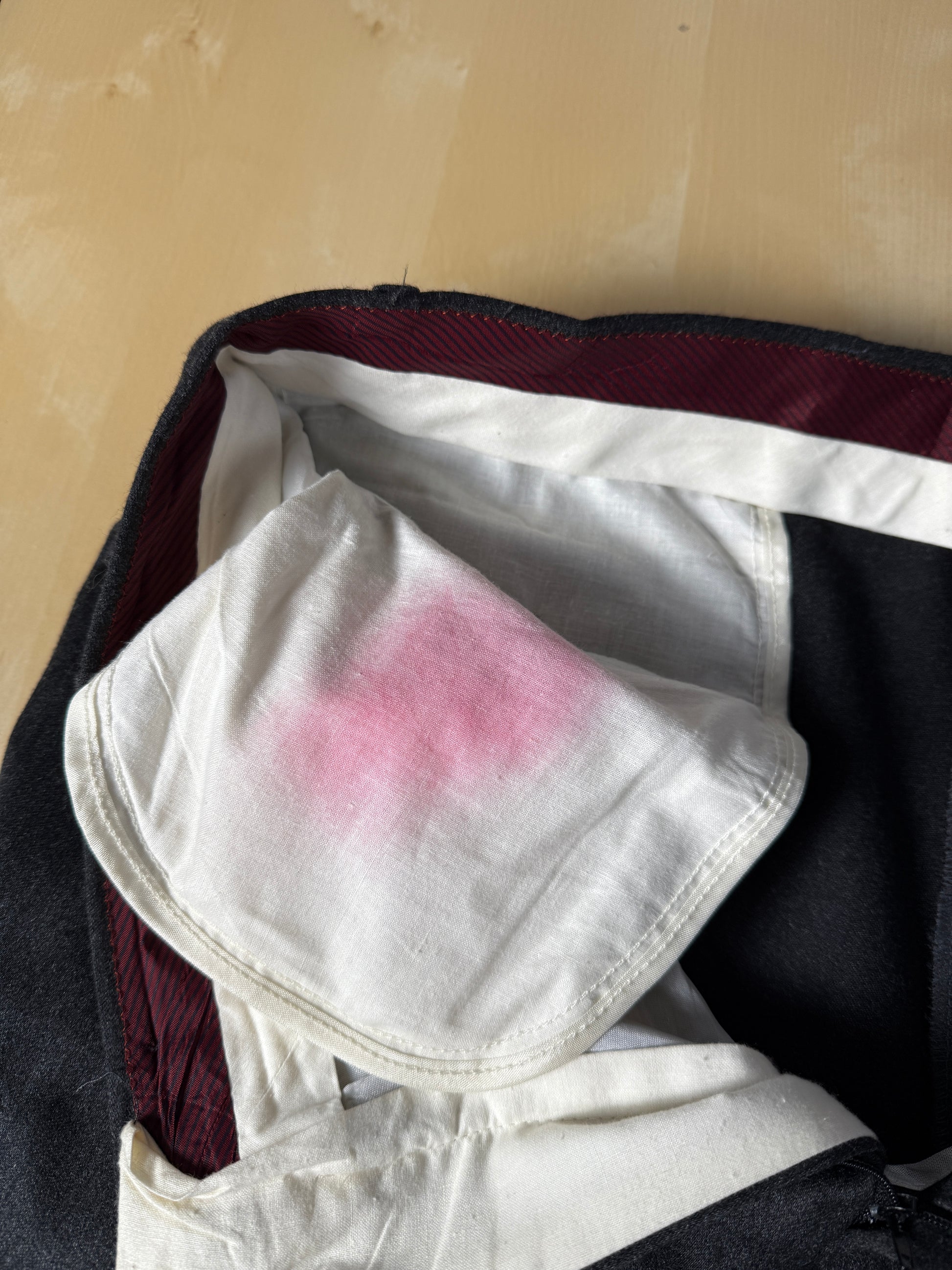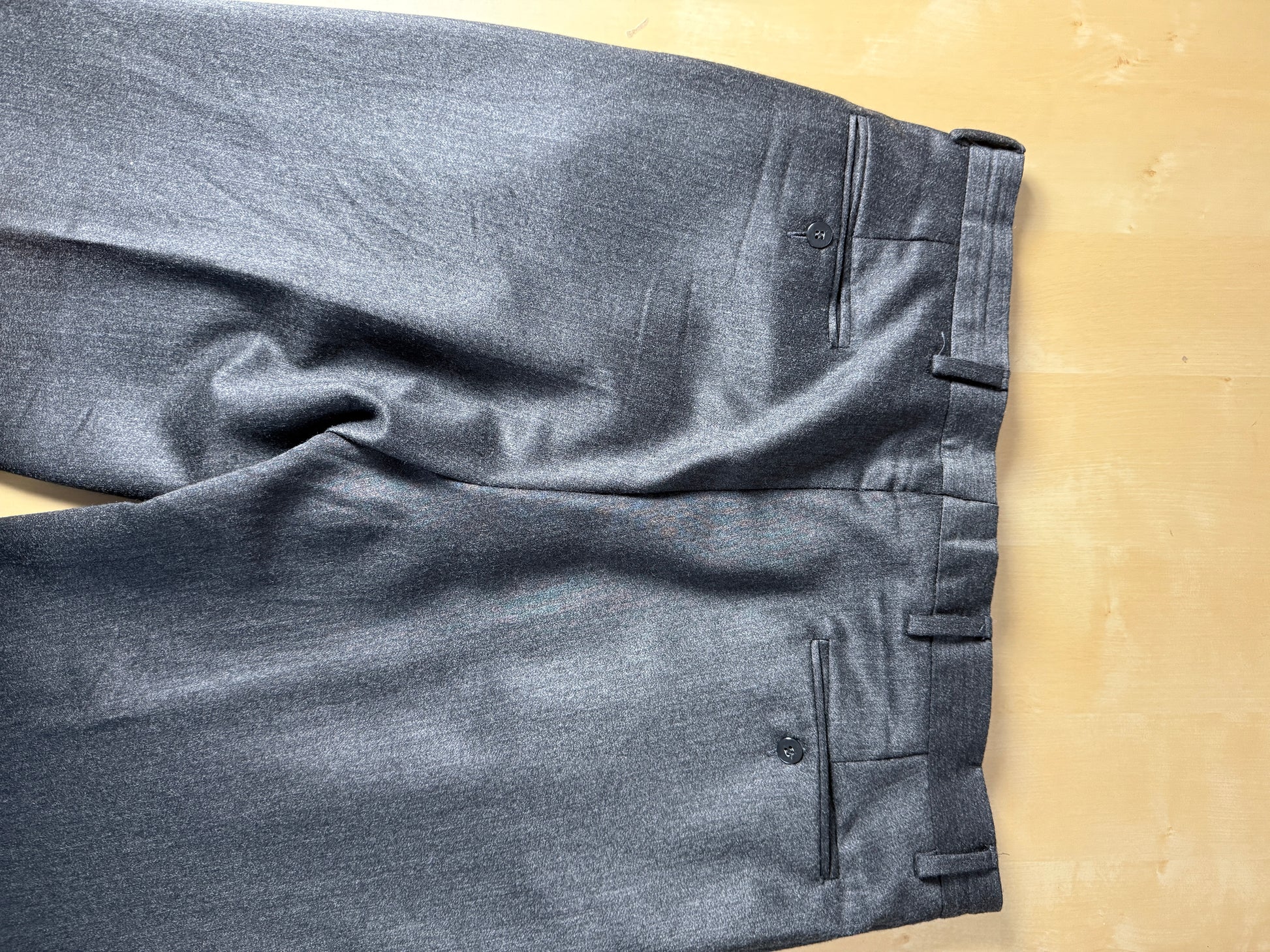 Condizioni ottime. Da segnalare solo la fodera di una tasca posteriore dei pantaloni macchiata (difetto ininfluente e invisibile).