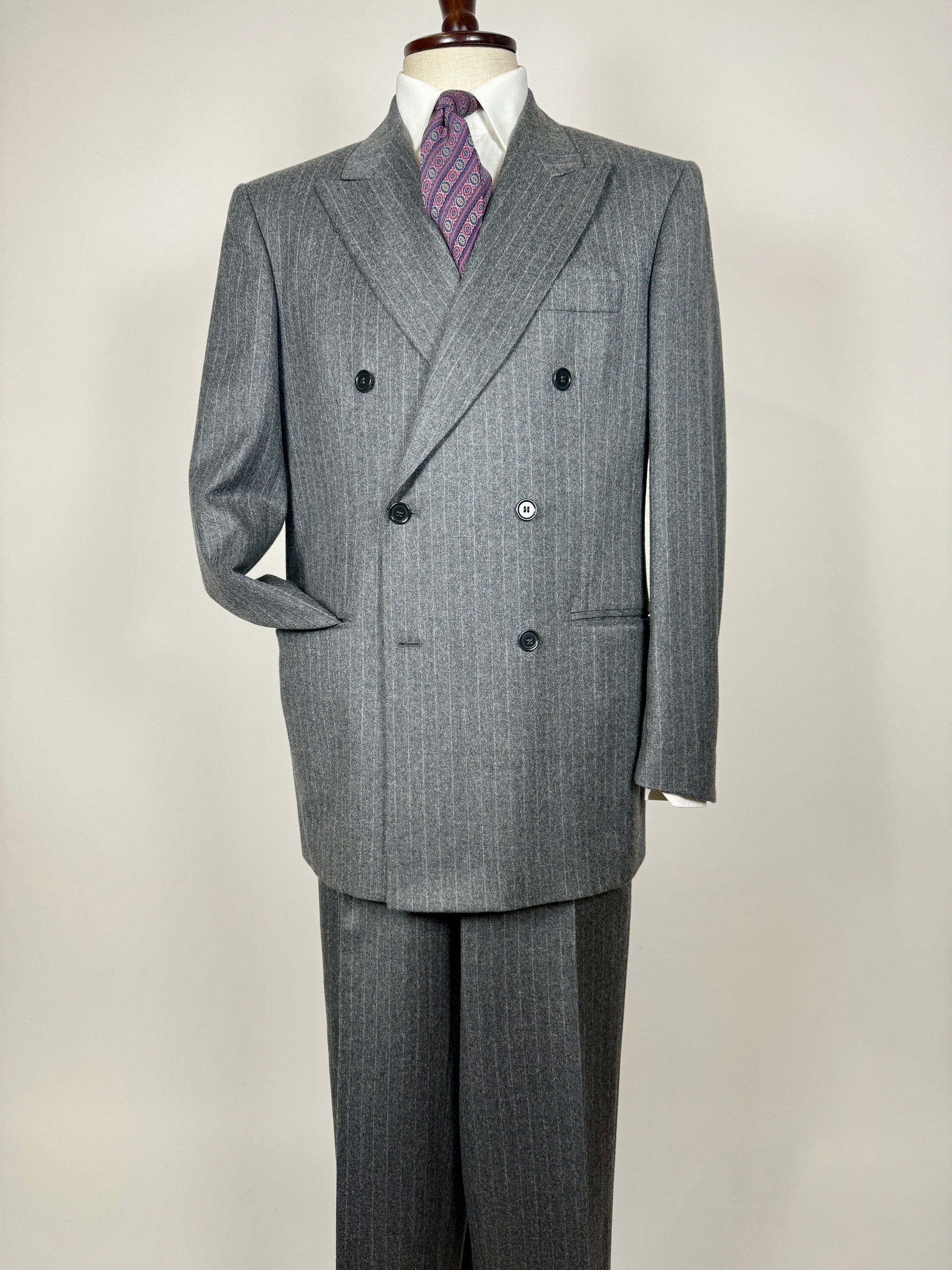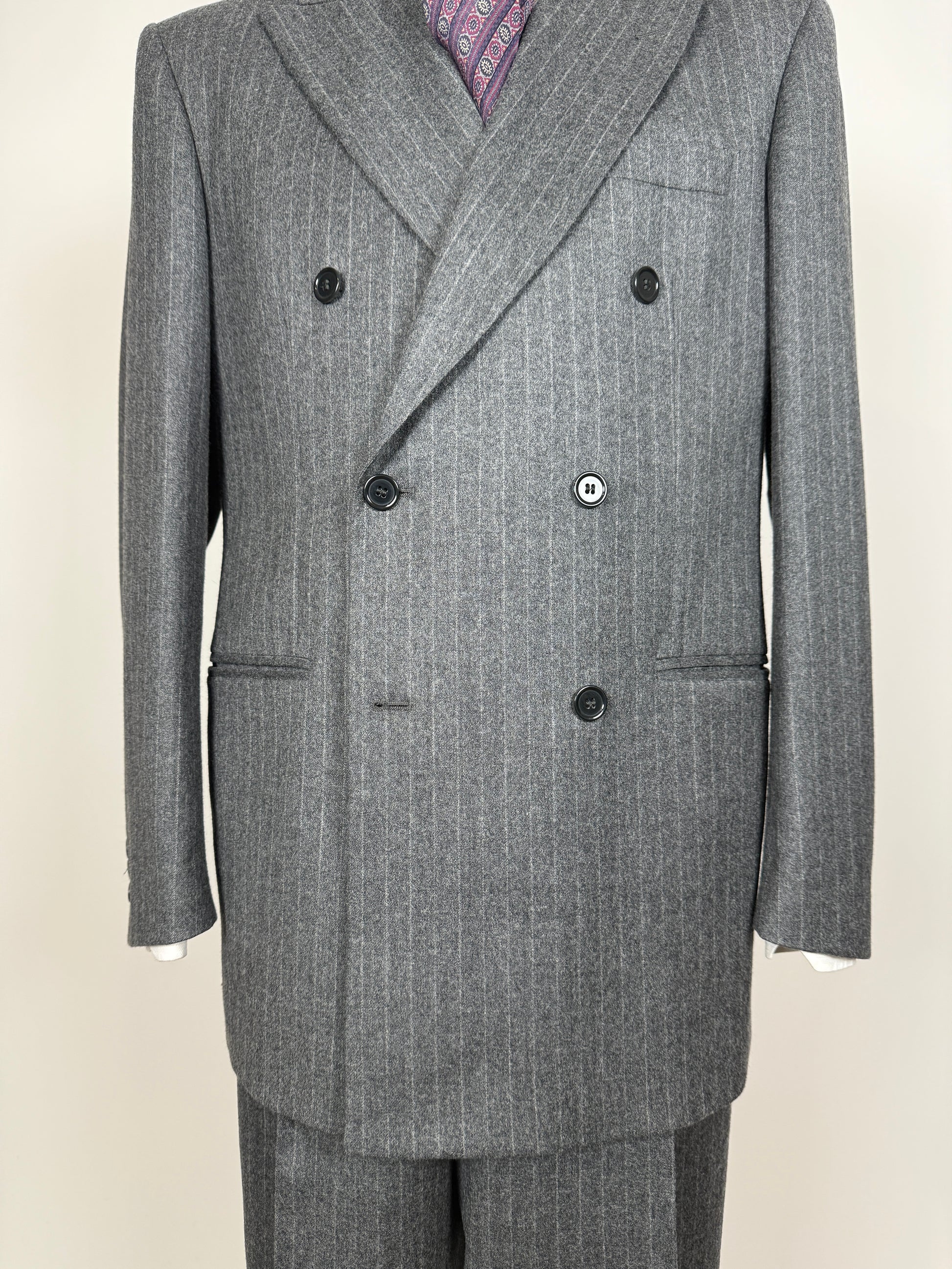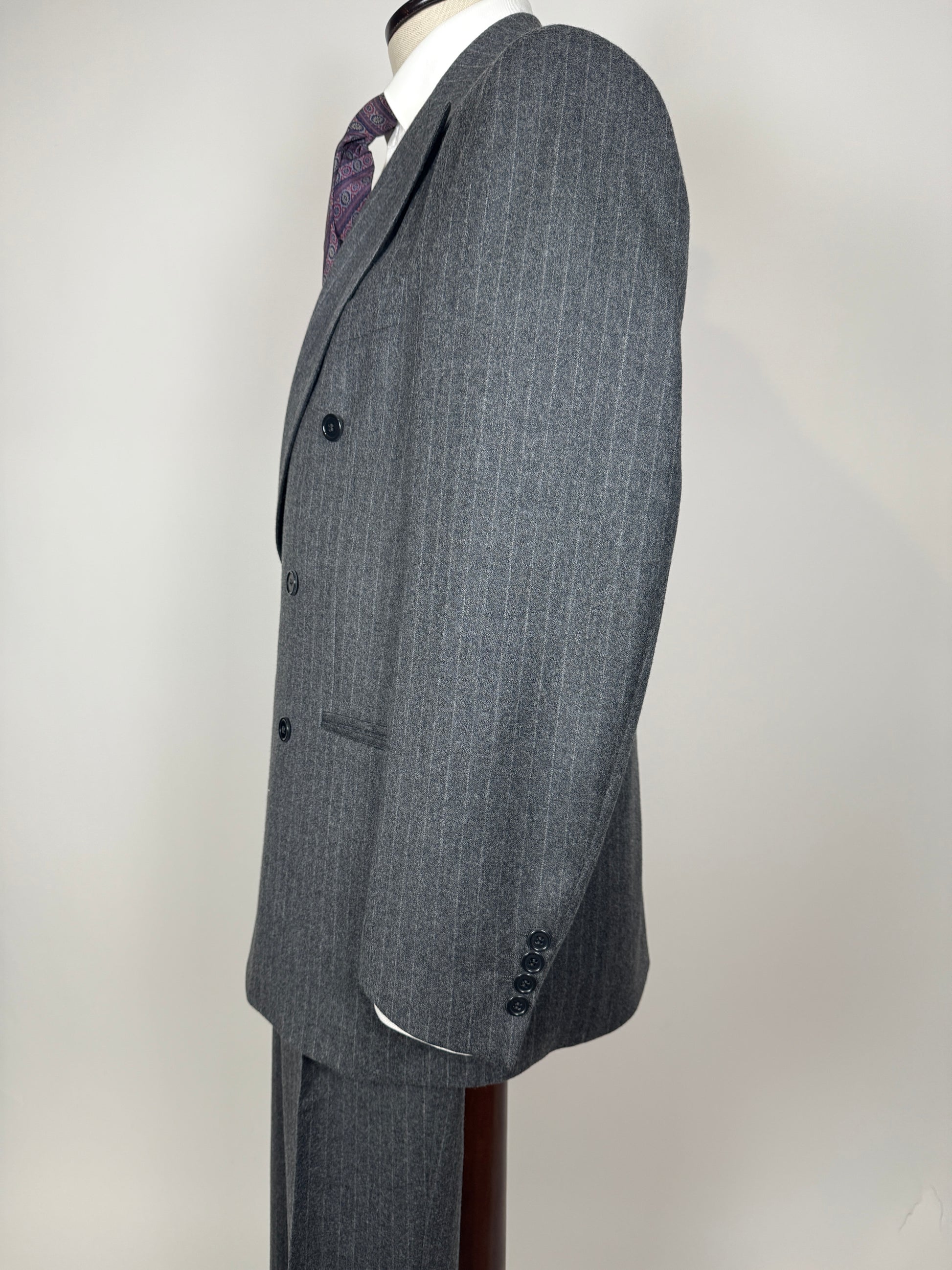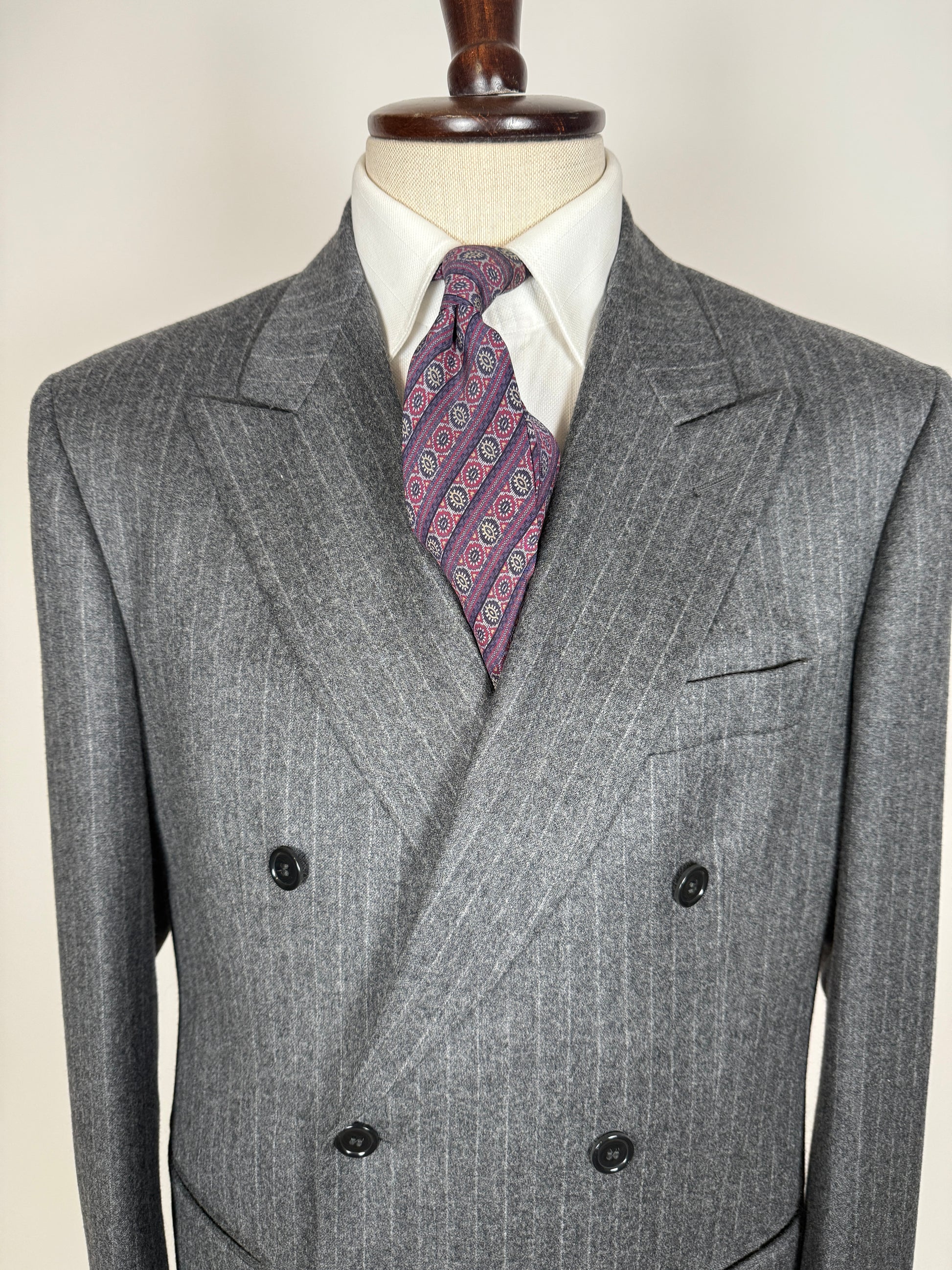Completo doppiopetto flanella grigio gessato anni ‘80/‘90 - tg. 48/50, drop alto