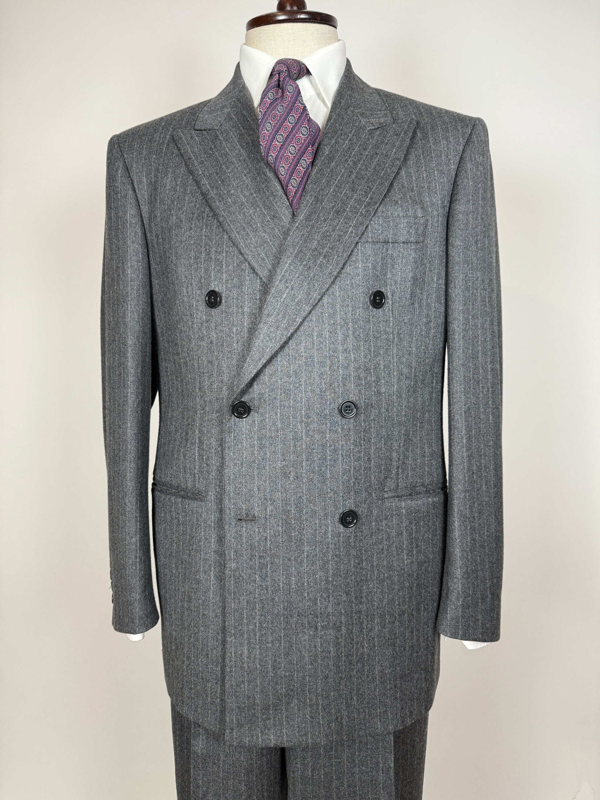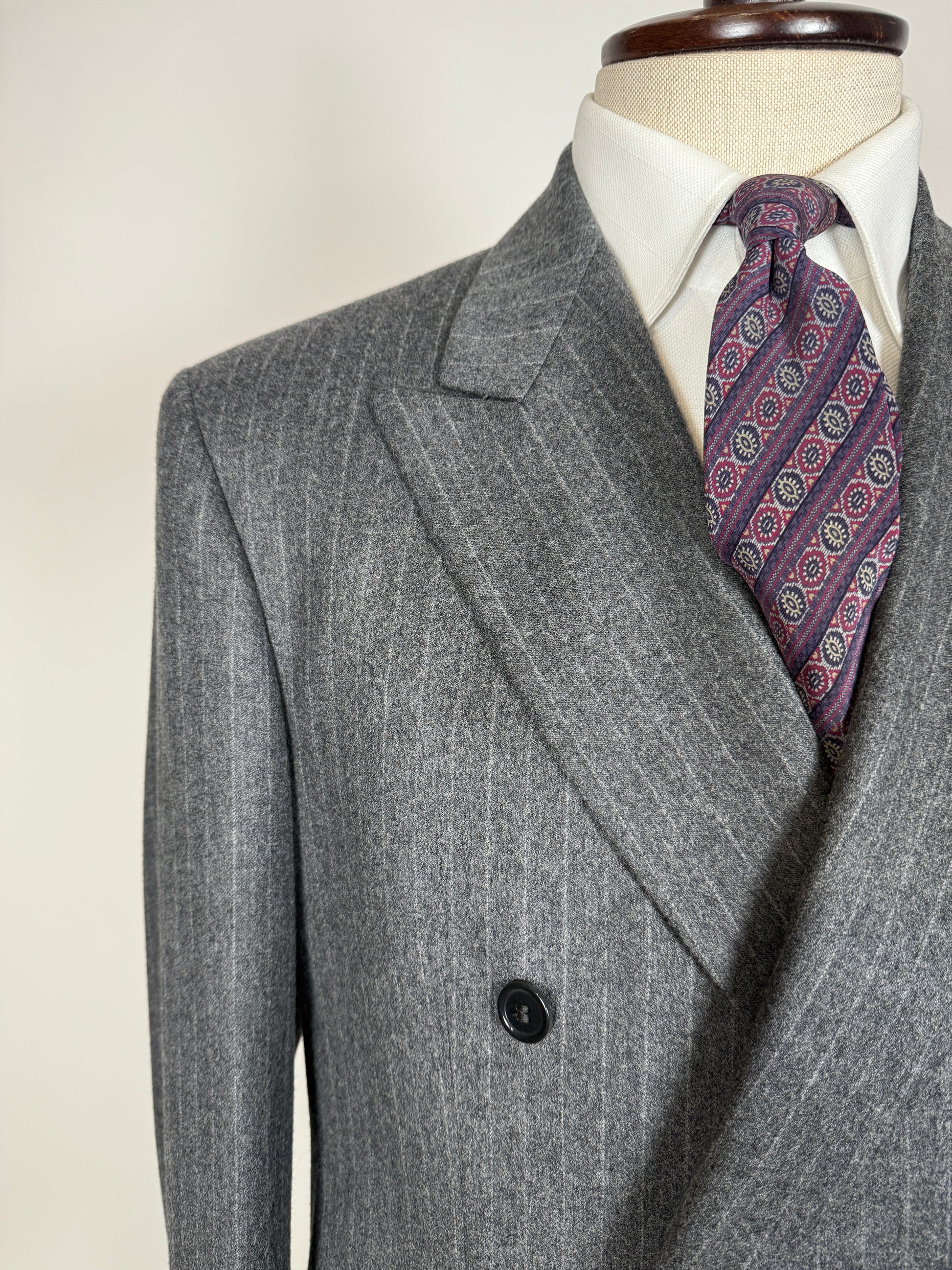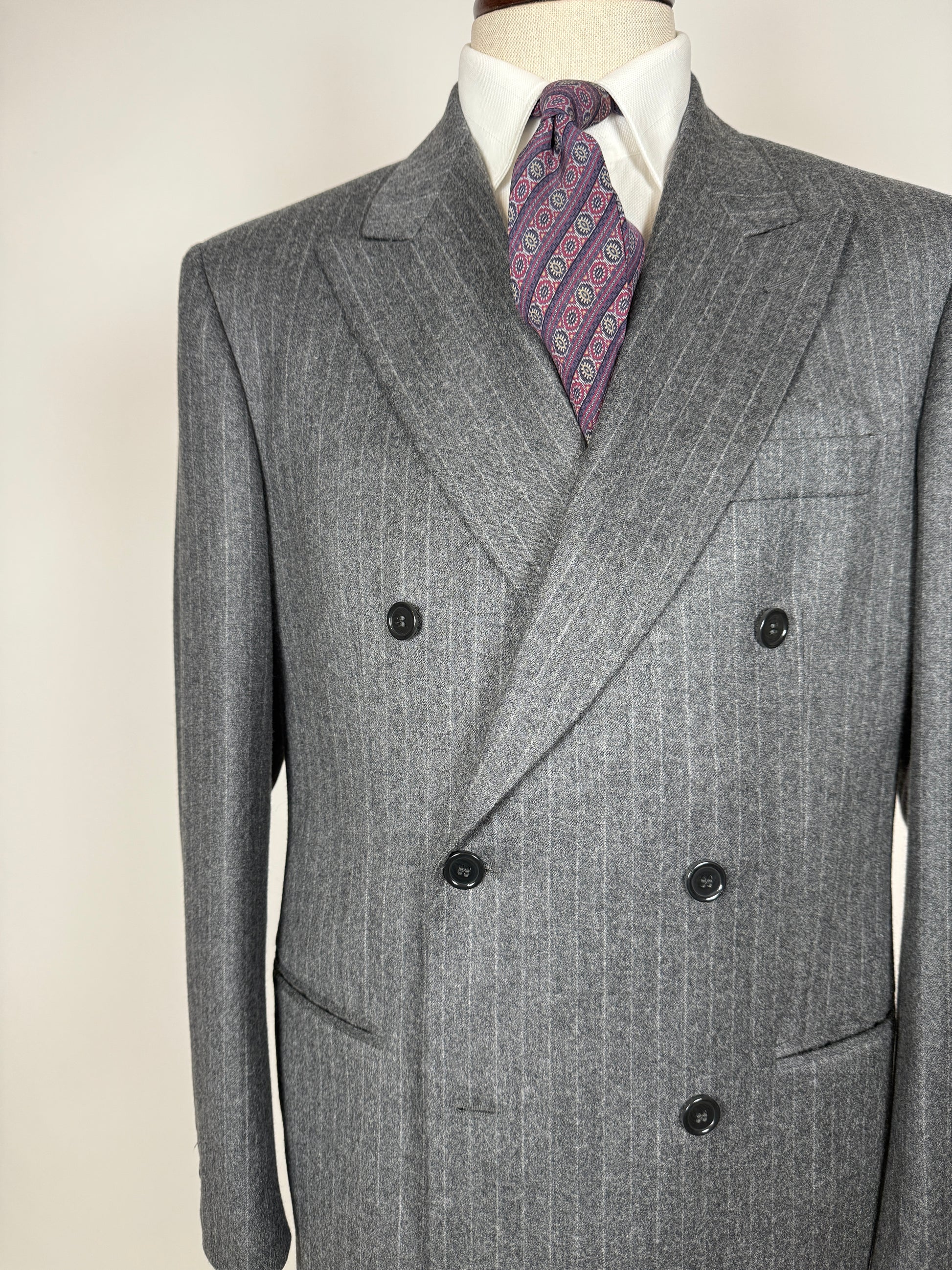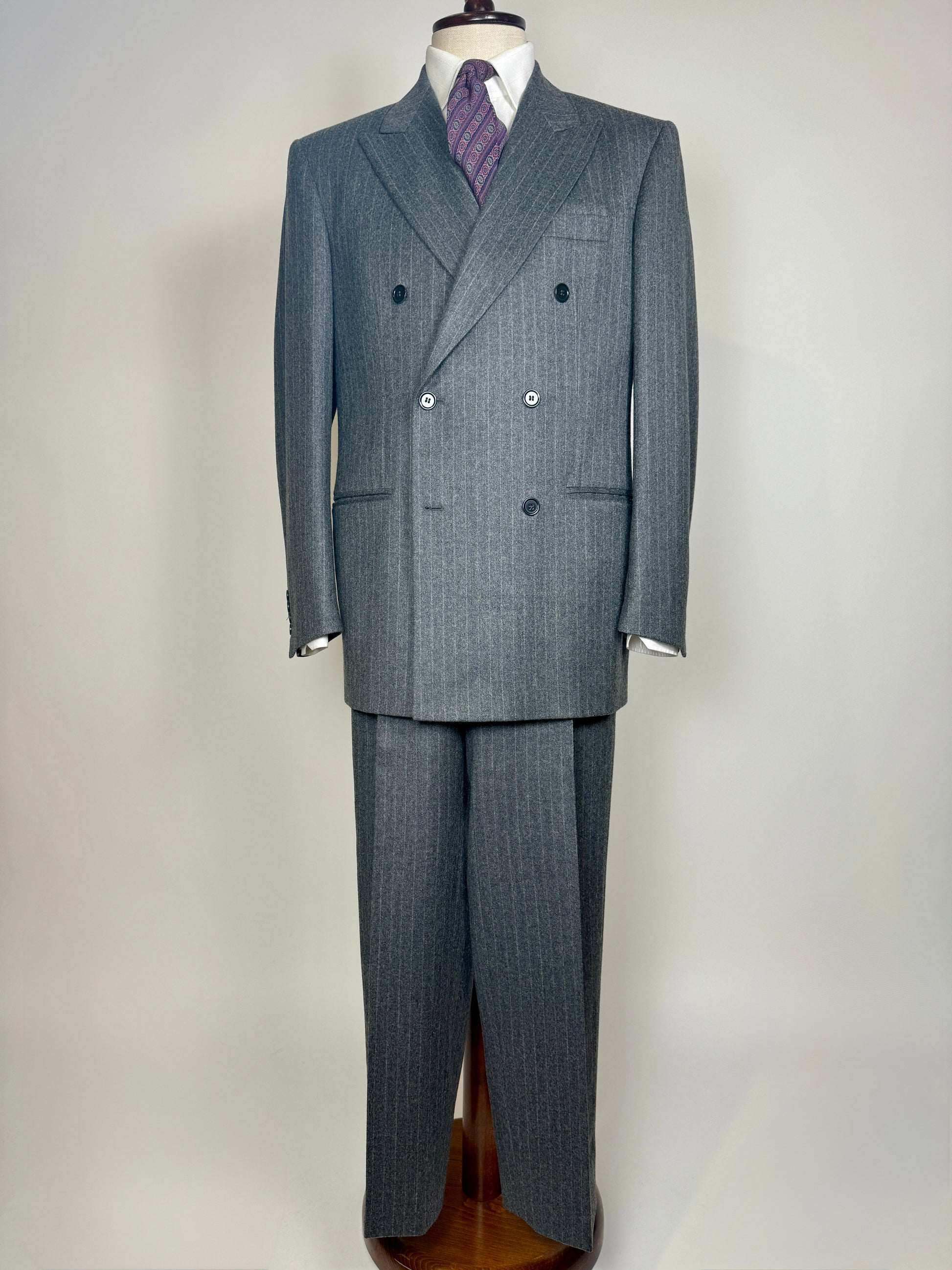 Completo doppiopetto flanella grigio gessato anni ‘80/‘90 - tg. 48/50, drop alto