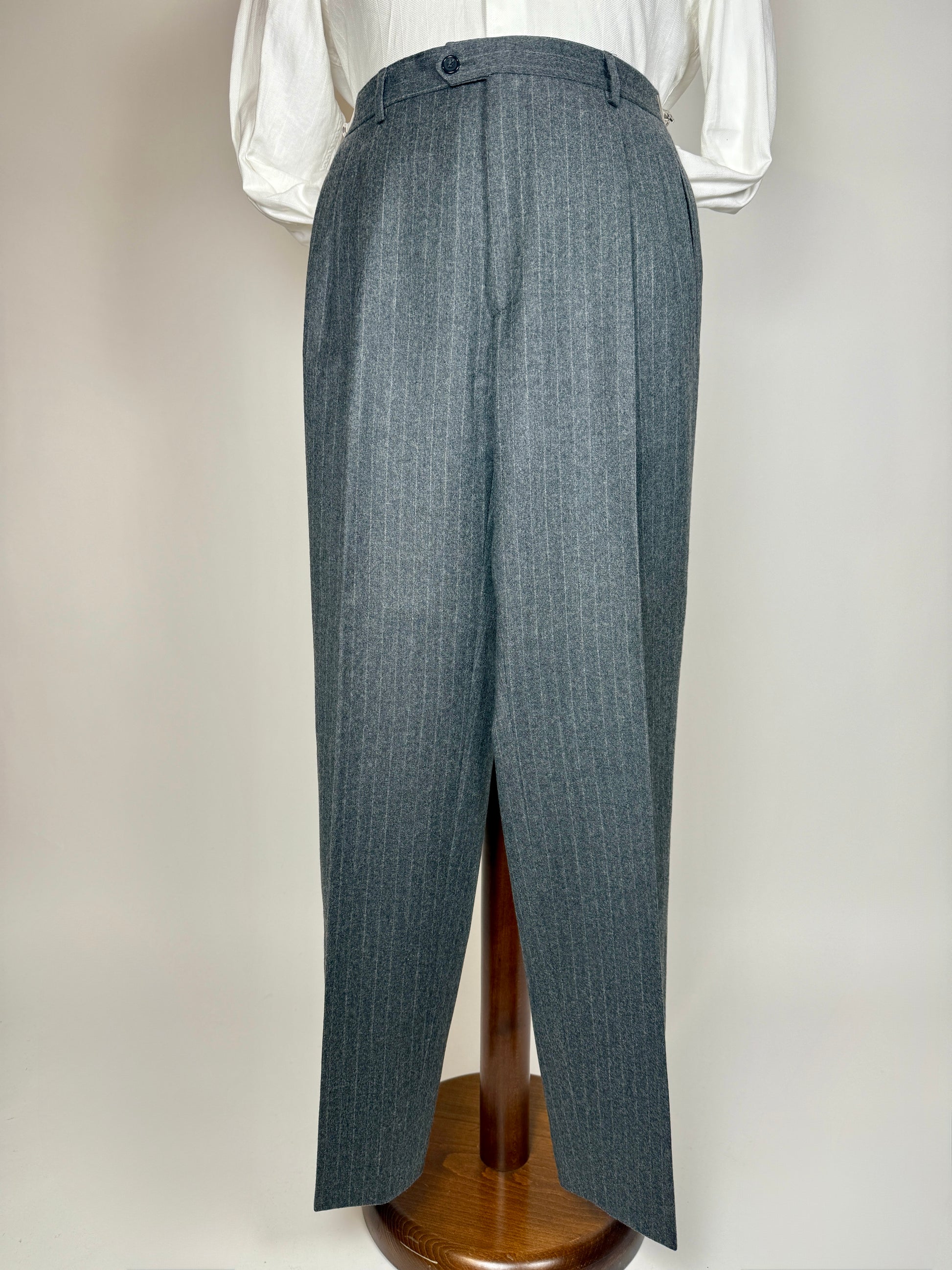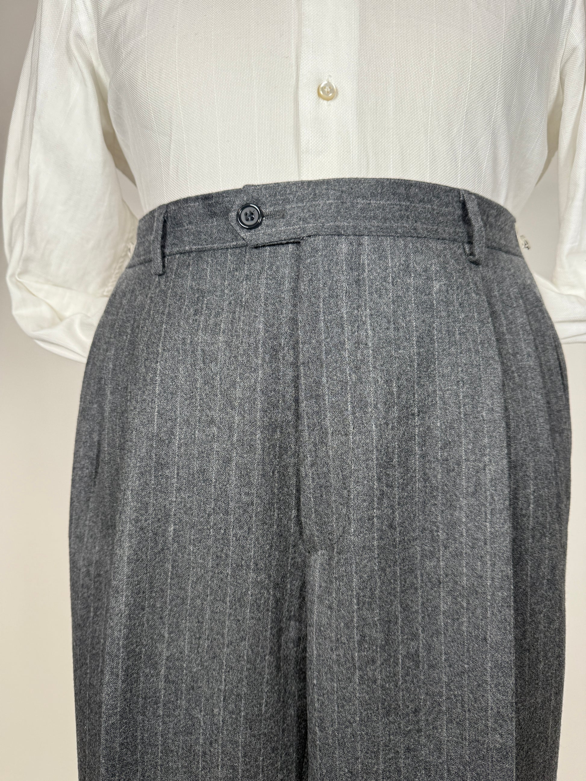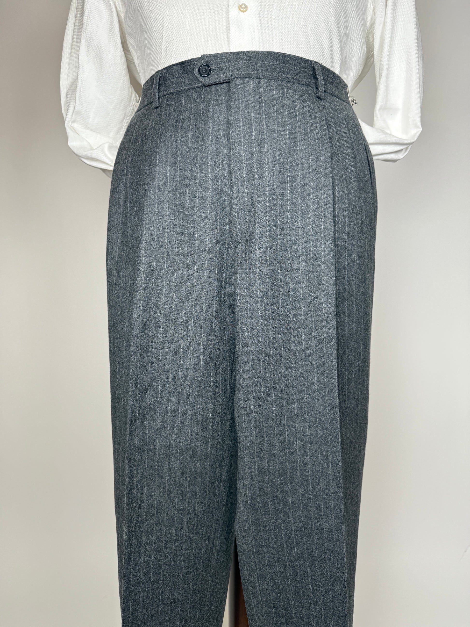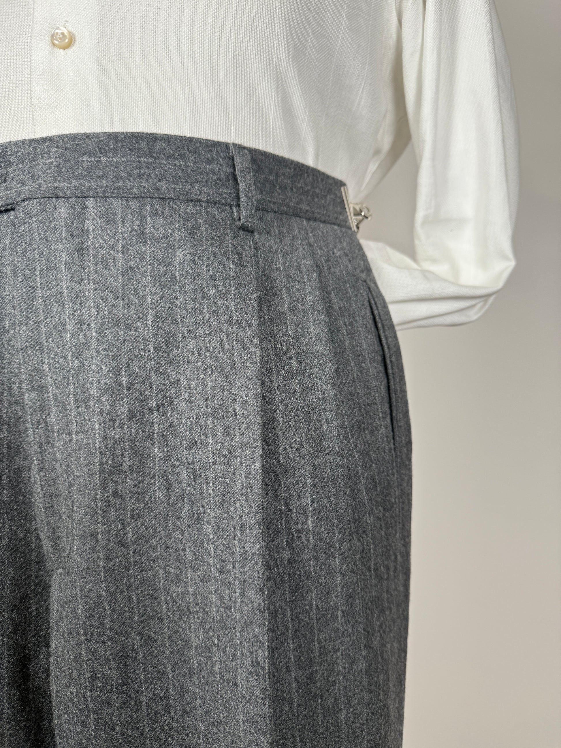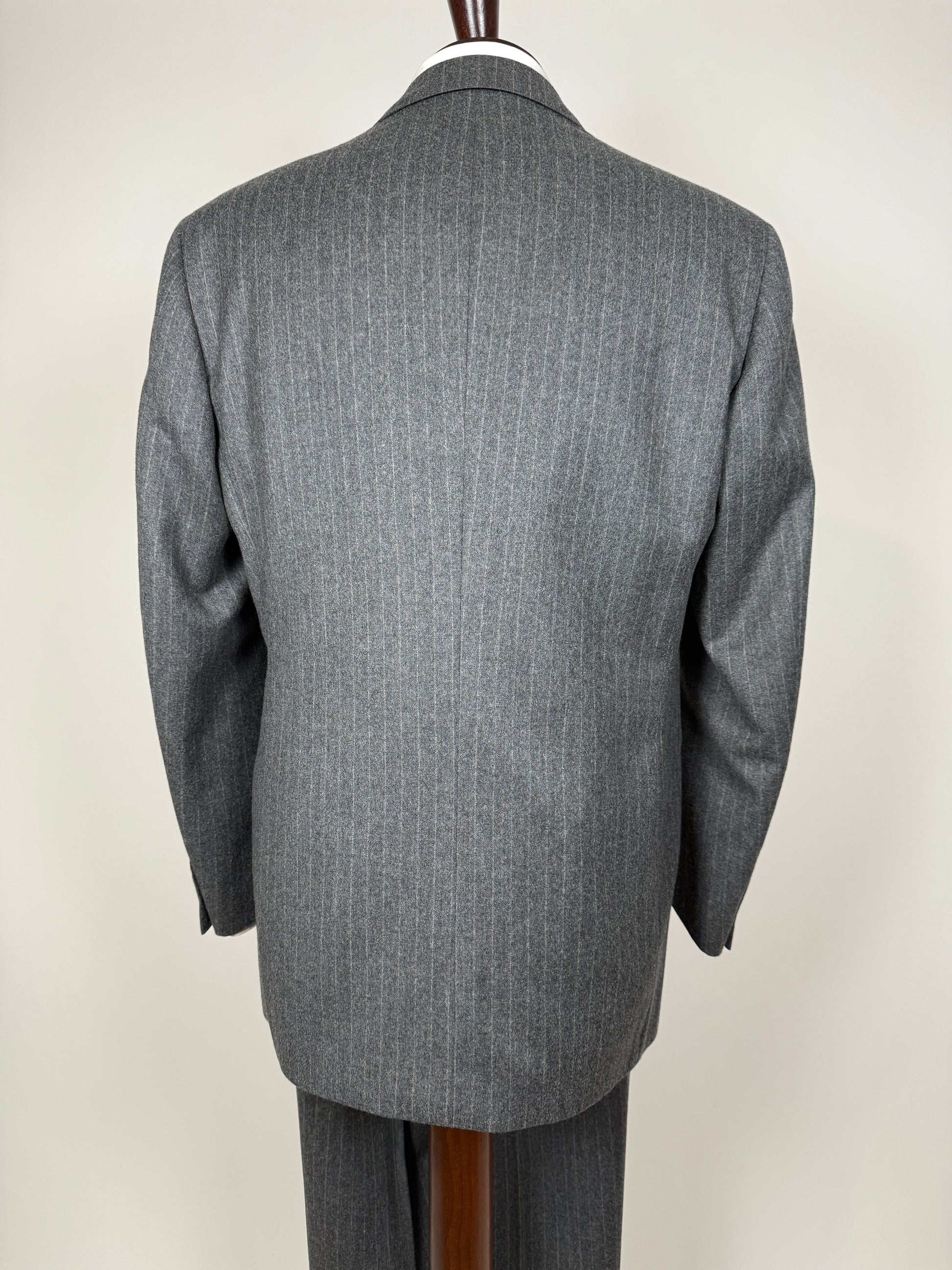 Completo doppiopetto flanella grigio gessato anni ‘80/‘90 - tg. 48/50, drop alto