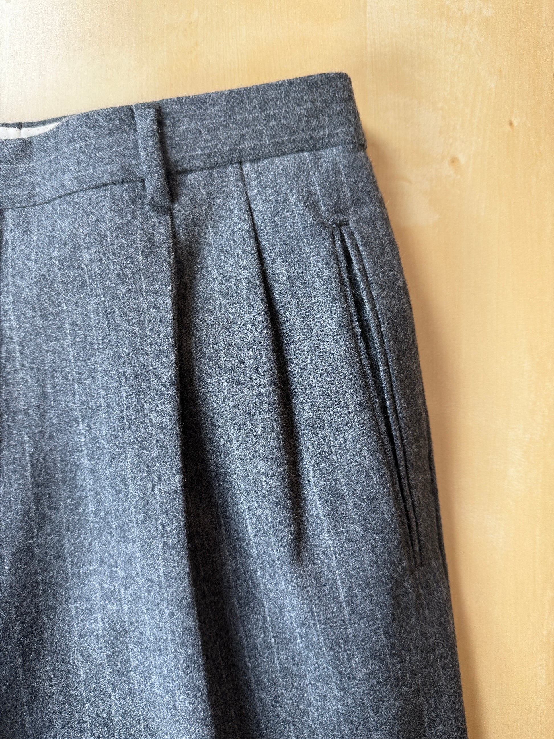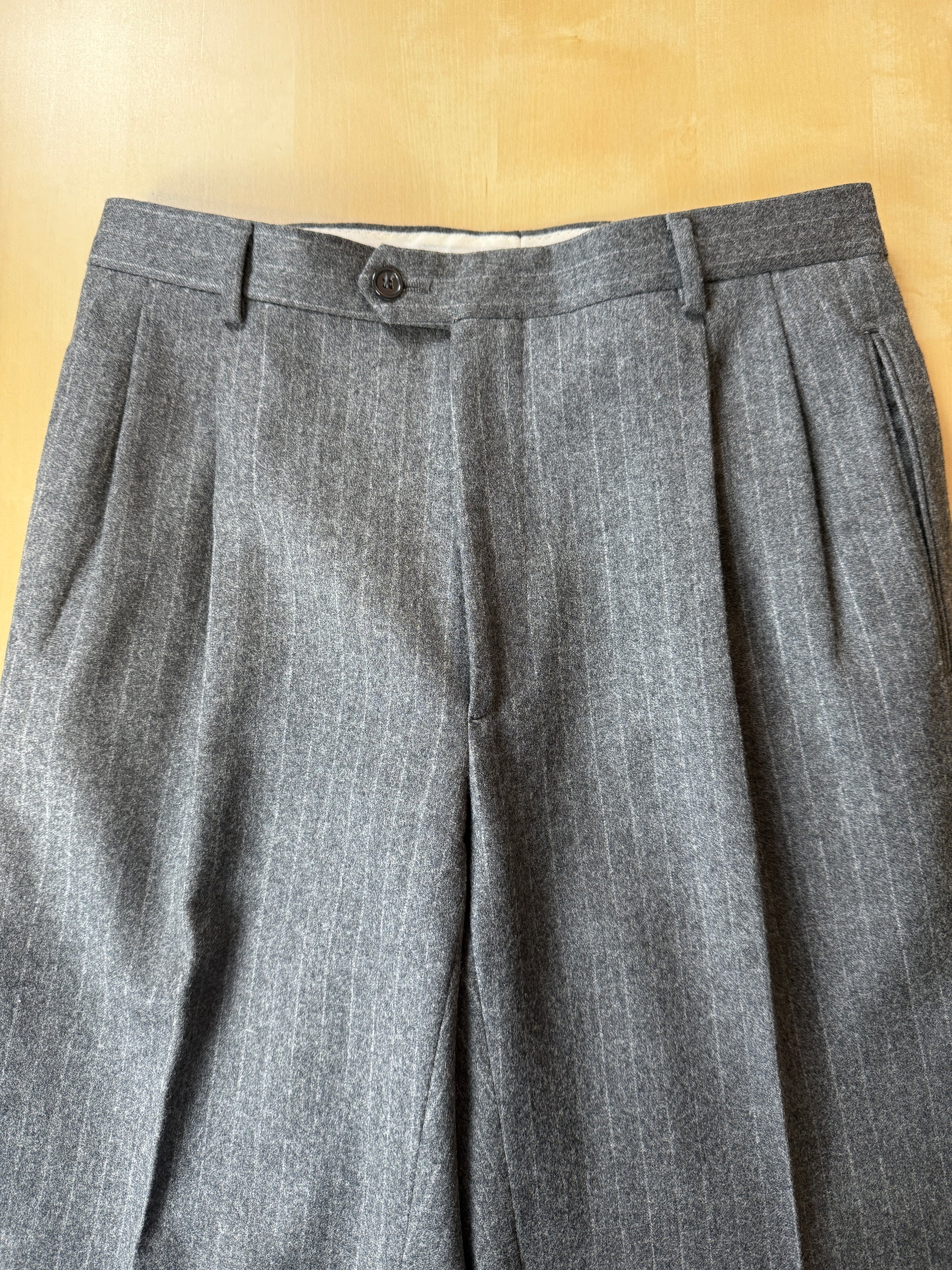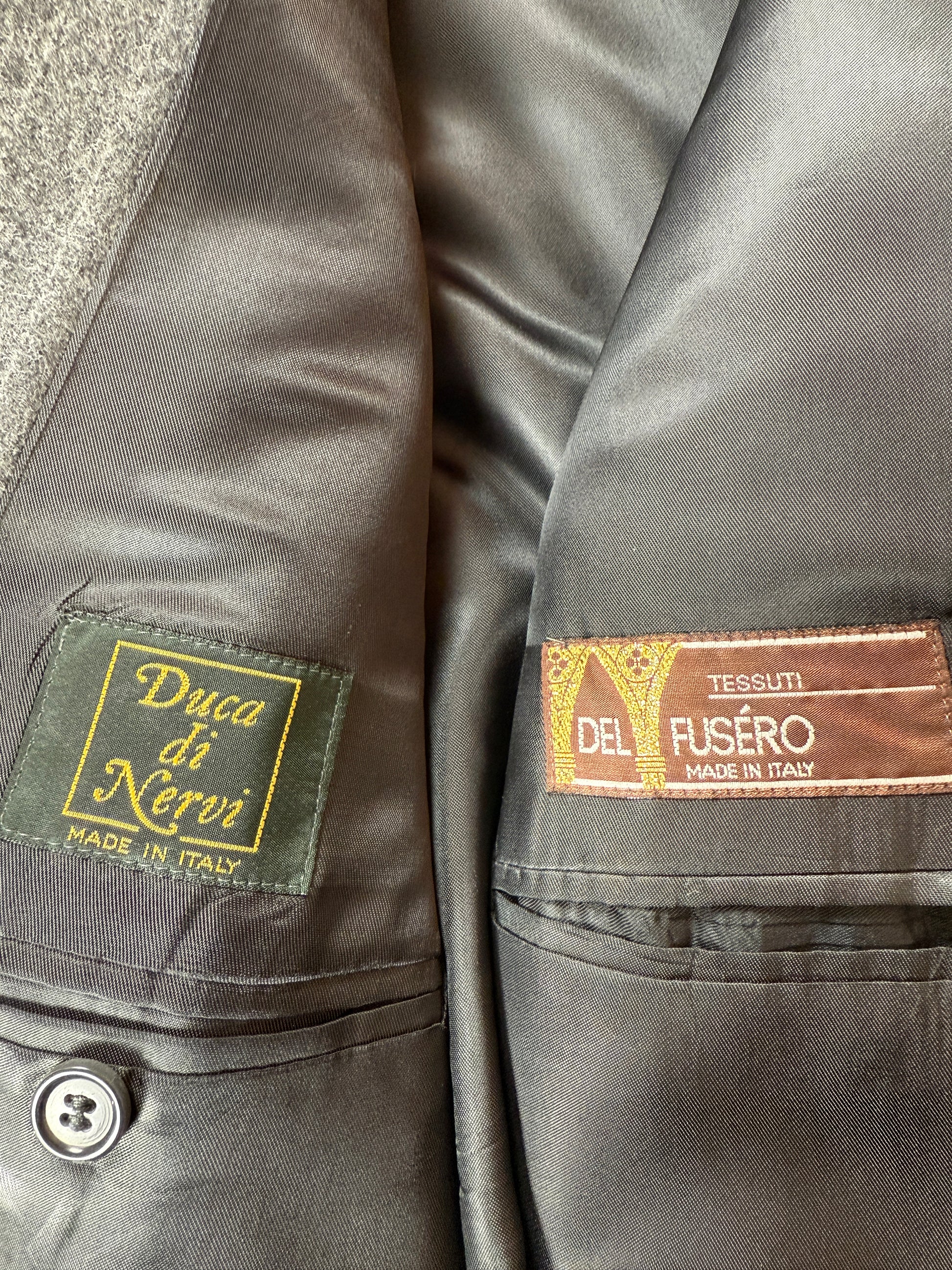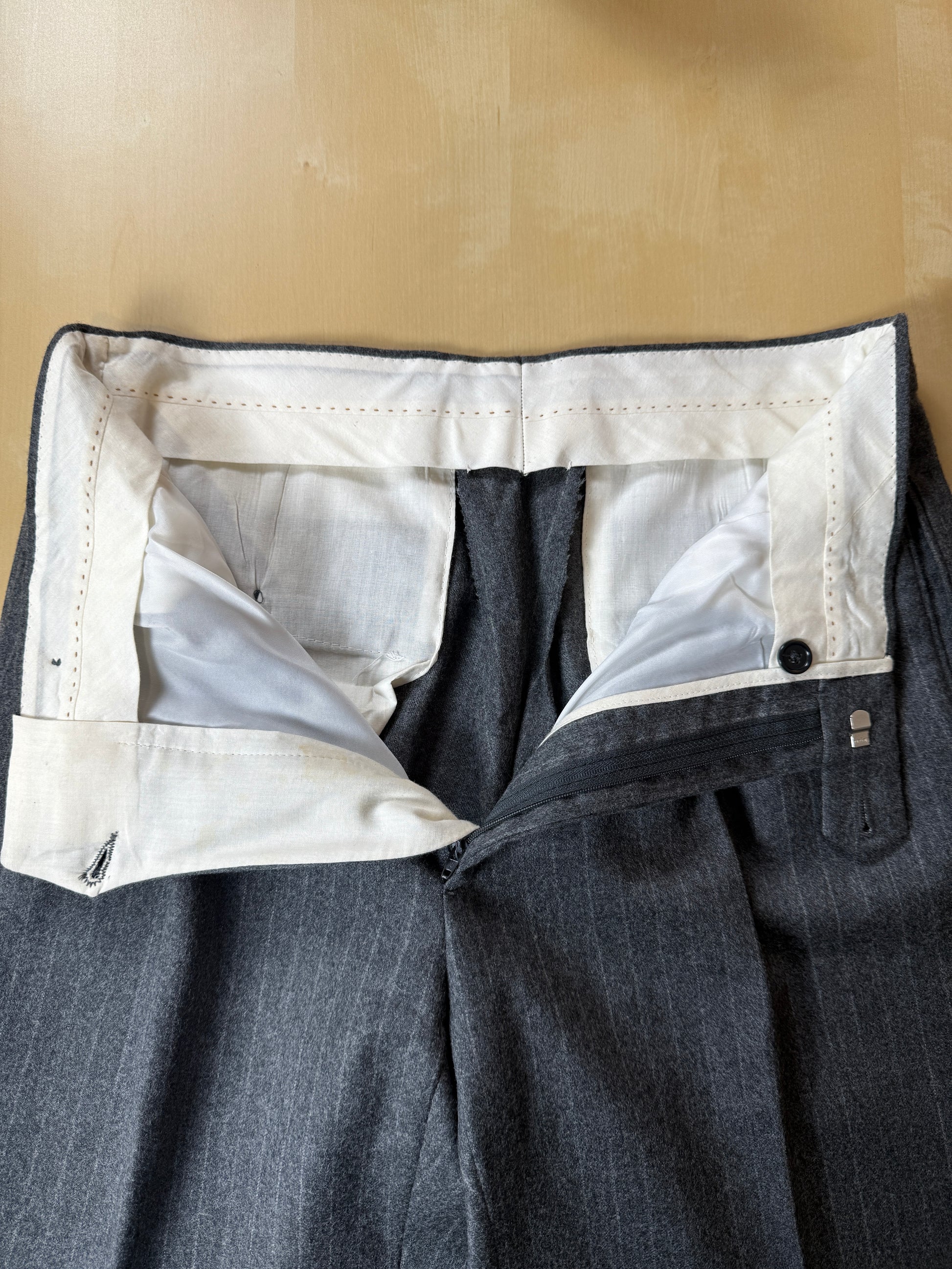 Completo doppiopetto flanella grigio gessato anni ‘80/‘90 - tg. 48/50, drop alto