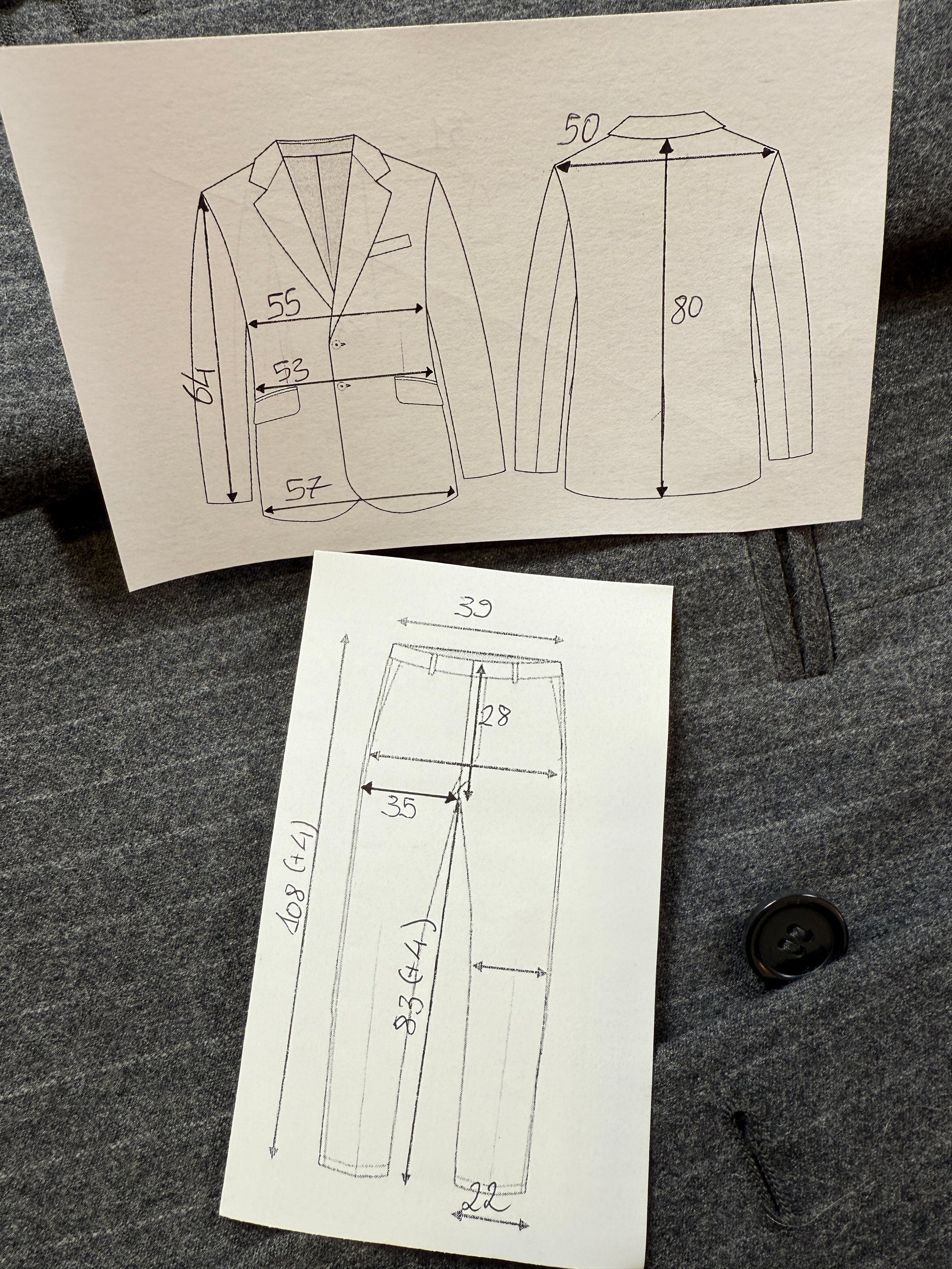 ⚠️ Per un confronto il più utile e accurato possibile, è necessario confrontare le misure solo fra abiti dal taglio simile: ad esempio, un abito dal taglio classico (giacca morbida e pantalone a vita alta) con un altro abito analogo, non con un abito slim fit o con un abito tipo anni '70 dal taglio snello e avvitato (e viceversa).