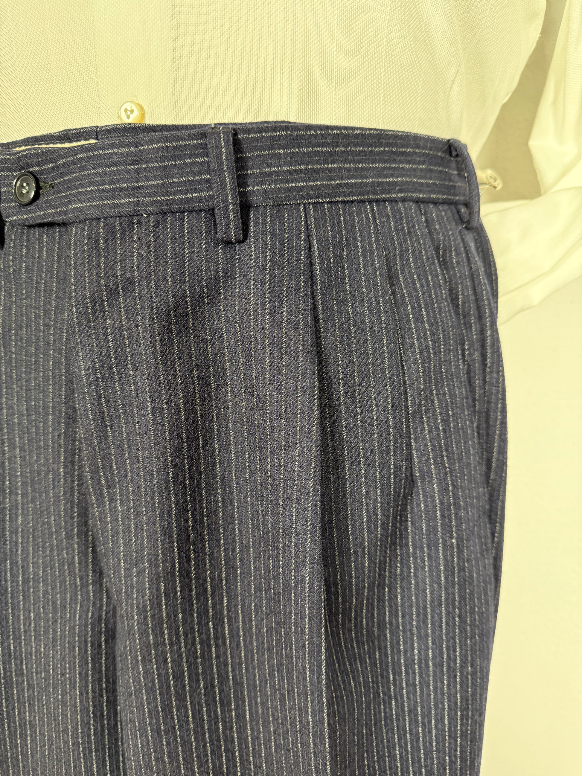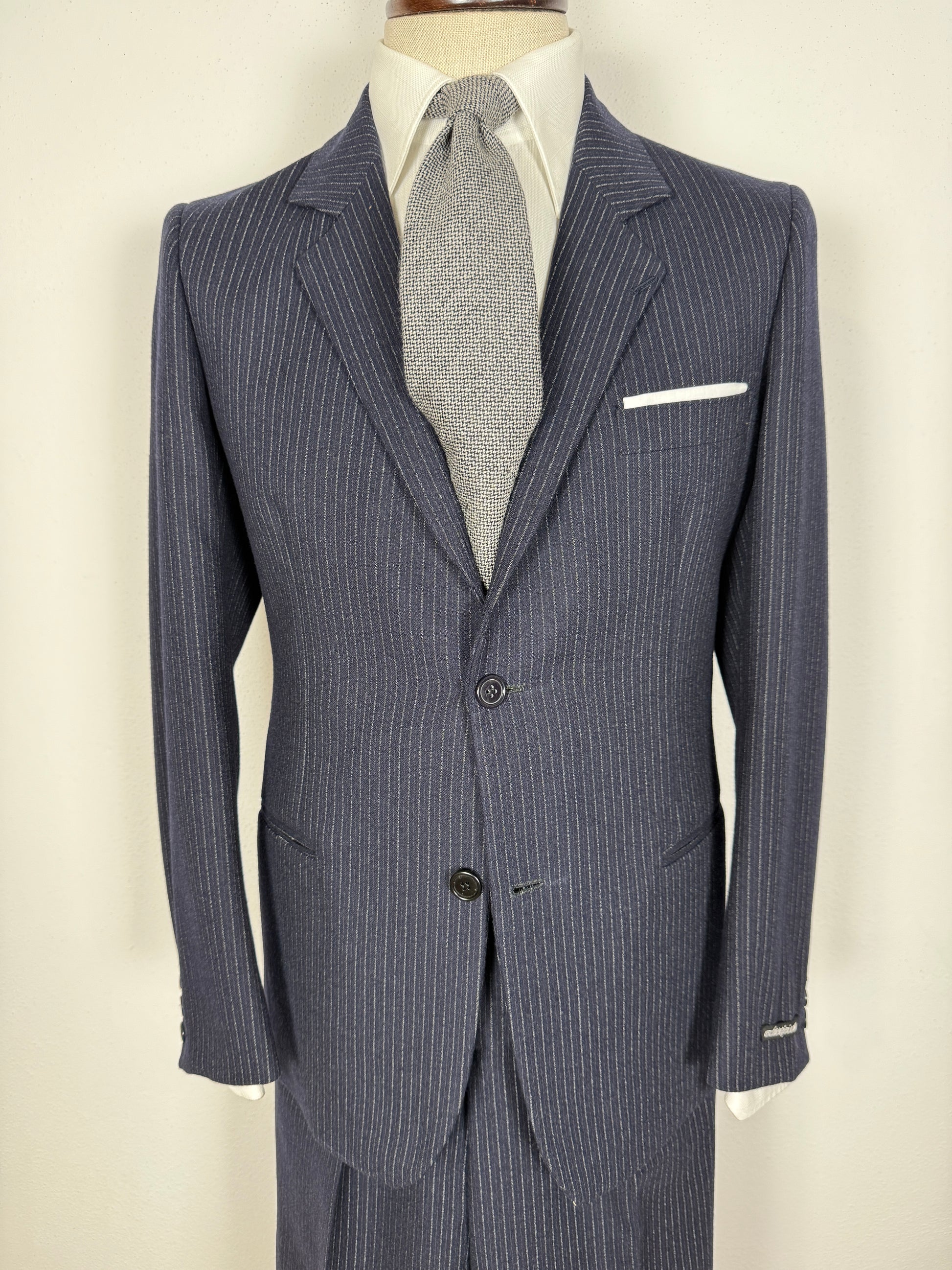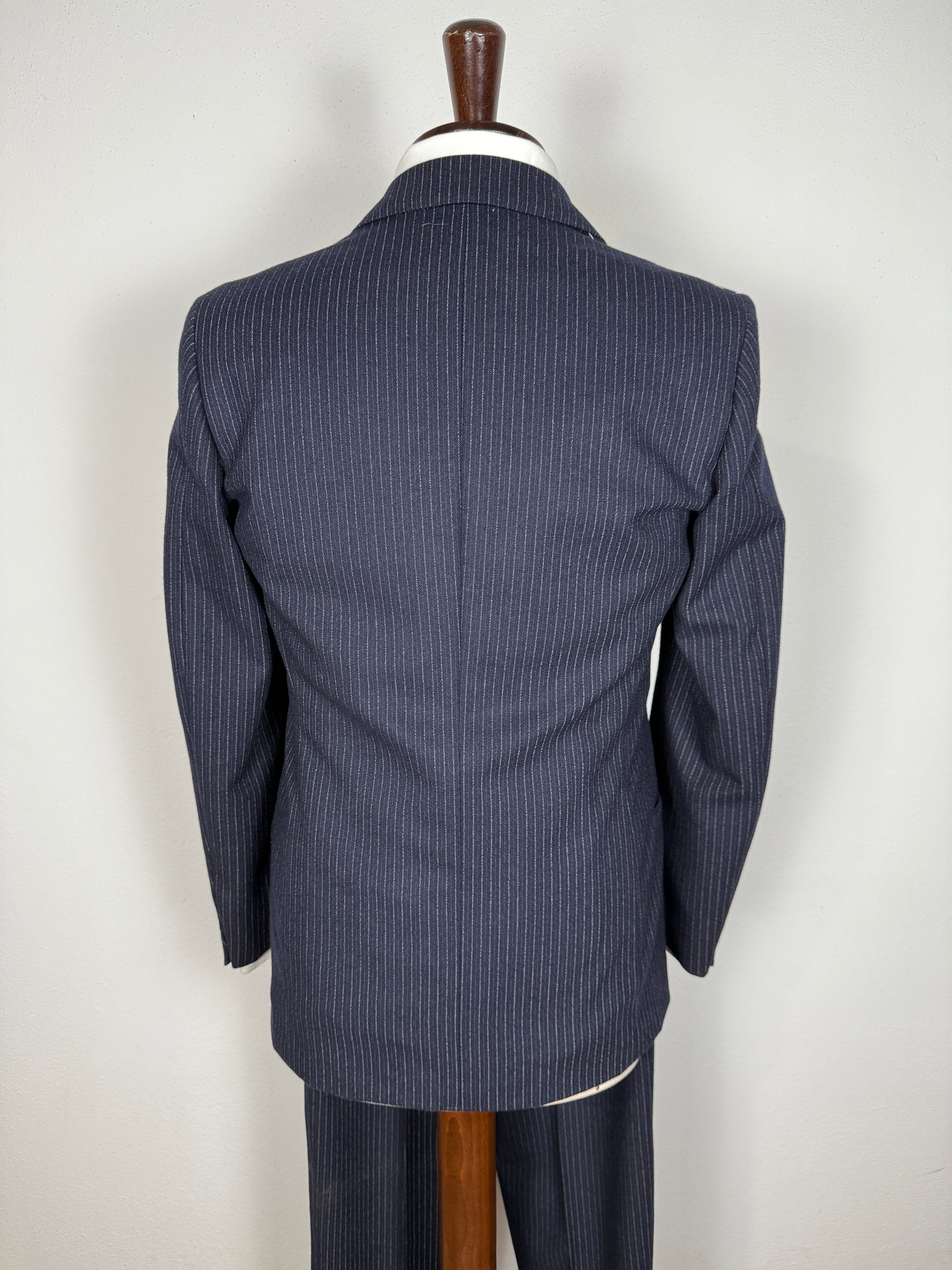 Completo Marzotto anni ‘70/‘80 in flanella blu gessato (NOS) - tg. 44