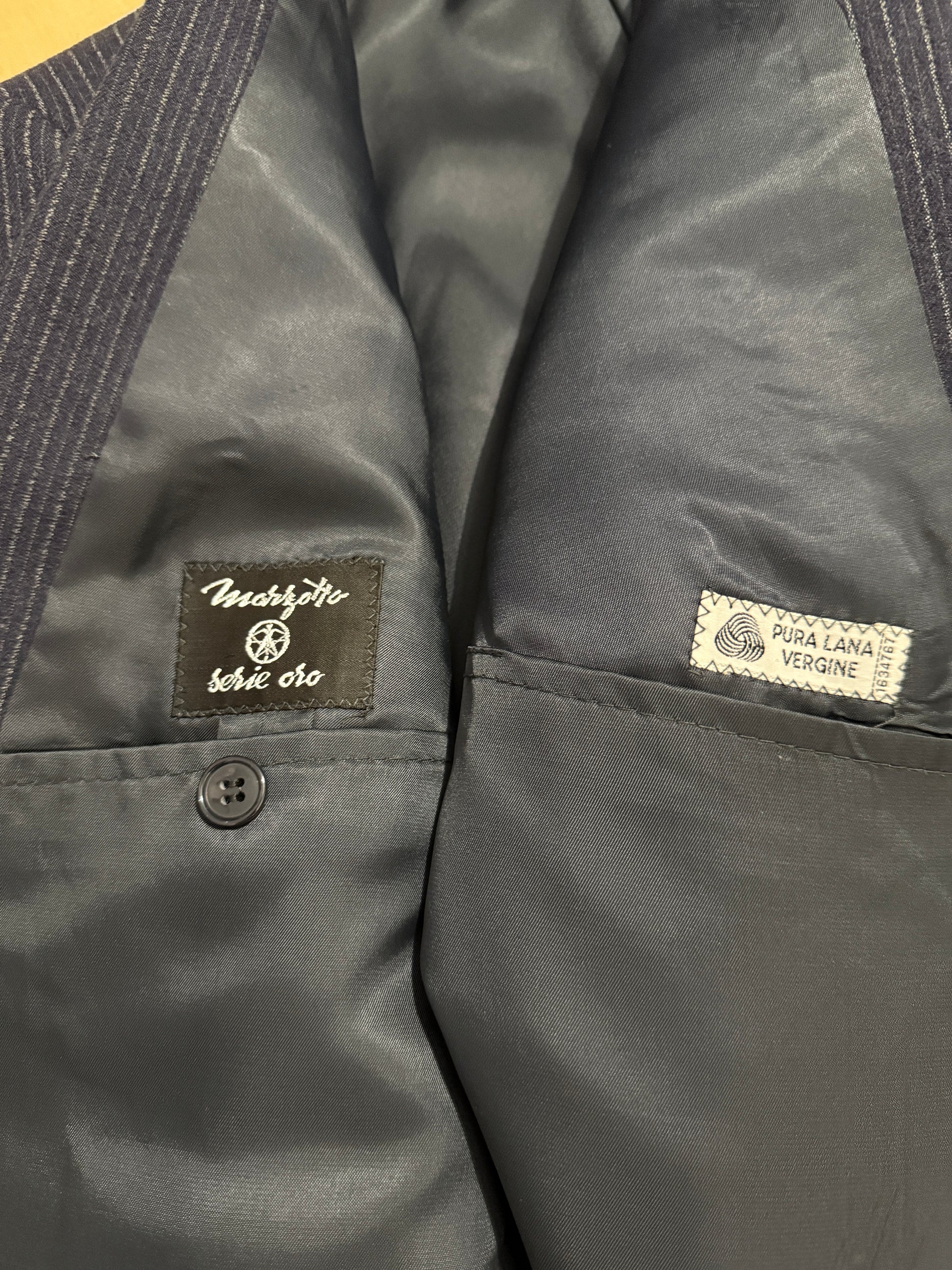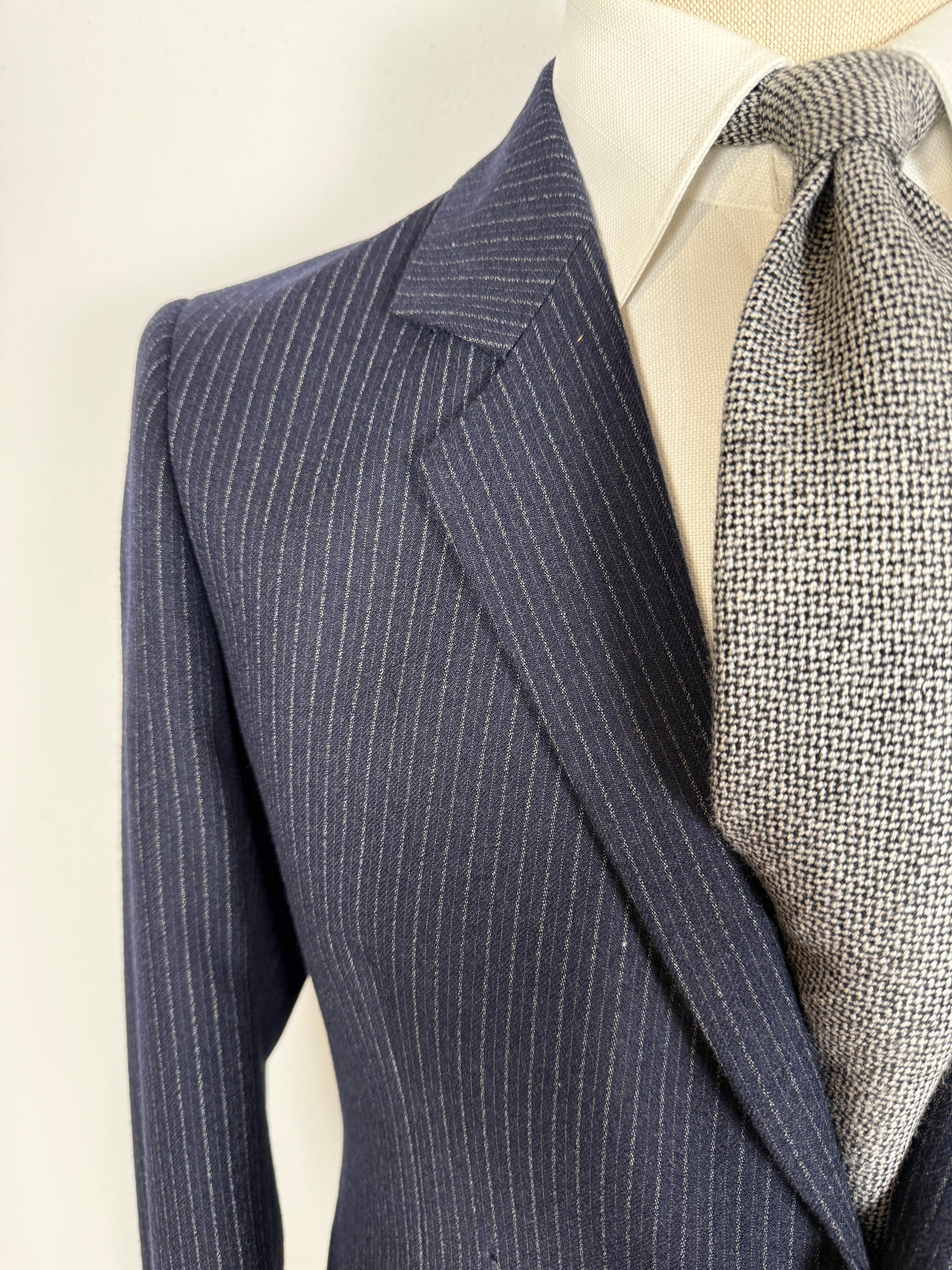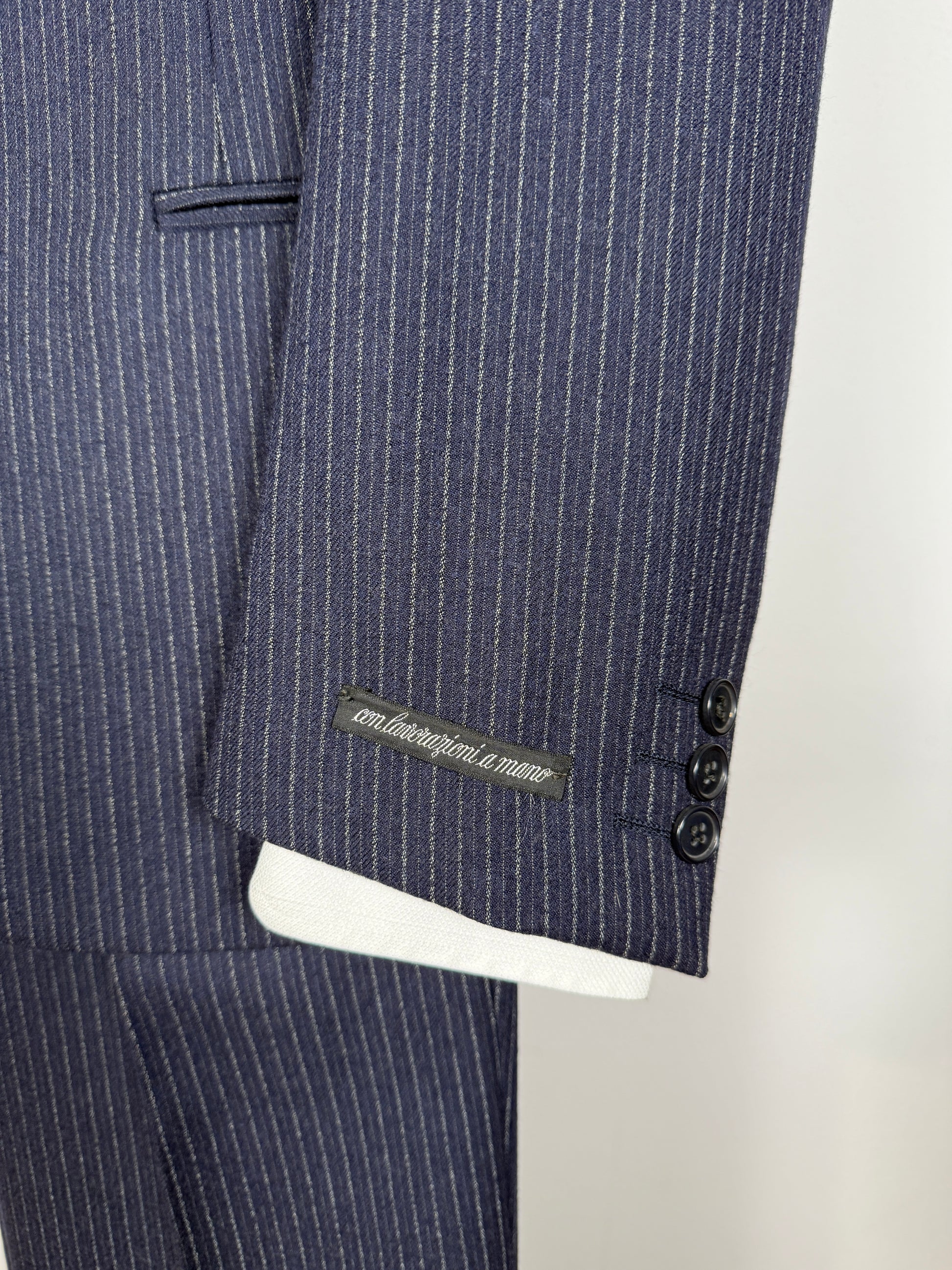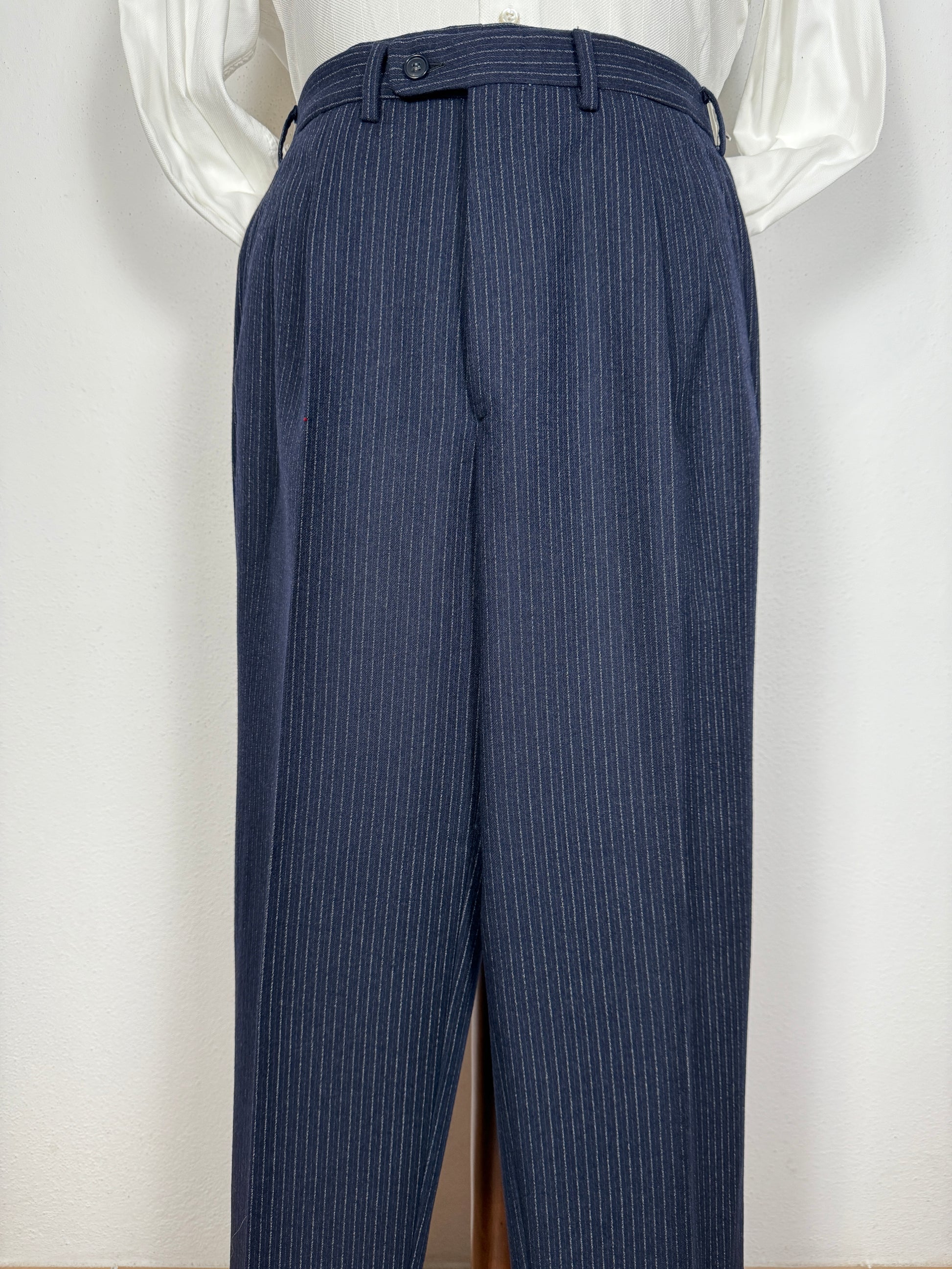 Completo Marzotto anni ‘70/‘80 in flanella blu gessato (NOS) - tg. 44