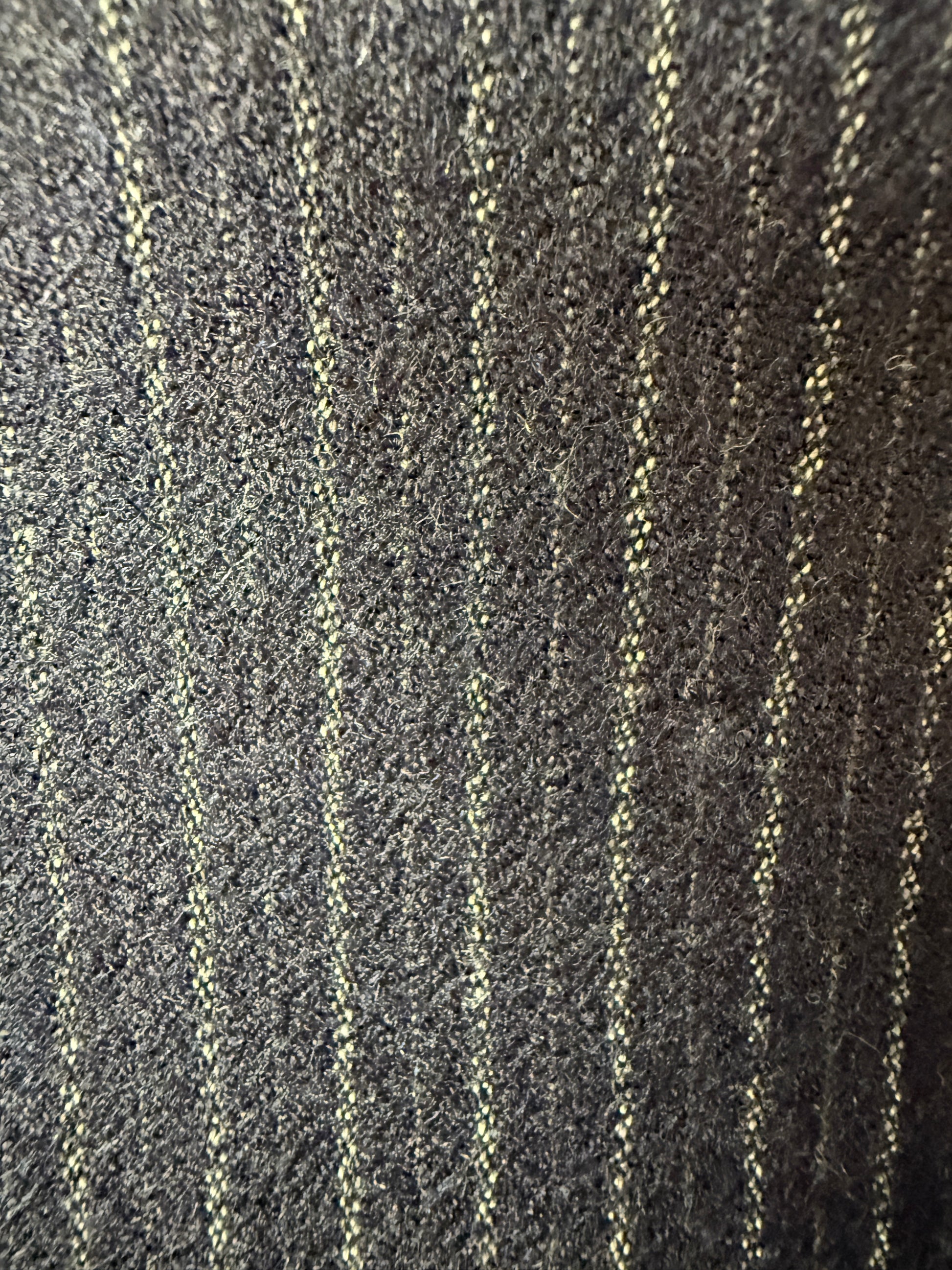Da vecchio fondo di magazzino: abito perfettamente nuovo, con orlo dei pantaloni ancora da chiudere e fili bianchi di lavorazione e imbastitura ancora applicati.