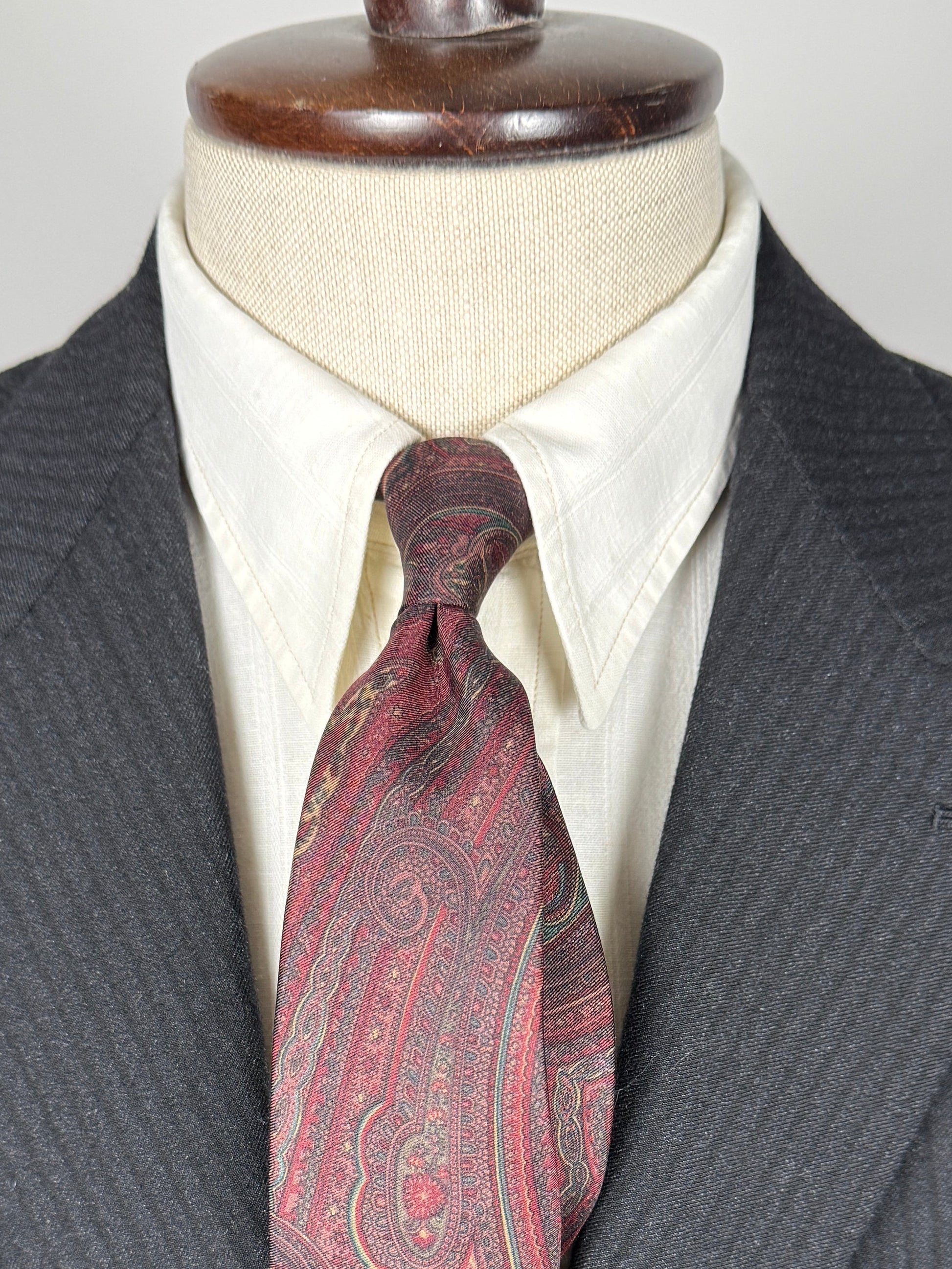 Cravatta meravigliosa, stupenda nella fantasia e al tatto morbida, come solo le cravatte vintage di una certa qualità sanno essere. E di certo sa cosa compra chi si affida alla selezione esperta, alla cortesia, alla visione storica e artigianale di chi cura Treble and Bass.. una selezione intelligente, oculata, a chilometro zero di abbigliamento e accessori vintage di elevata qualità, che vestono il corpo e nutrono l’anima del gusto della qualità e del valore artigianale di ciò che è fatto come si deve e come pochi ancora sanno fare!