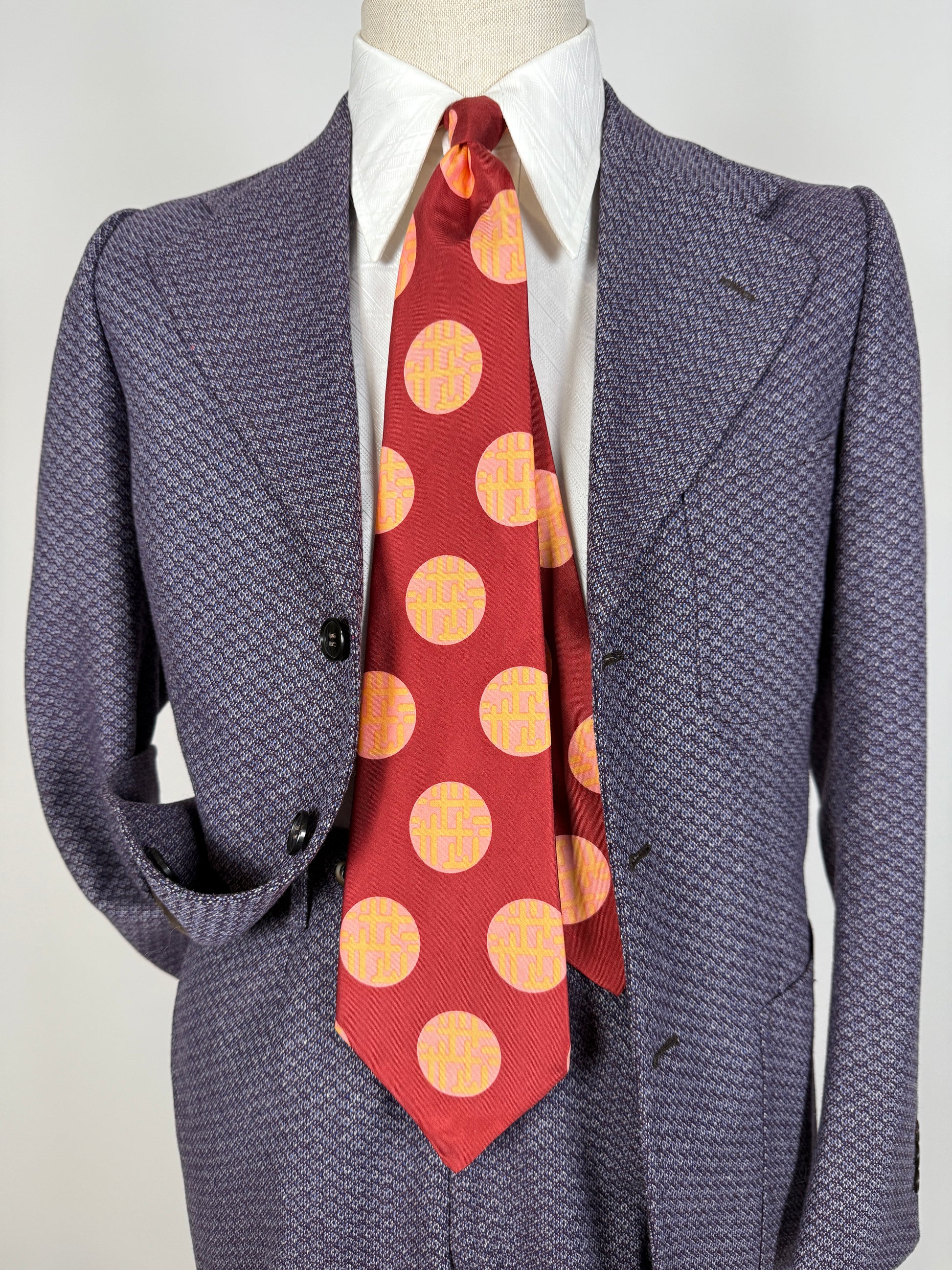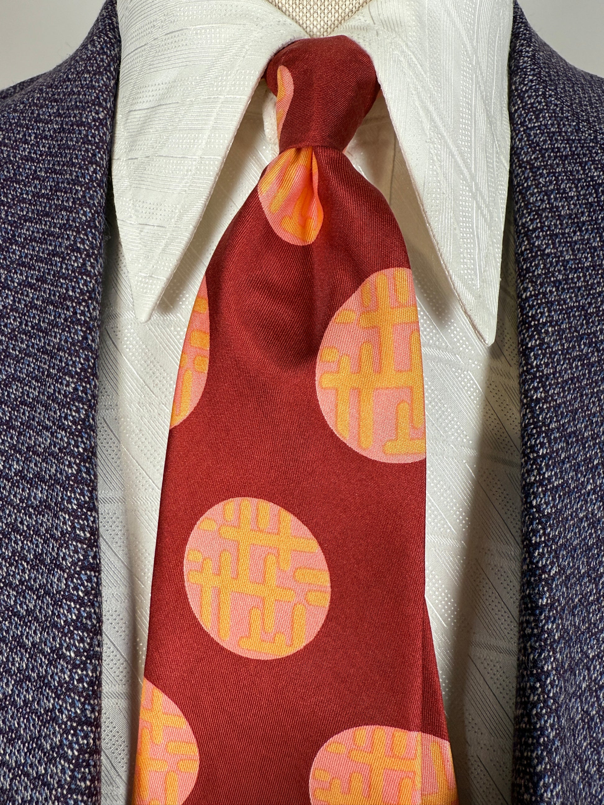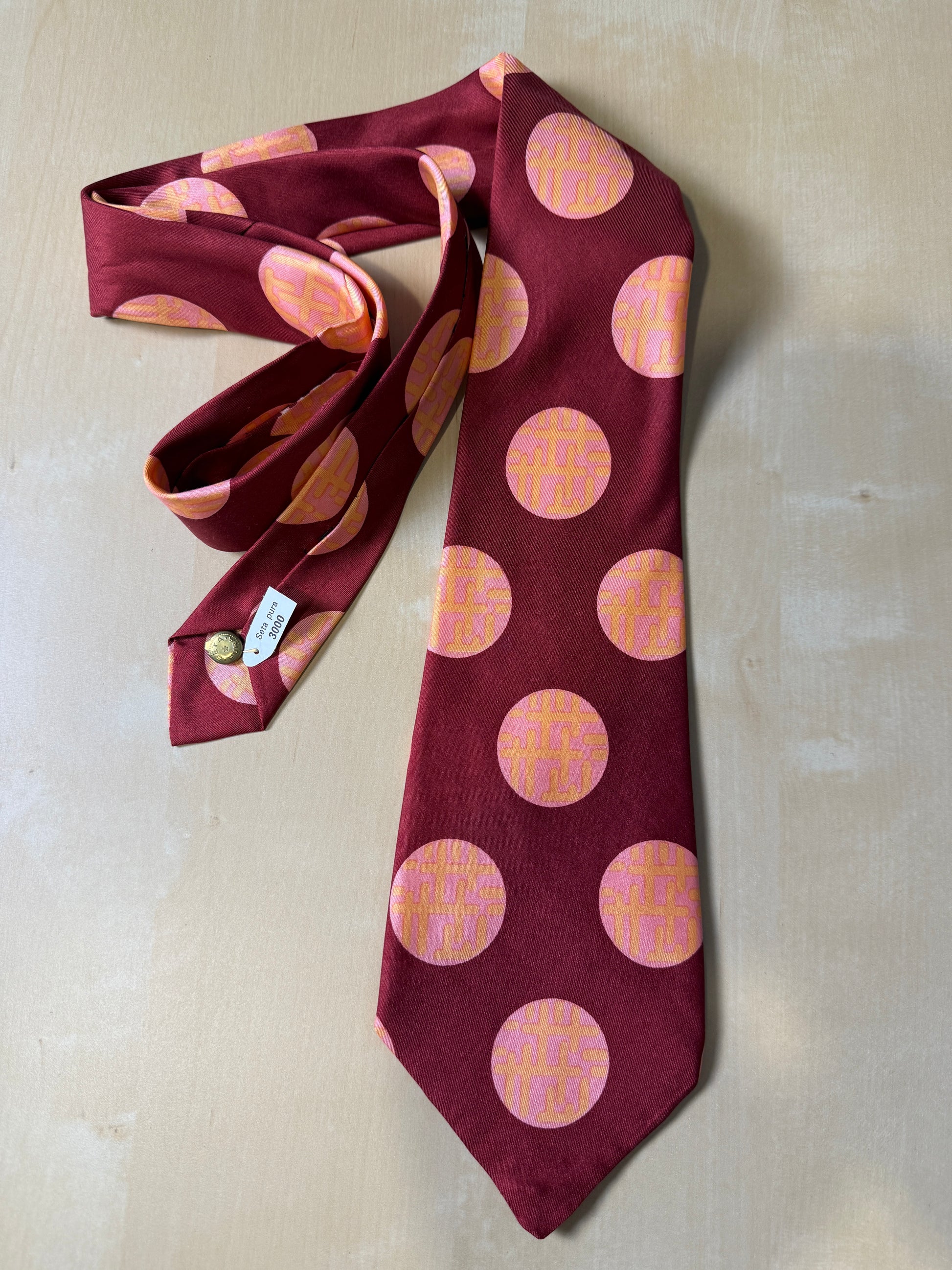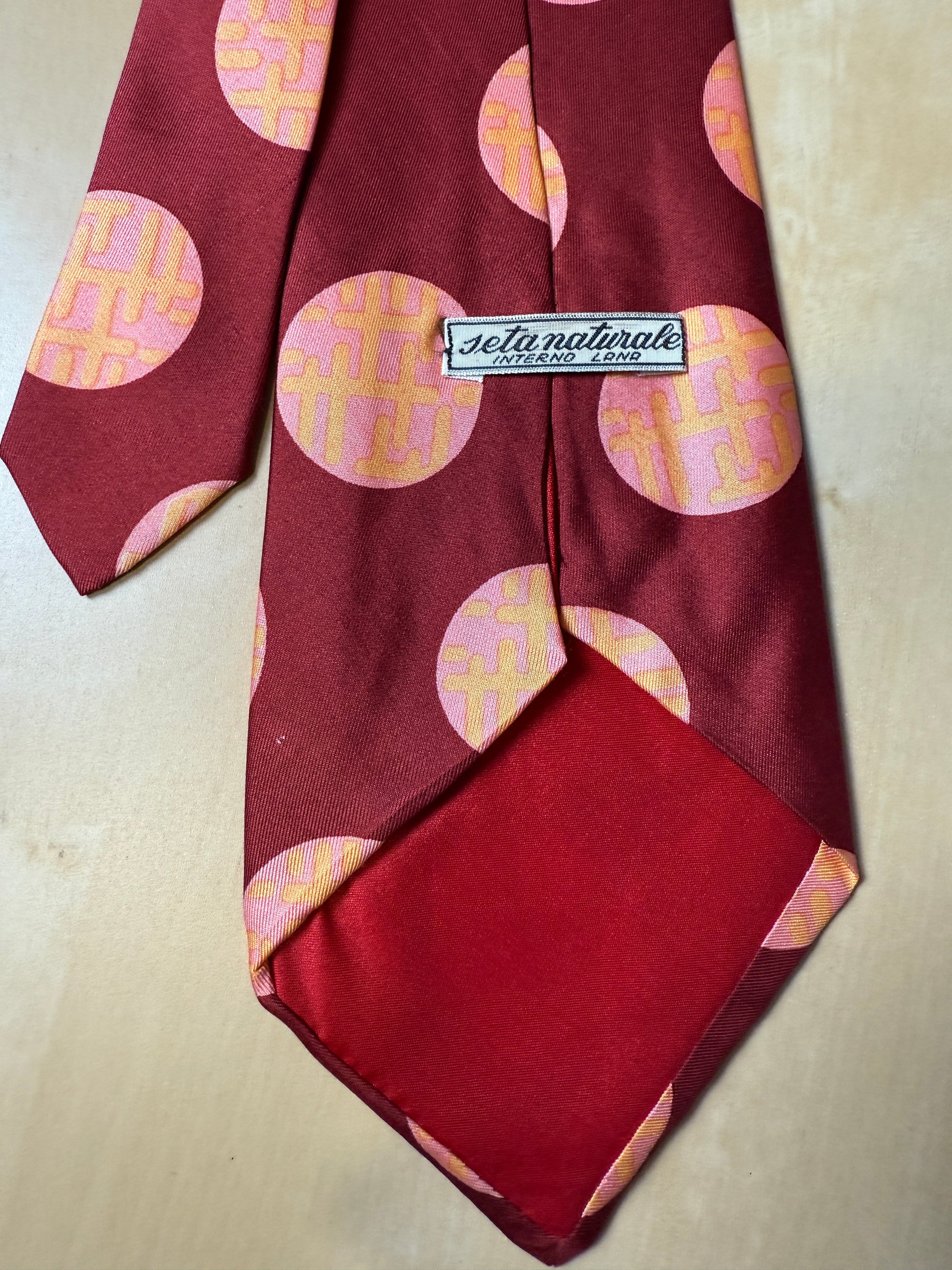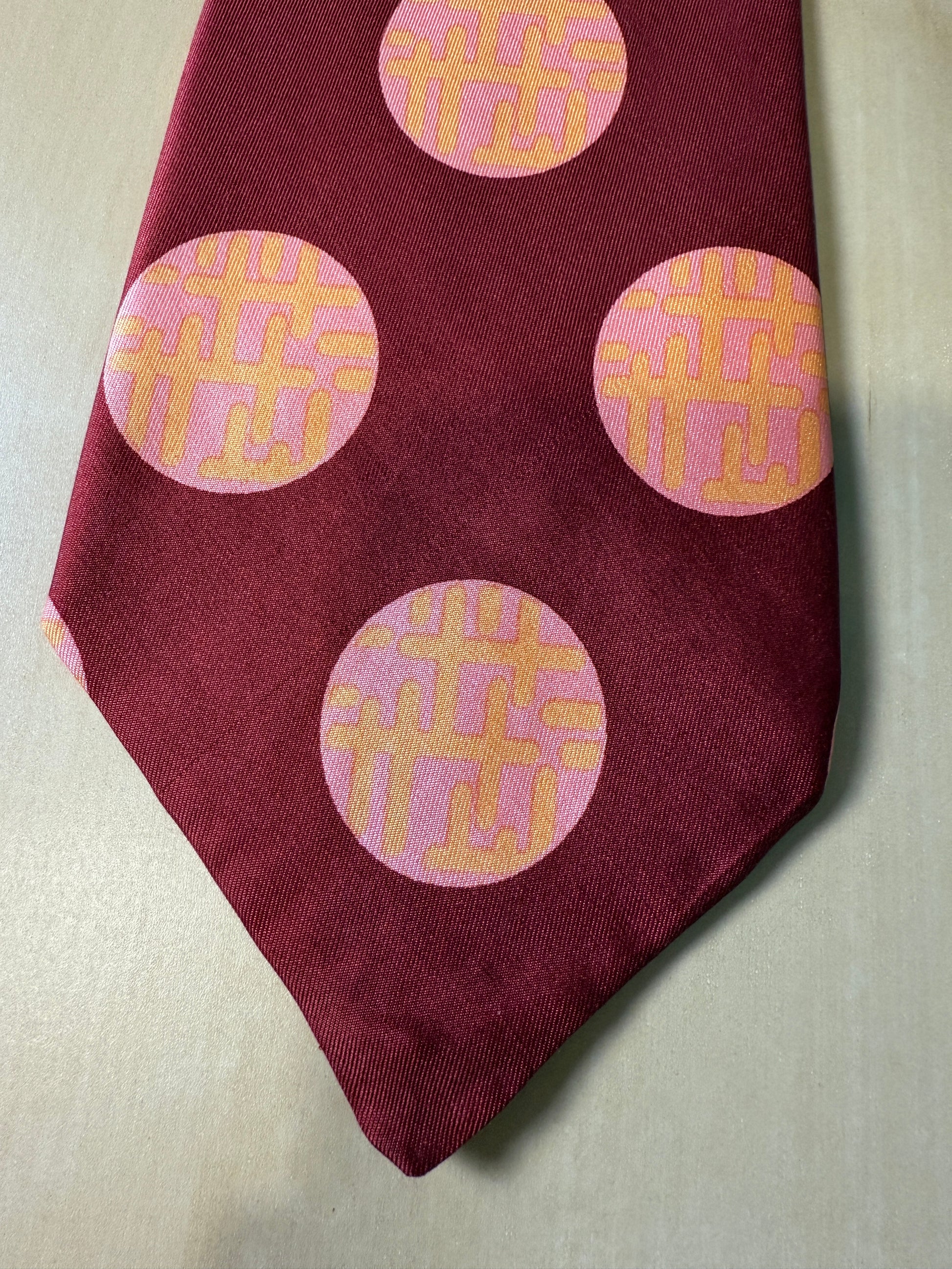 Cravatta anni ‘70 bordeaux cerchi rosa