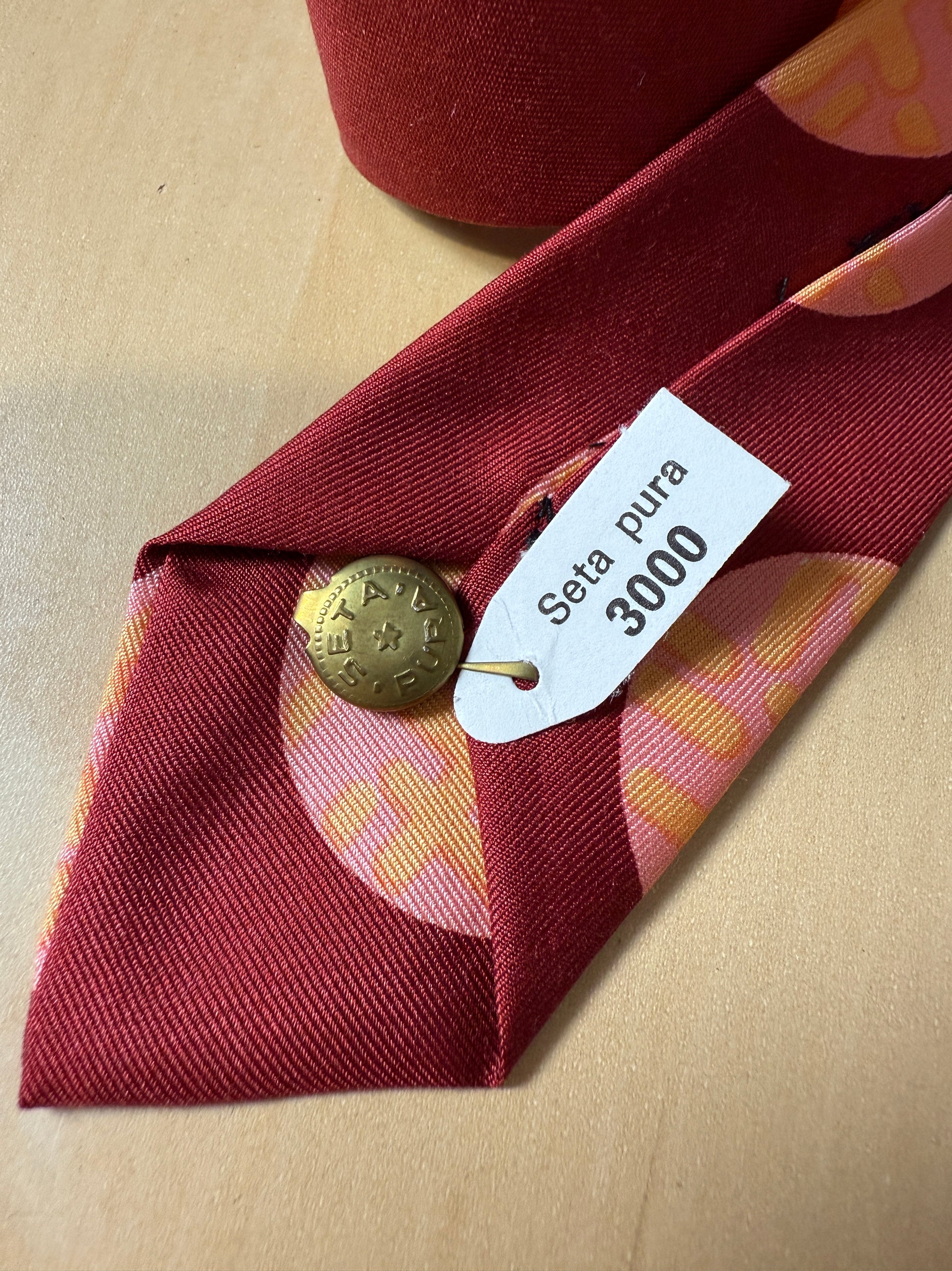 Cravatta tipica anni ‘70 in pura seta con struttura rigida.