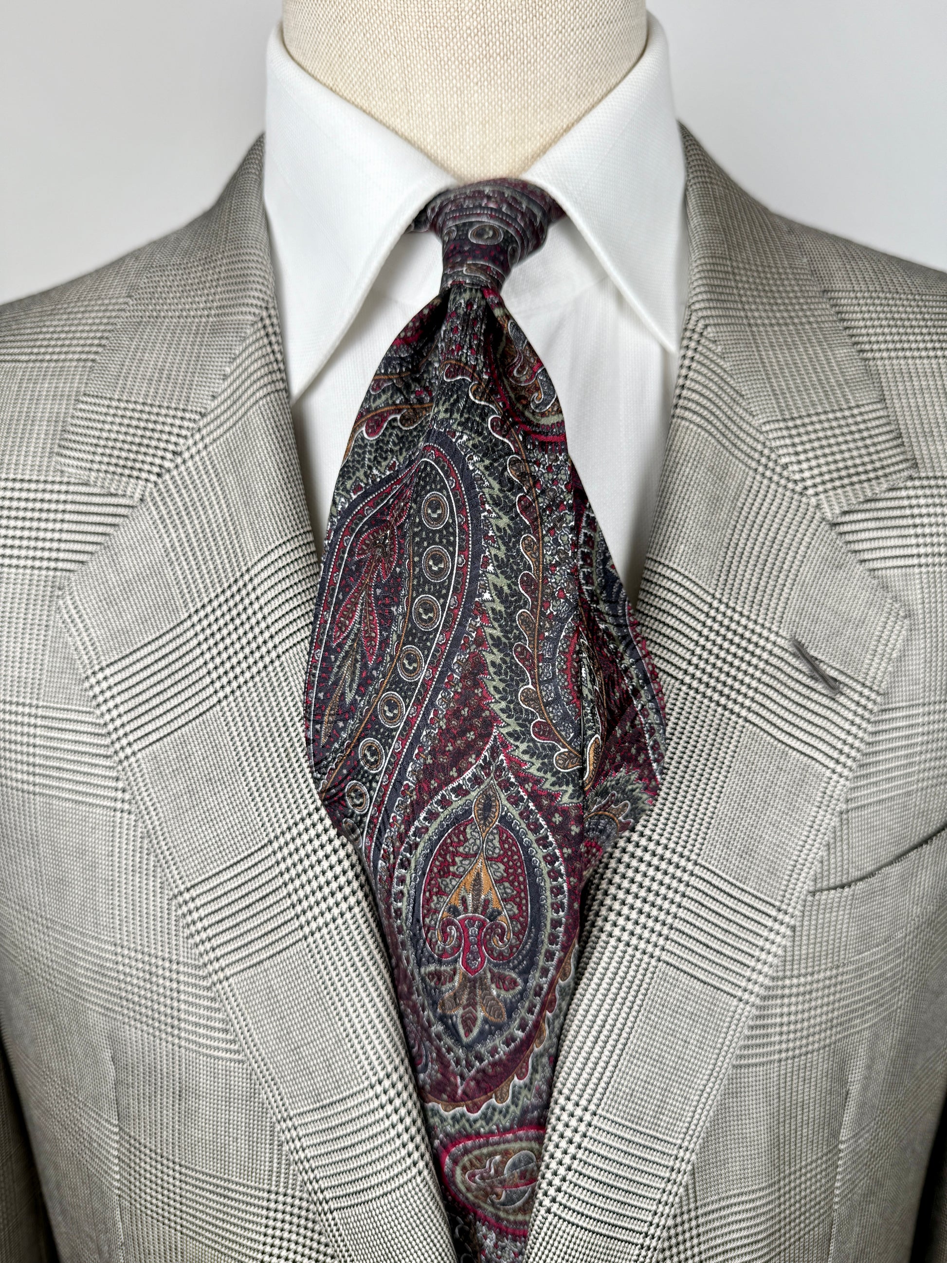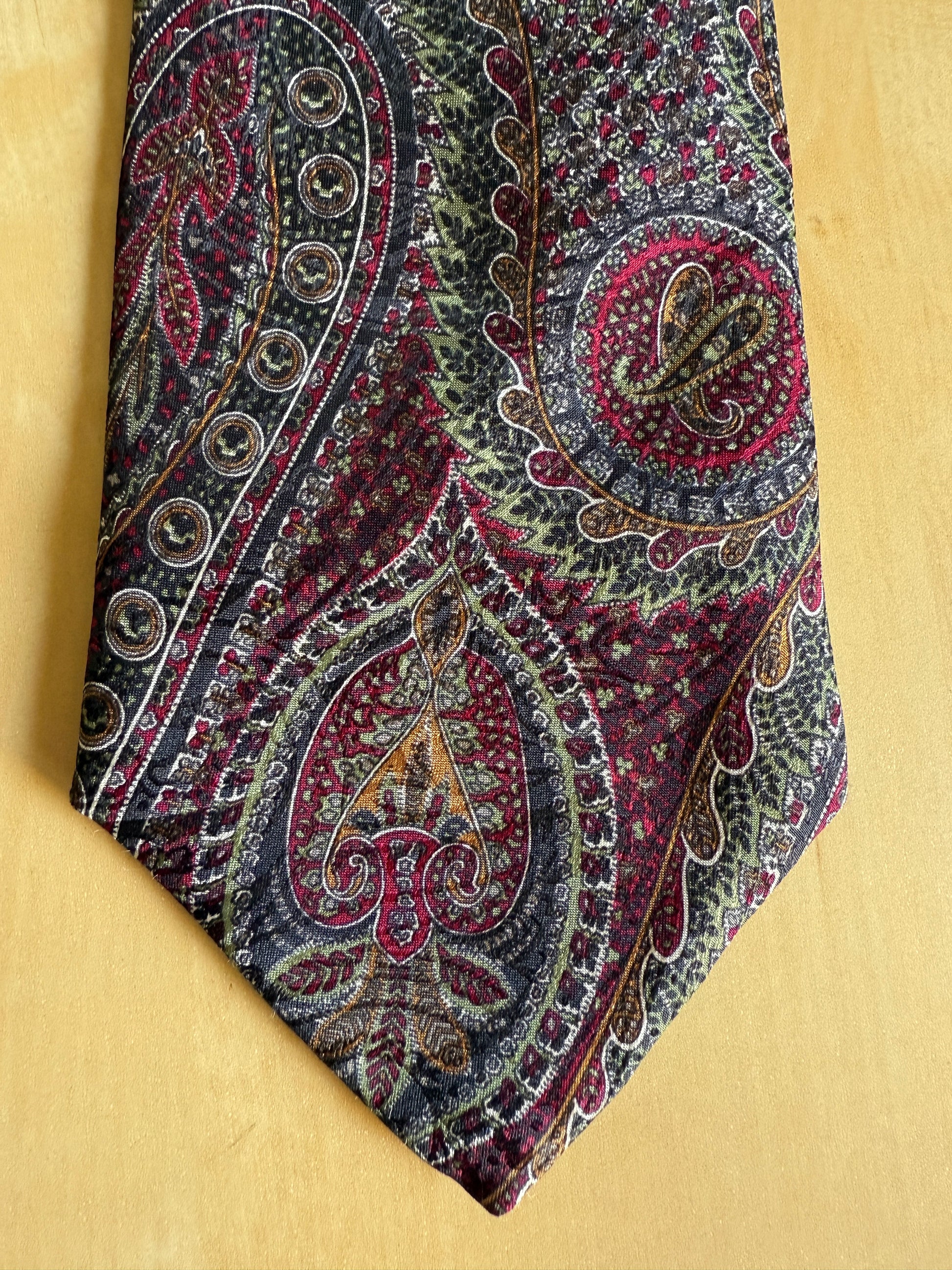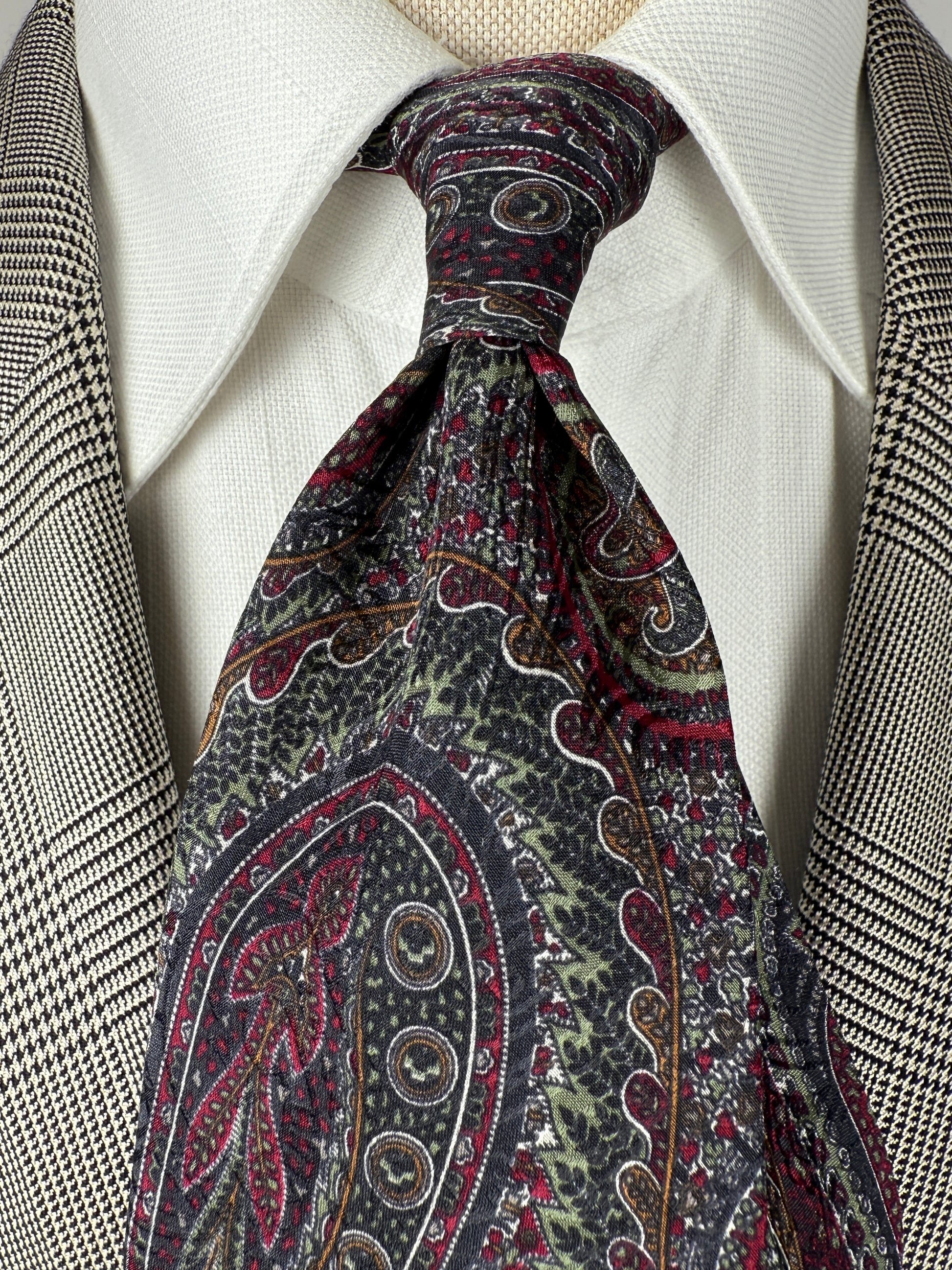 Stupenda cravatta anni ‘80 in pura seta con stampa paisley e lavorazione jacquard.
