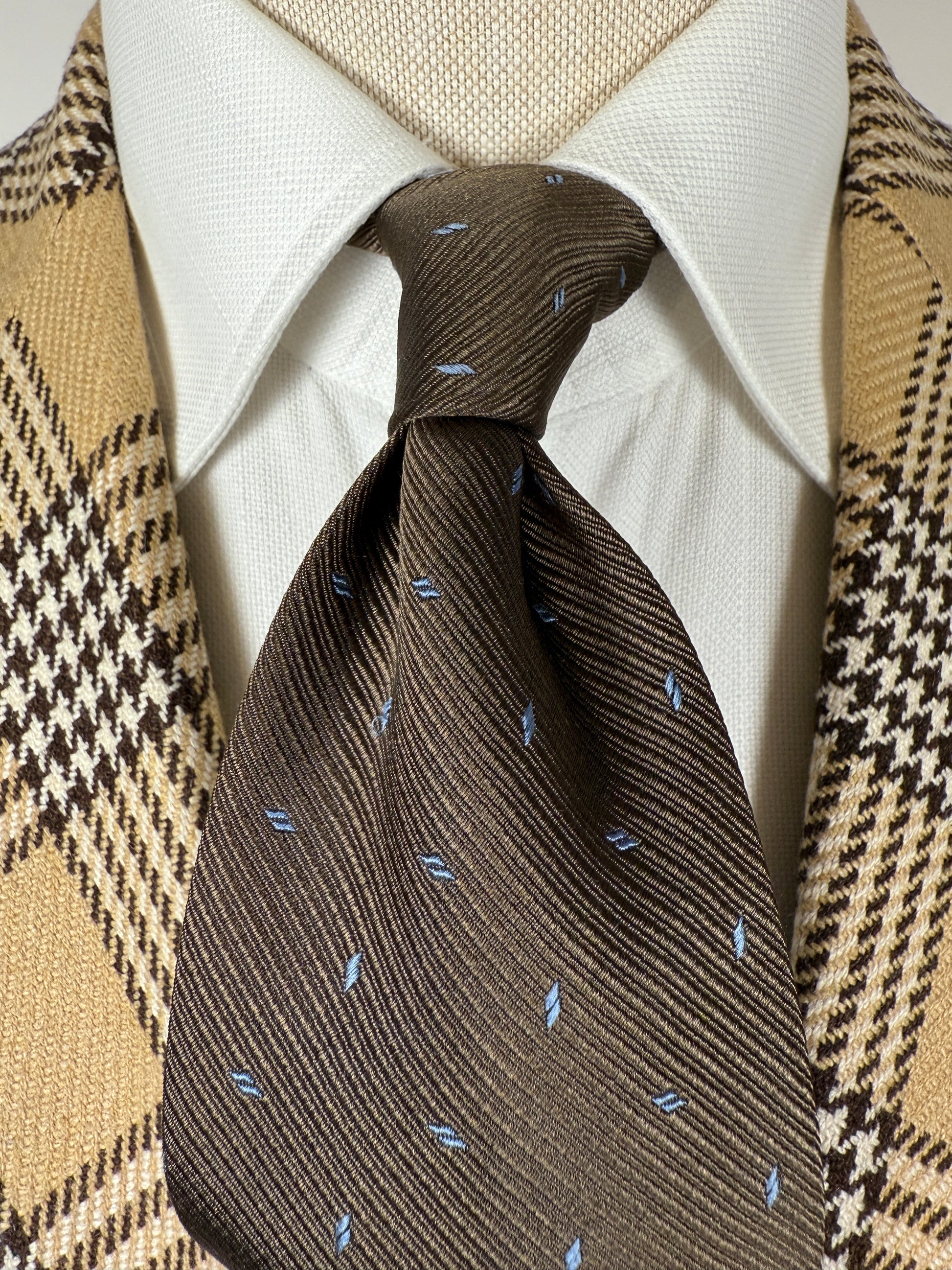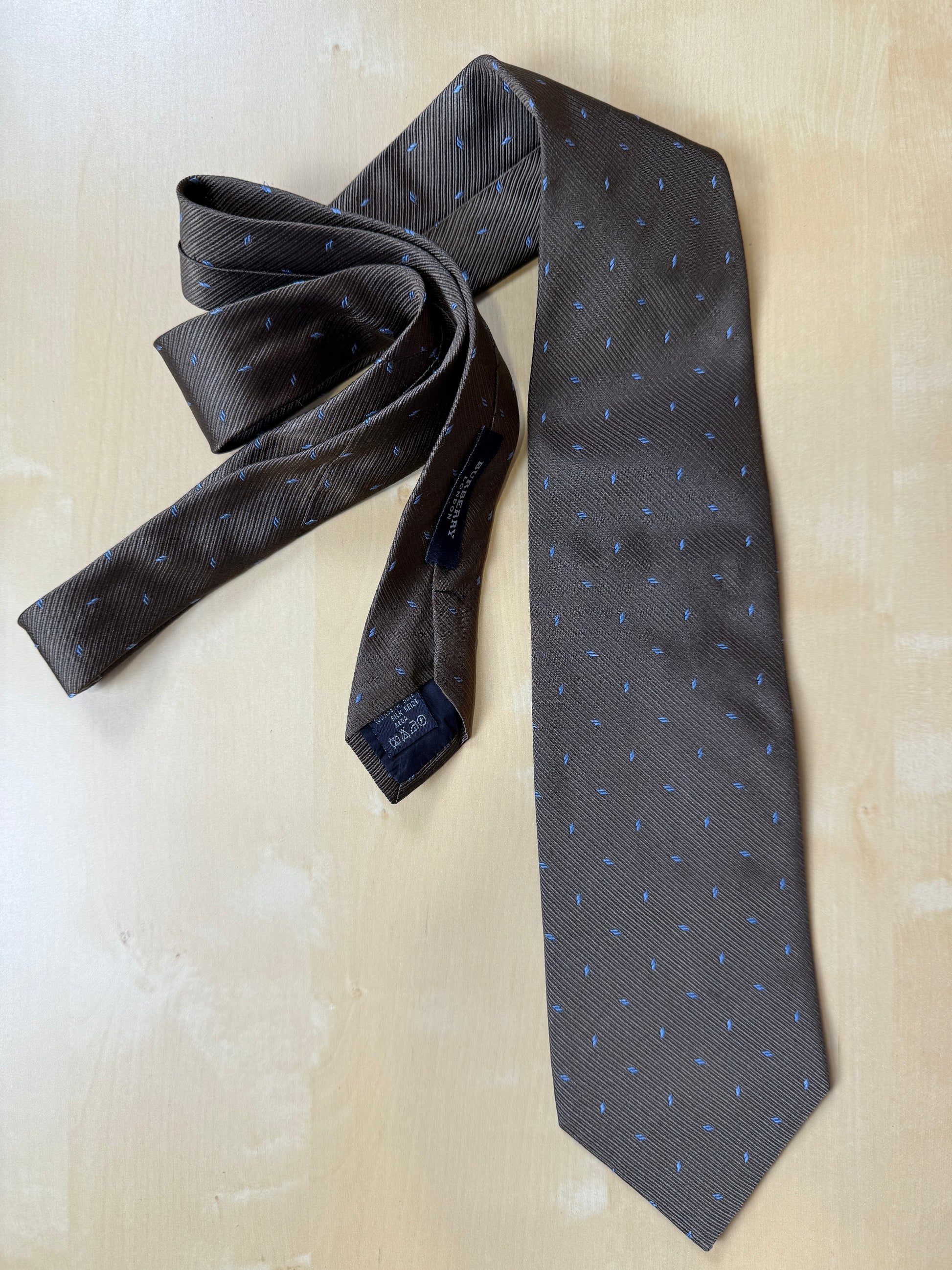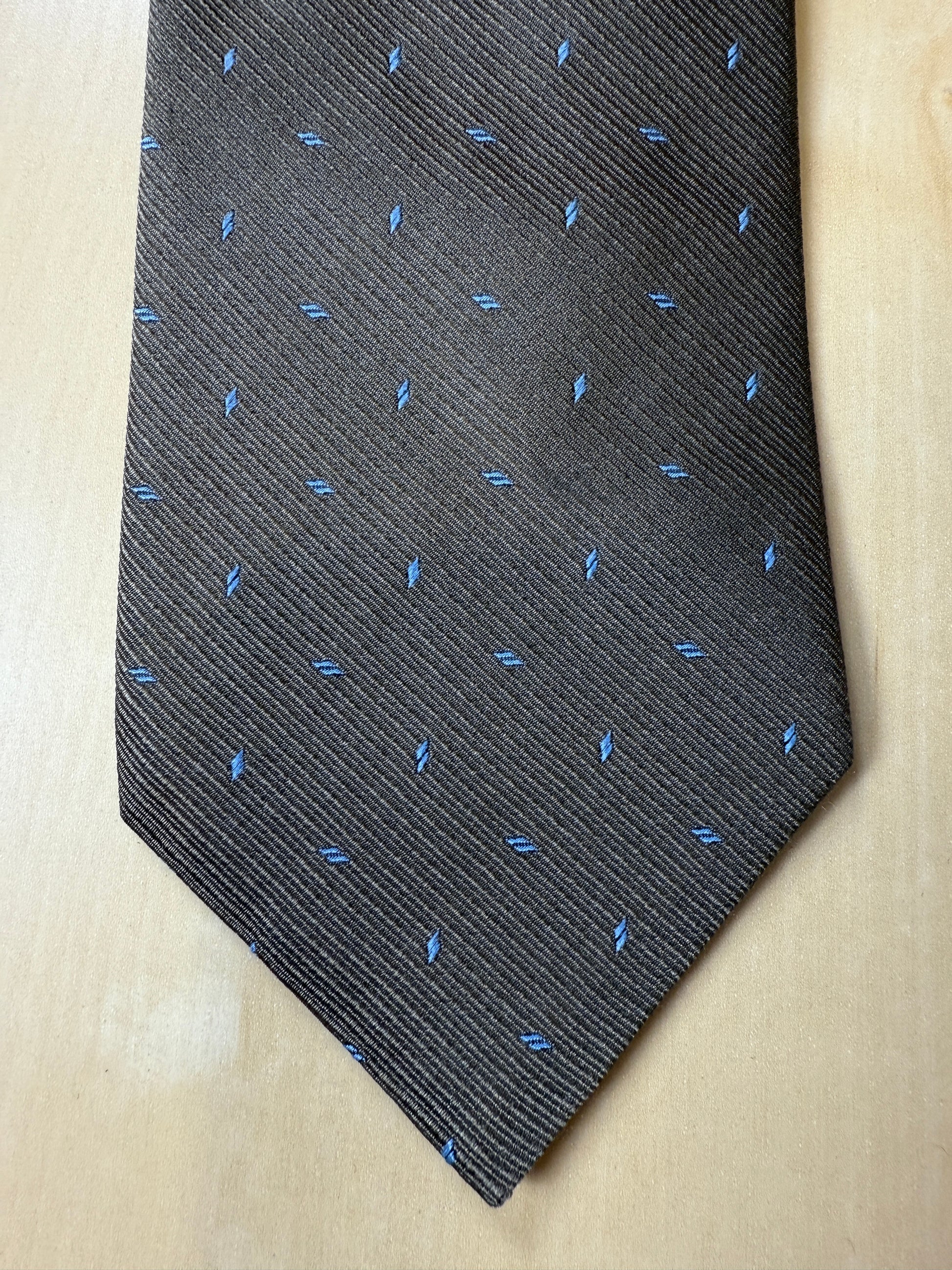 Cravatta Burberry in pura seta a costine, colore marrone con micro fantasia in azzurro.
