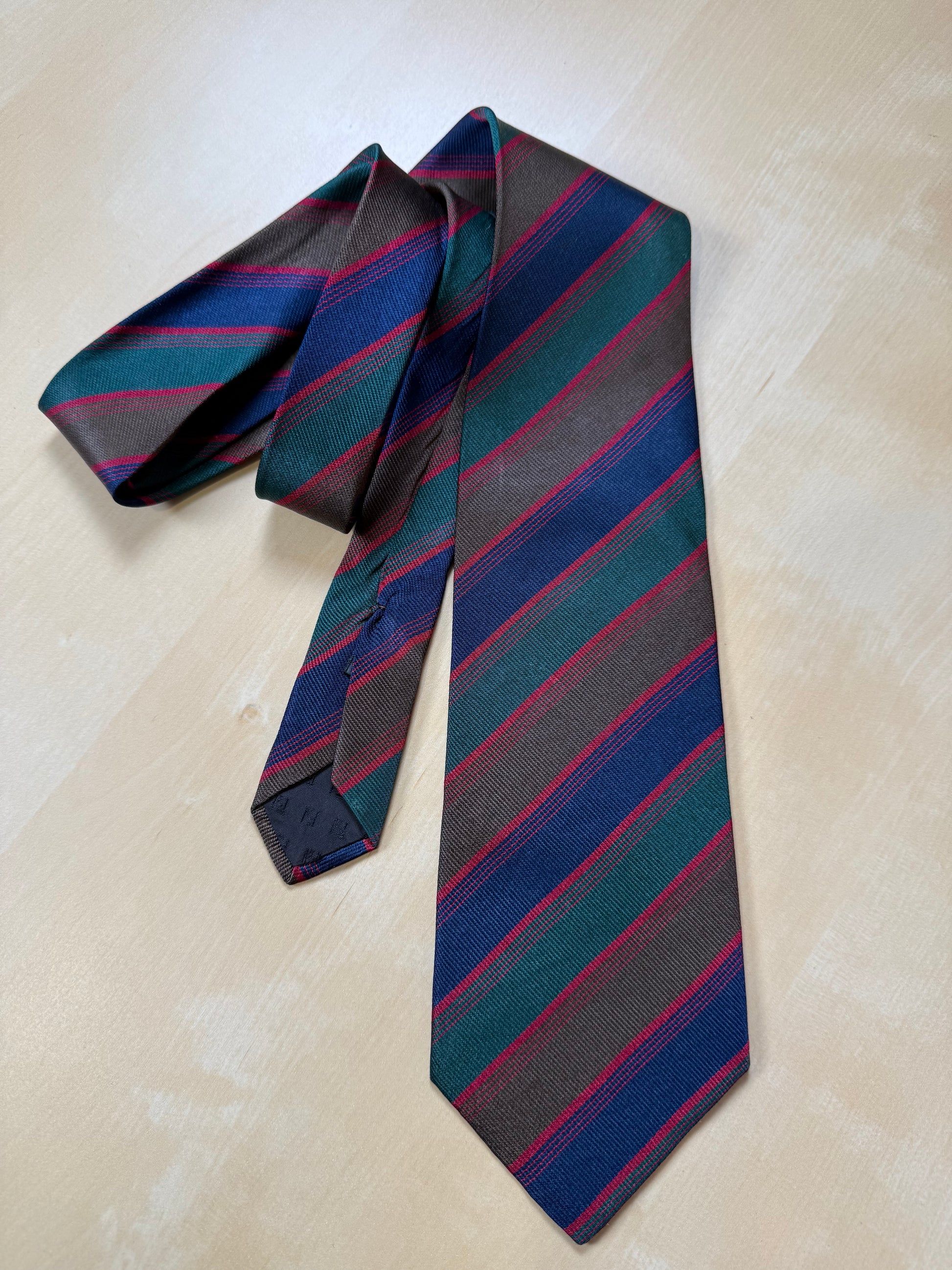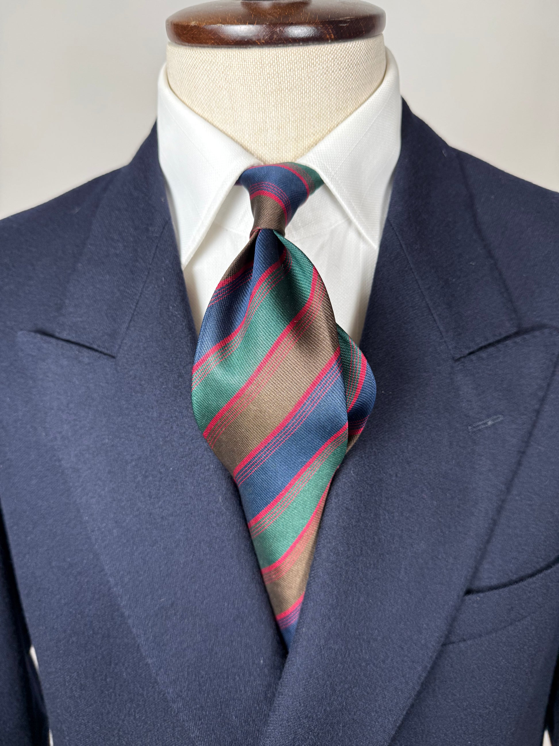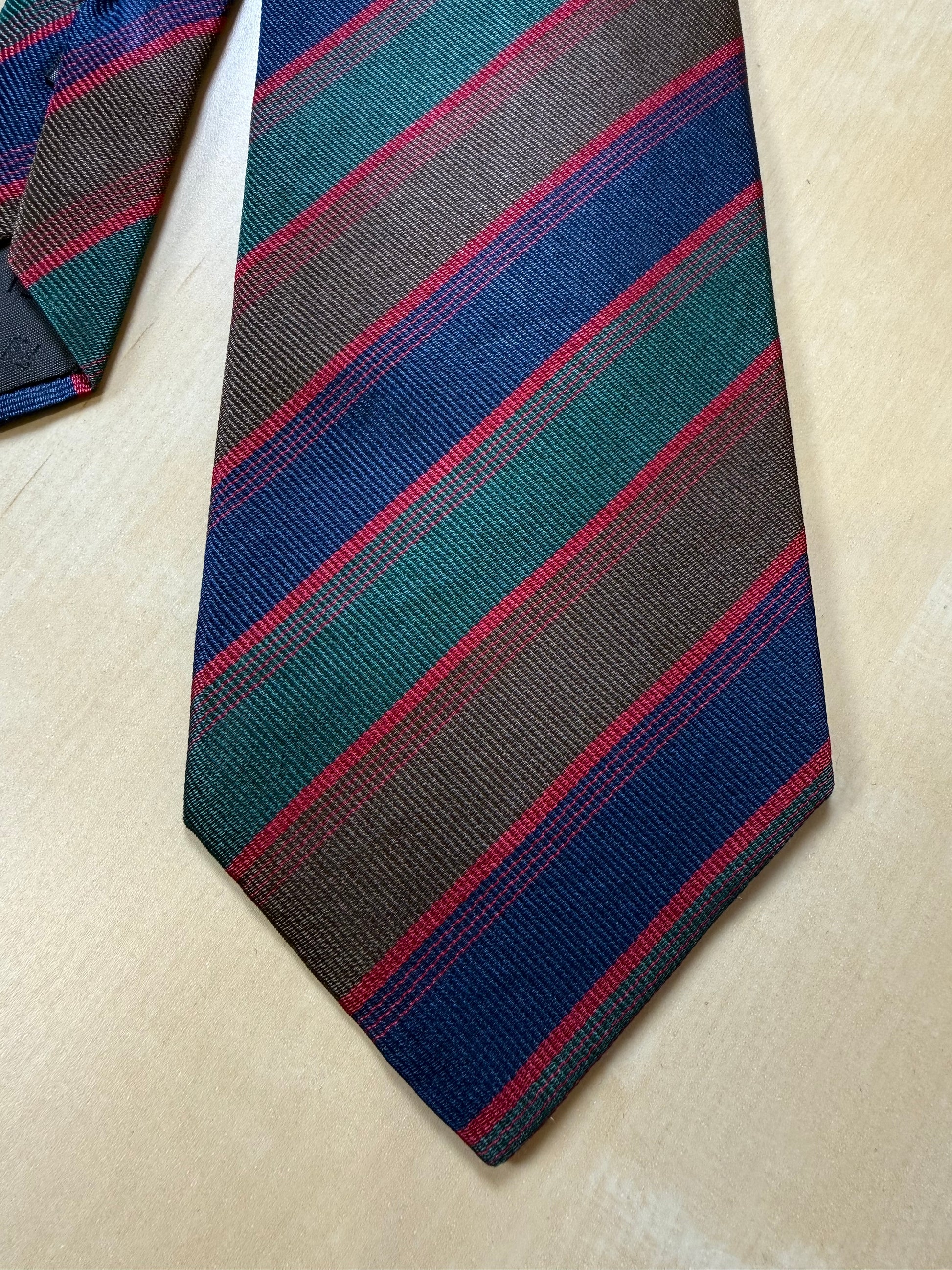 Righe regimental nei colori blu navy, verde, marrone e rosso.