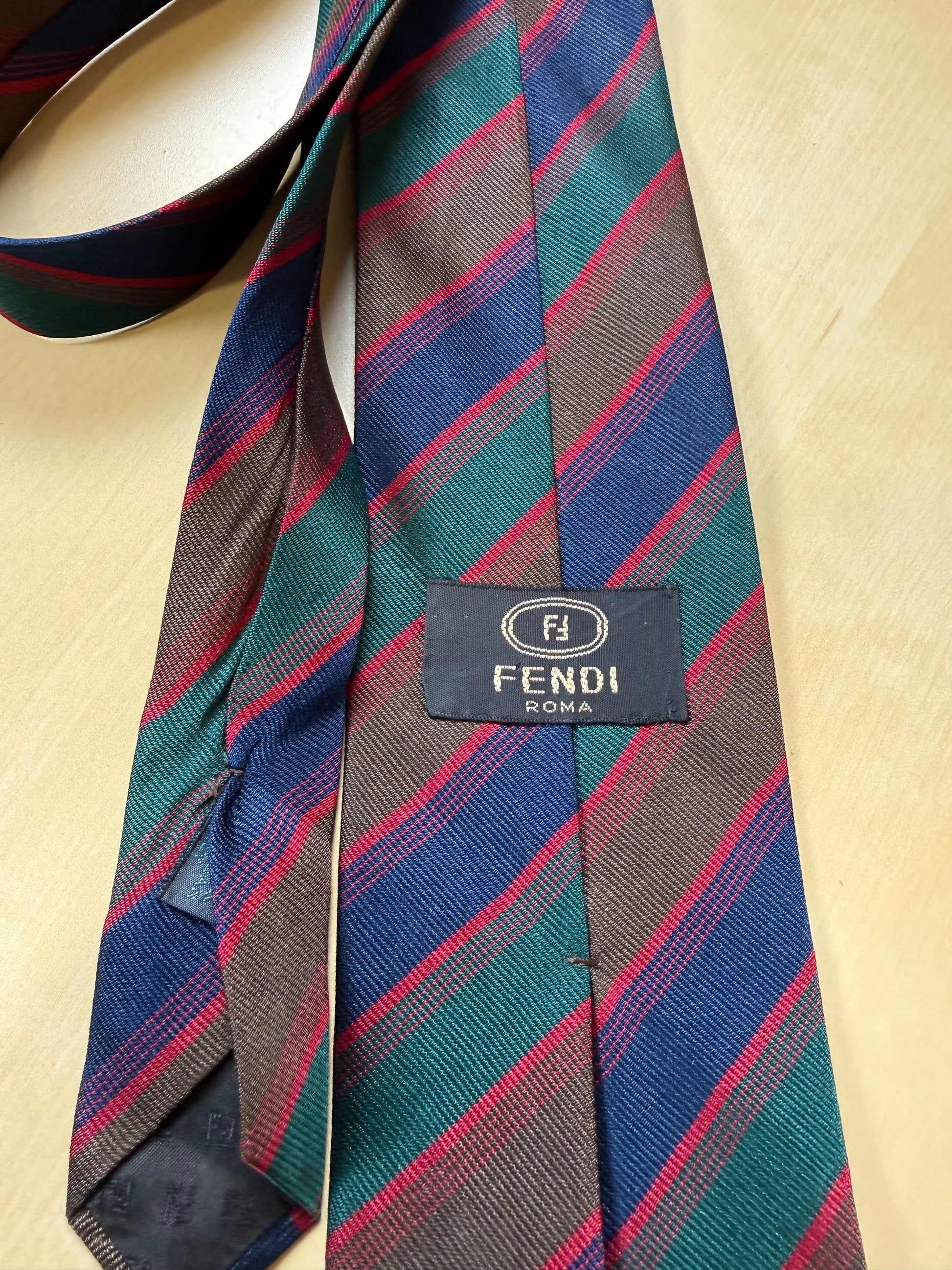 Bellissima cravatta regimental vintage di Fendi, in pura seta con lavorazione cannettata.