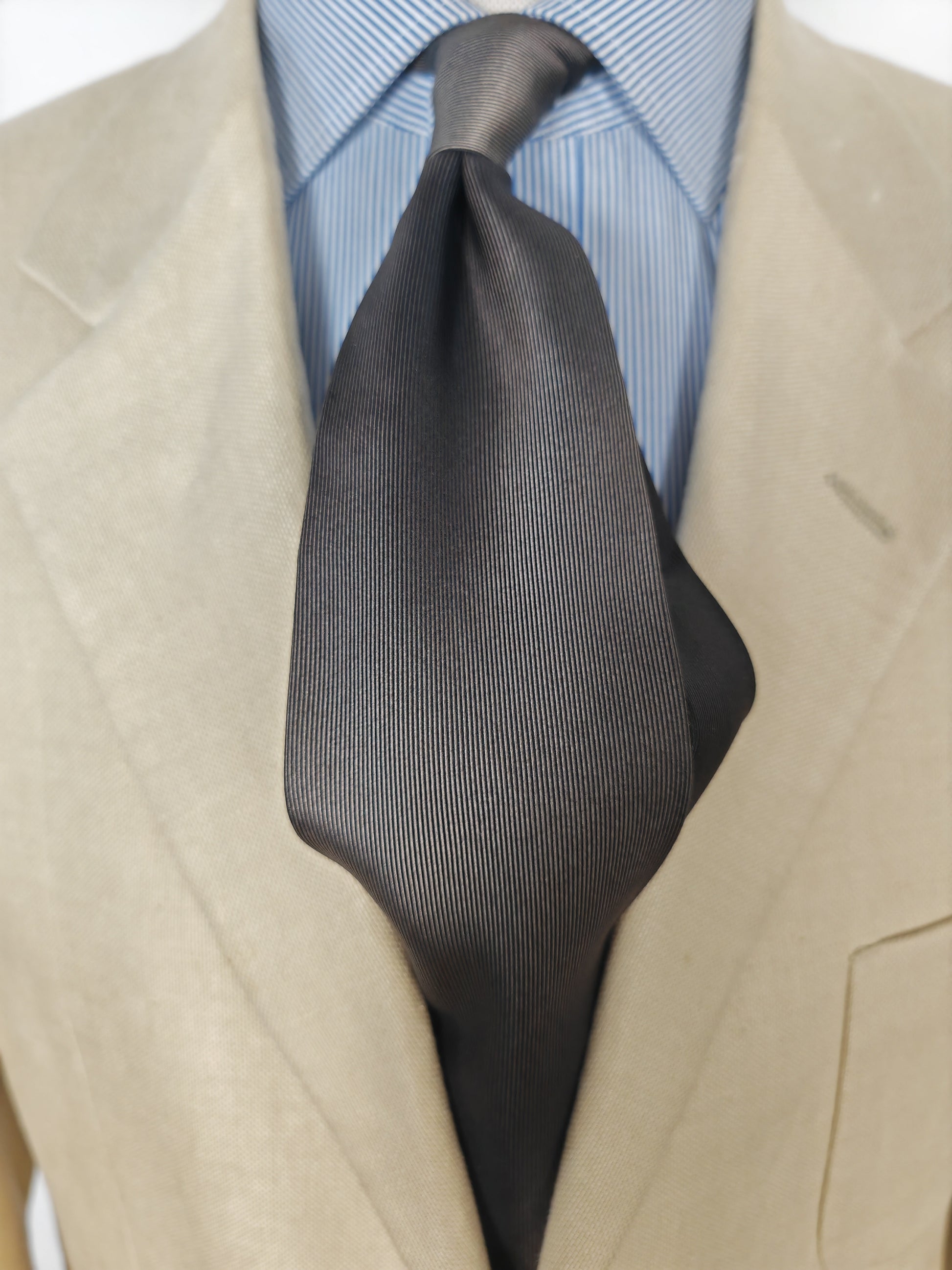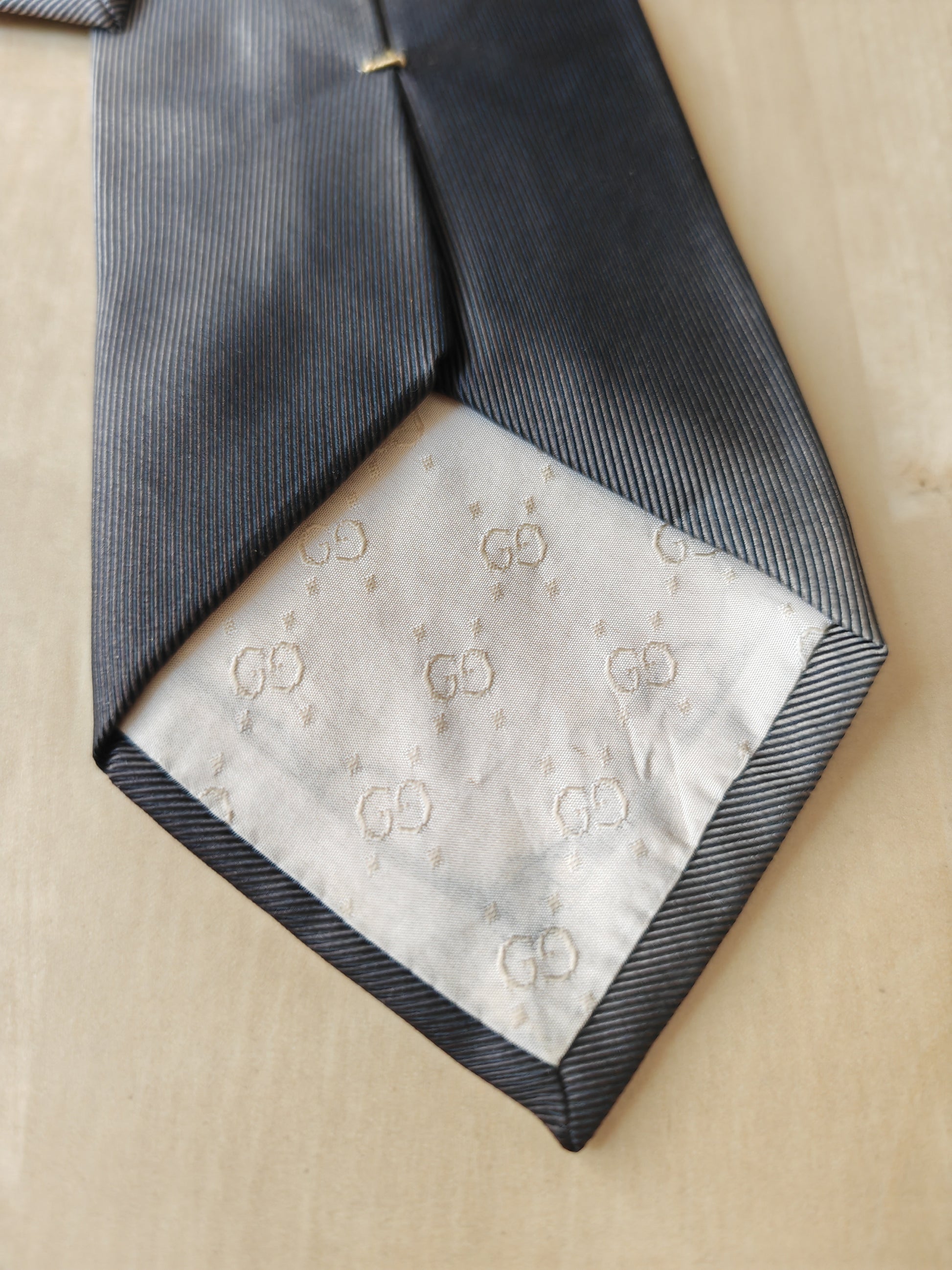 Cravatta Gucci in pura seta con lavorazione cannettata verticale.