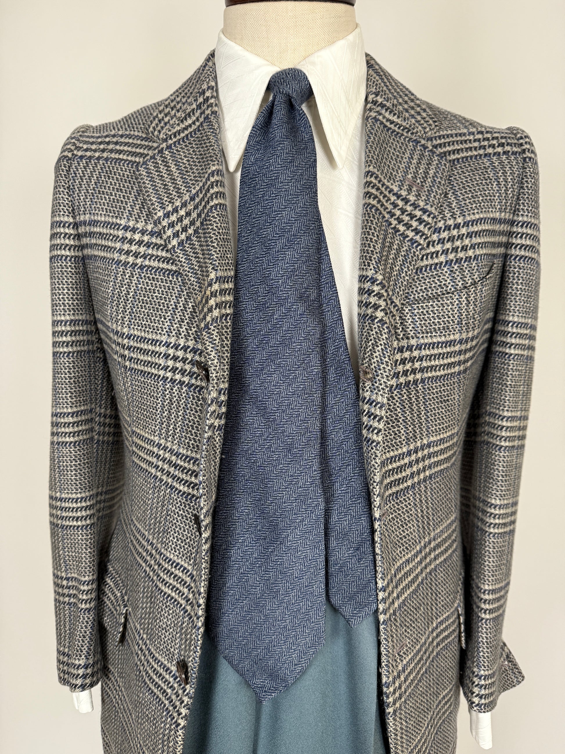 Cravatta vintage Zanolini in 75% lana e 25% seta con trama spigata. Colore uniforme blu mélange.