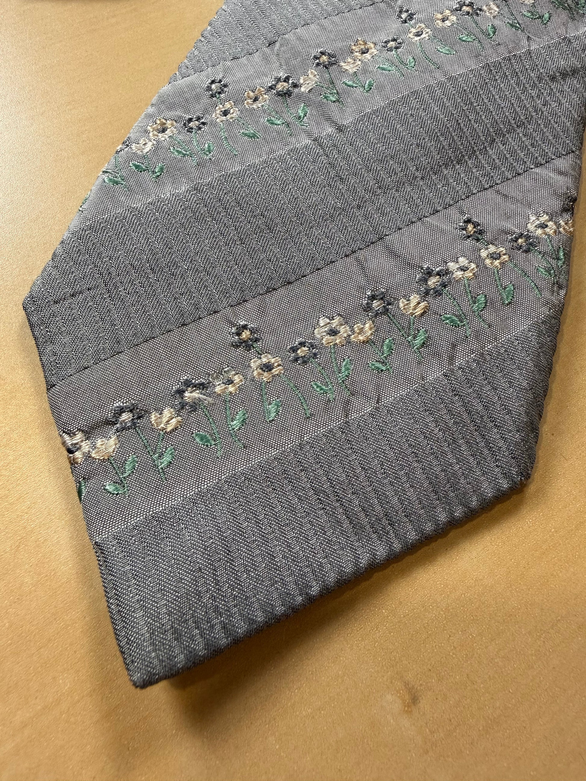 Cravatta Kenzo grigia ricamo floreale
