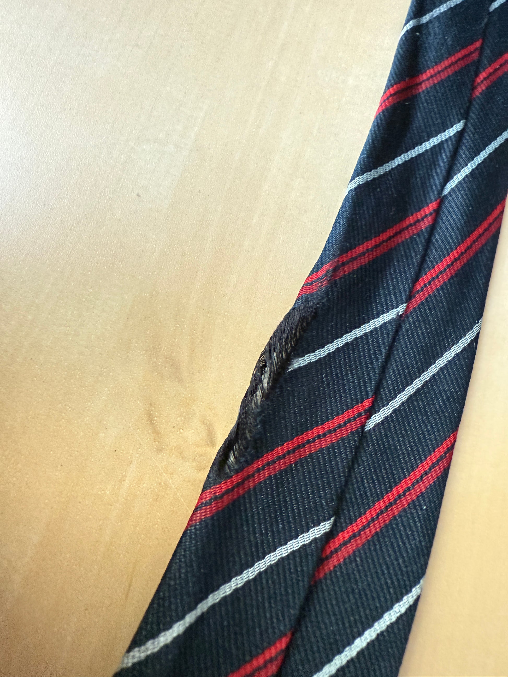 La cravatta presenta qualche difetto come mostrato in foto: si tratta di difetti invisibili a cravatta indossata.