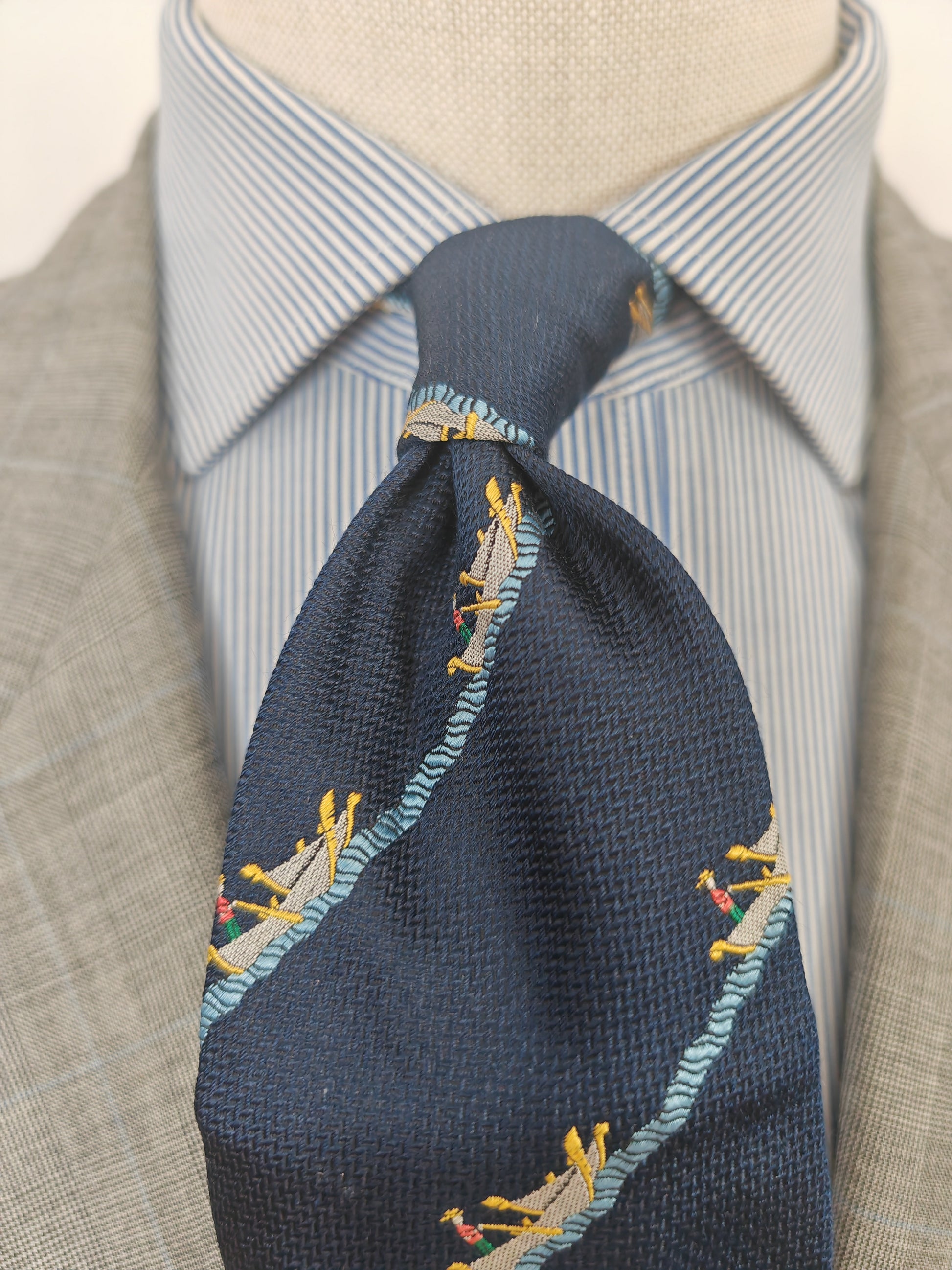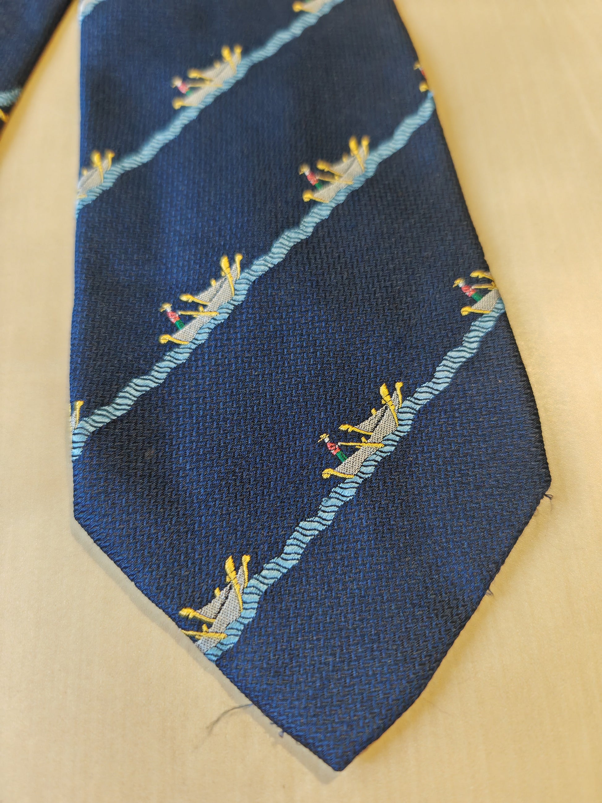 Misure 150×10 cm. Condizioni ottime, con uno strappo sulla parte finale del codino (non visibile a cravatta indossata).