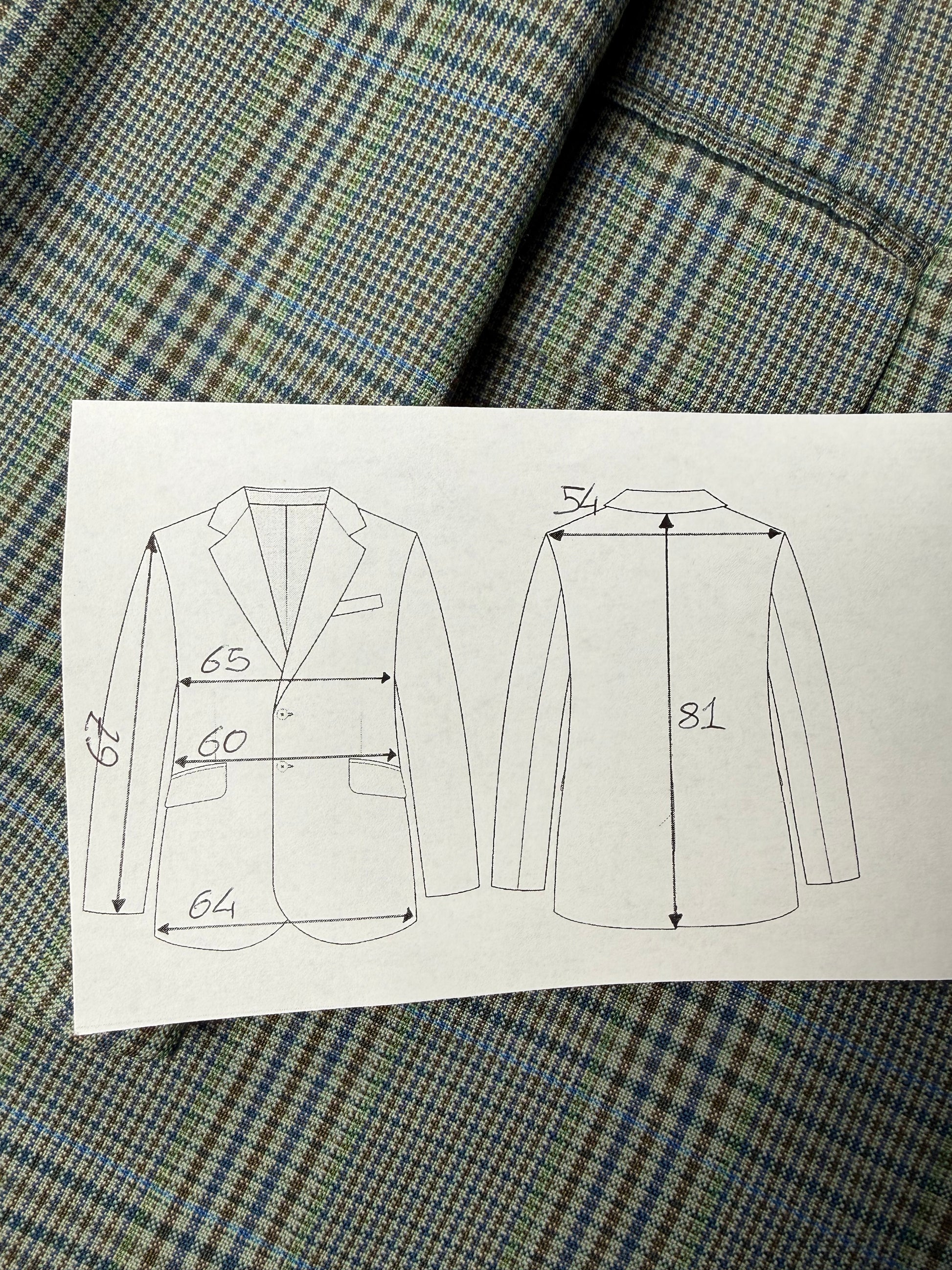 Veste una taglia 58: vedere lo schema in ultima foto con le misure complete in cm.