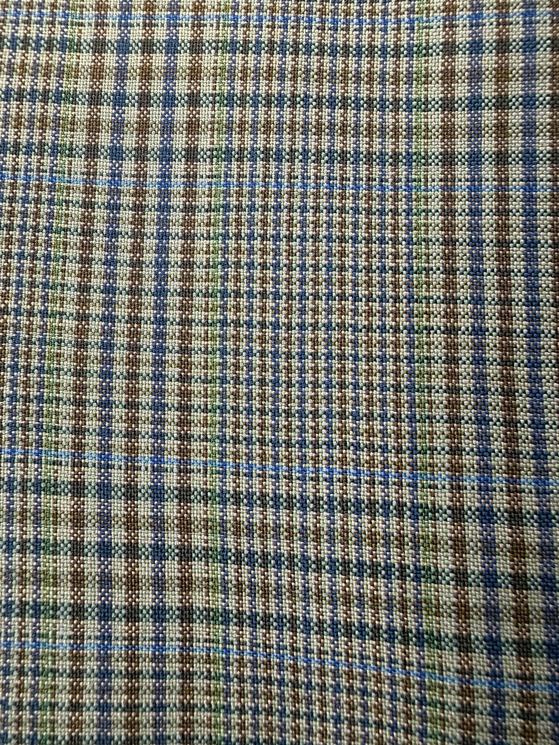Bellissima fantasia principe di Galles sulle tinte tenui del verde salvia, turchese e azzurro.