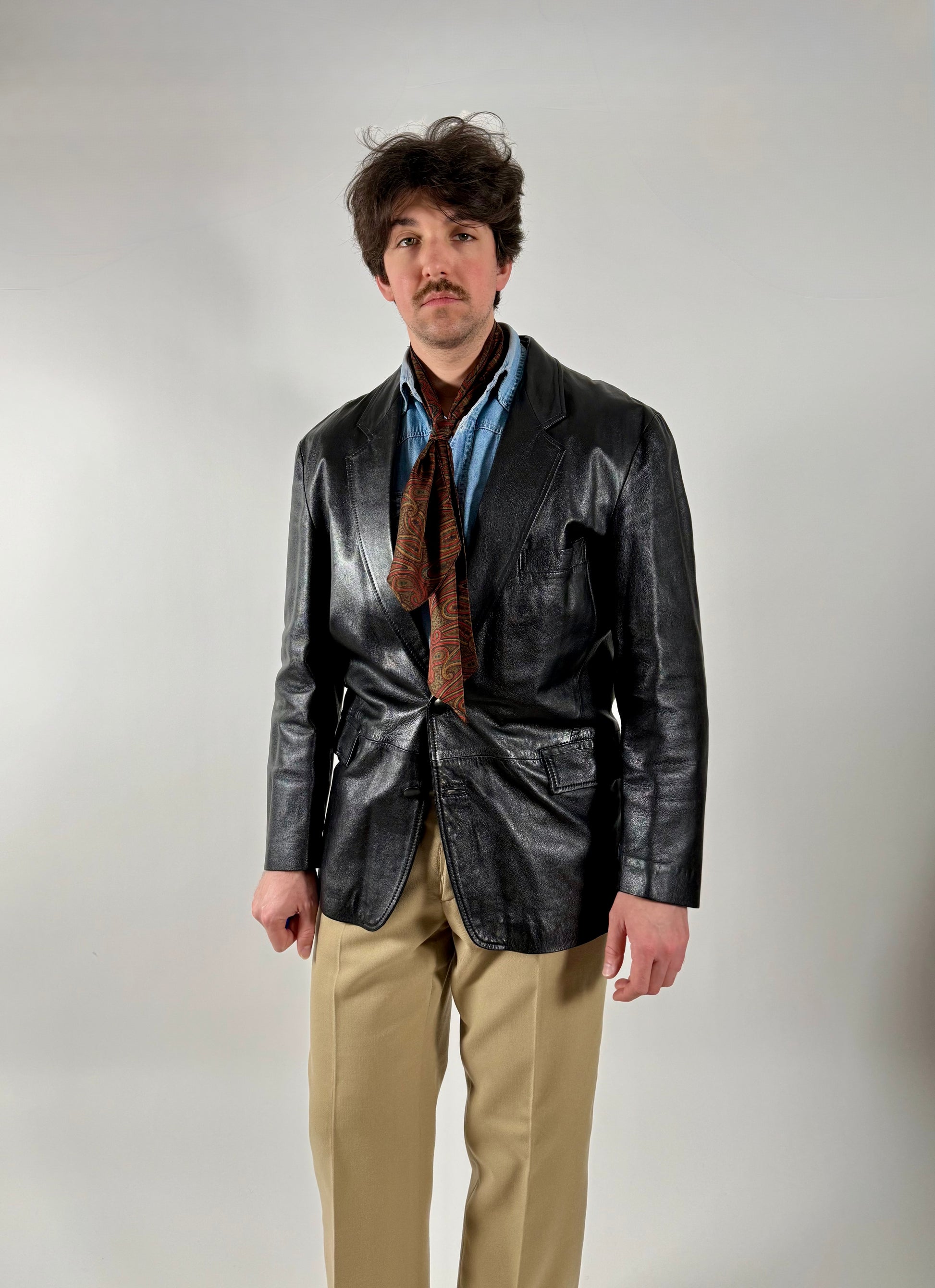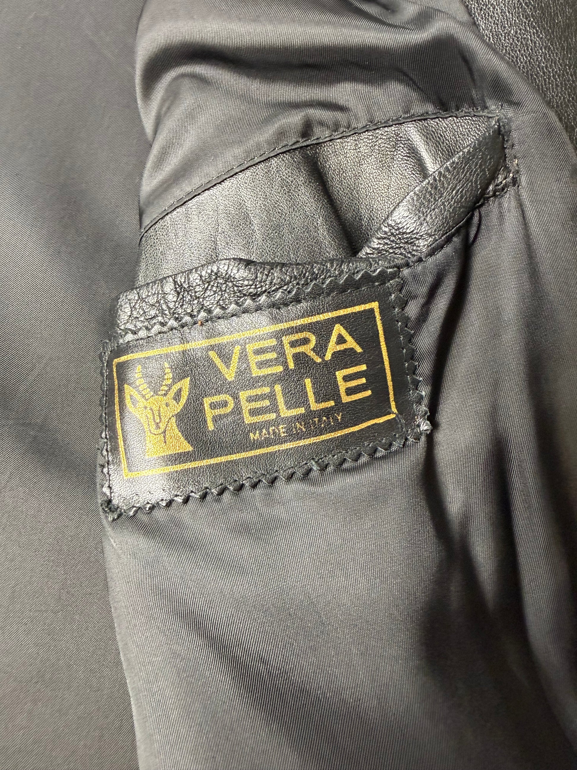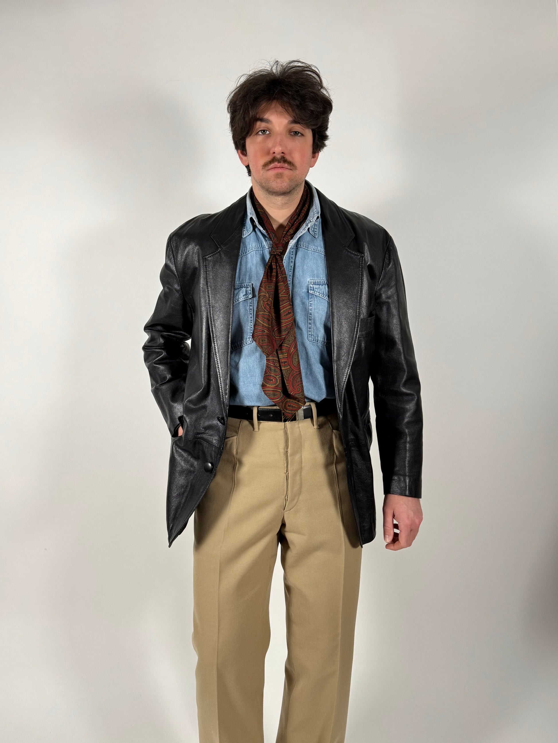 Interessante giacca in pelle anni ‘80, con taglio classico da giacca formale.