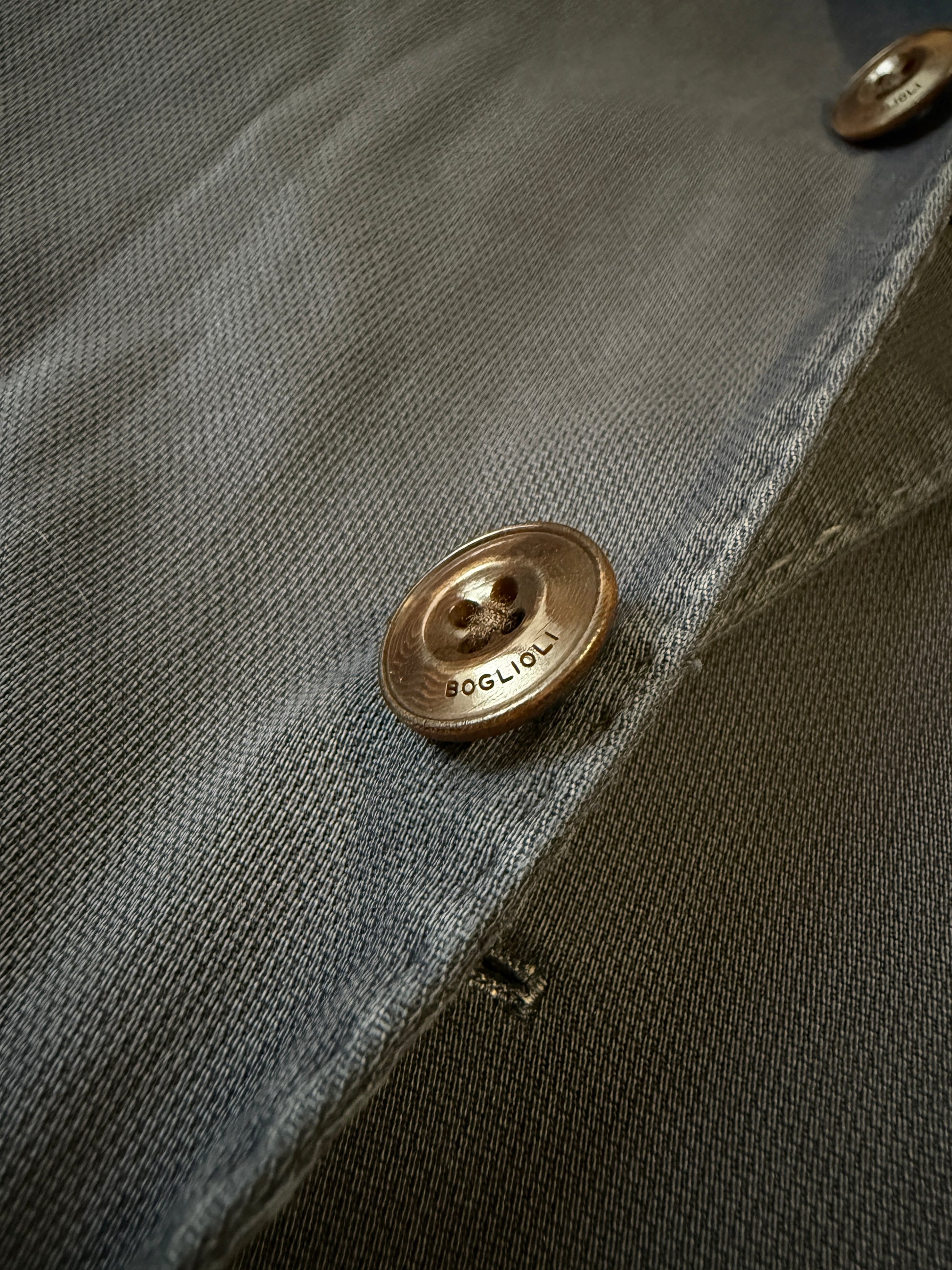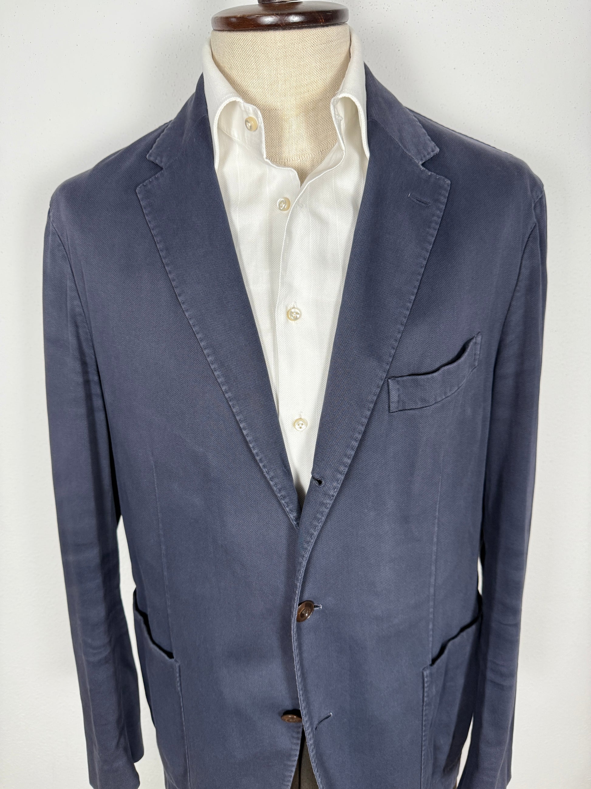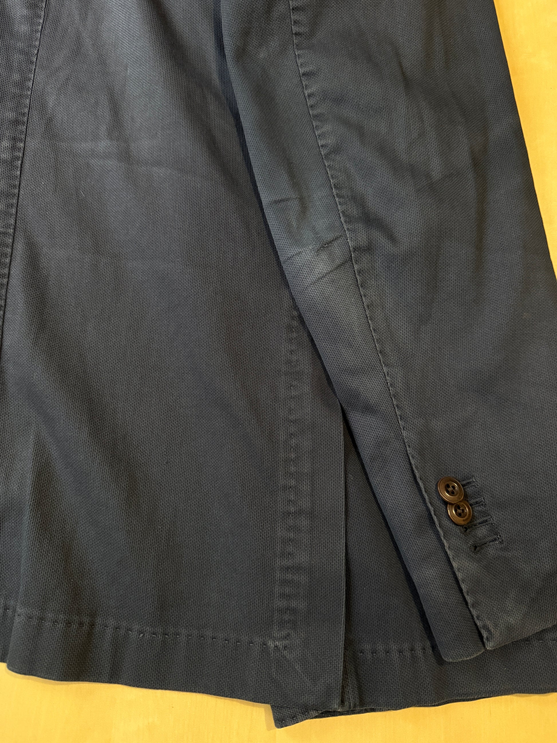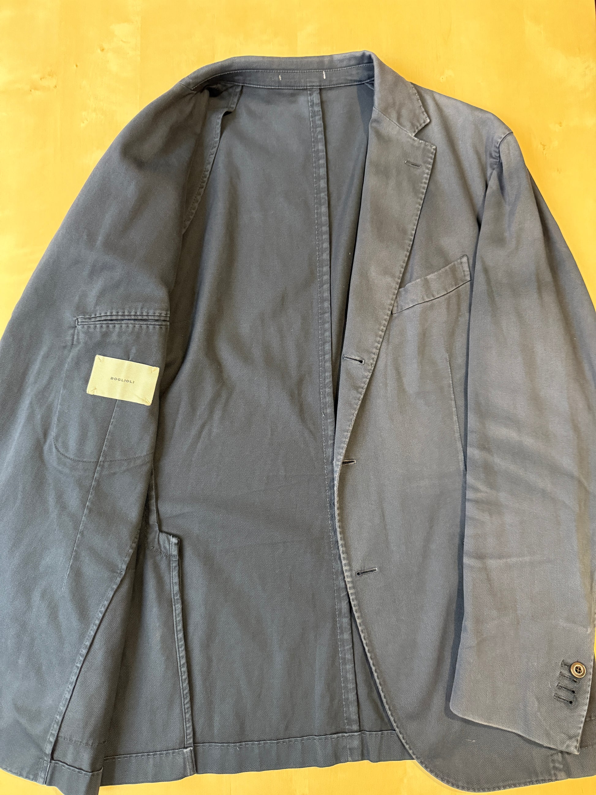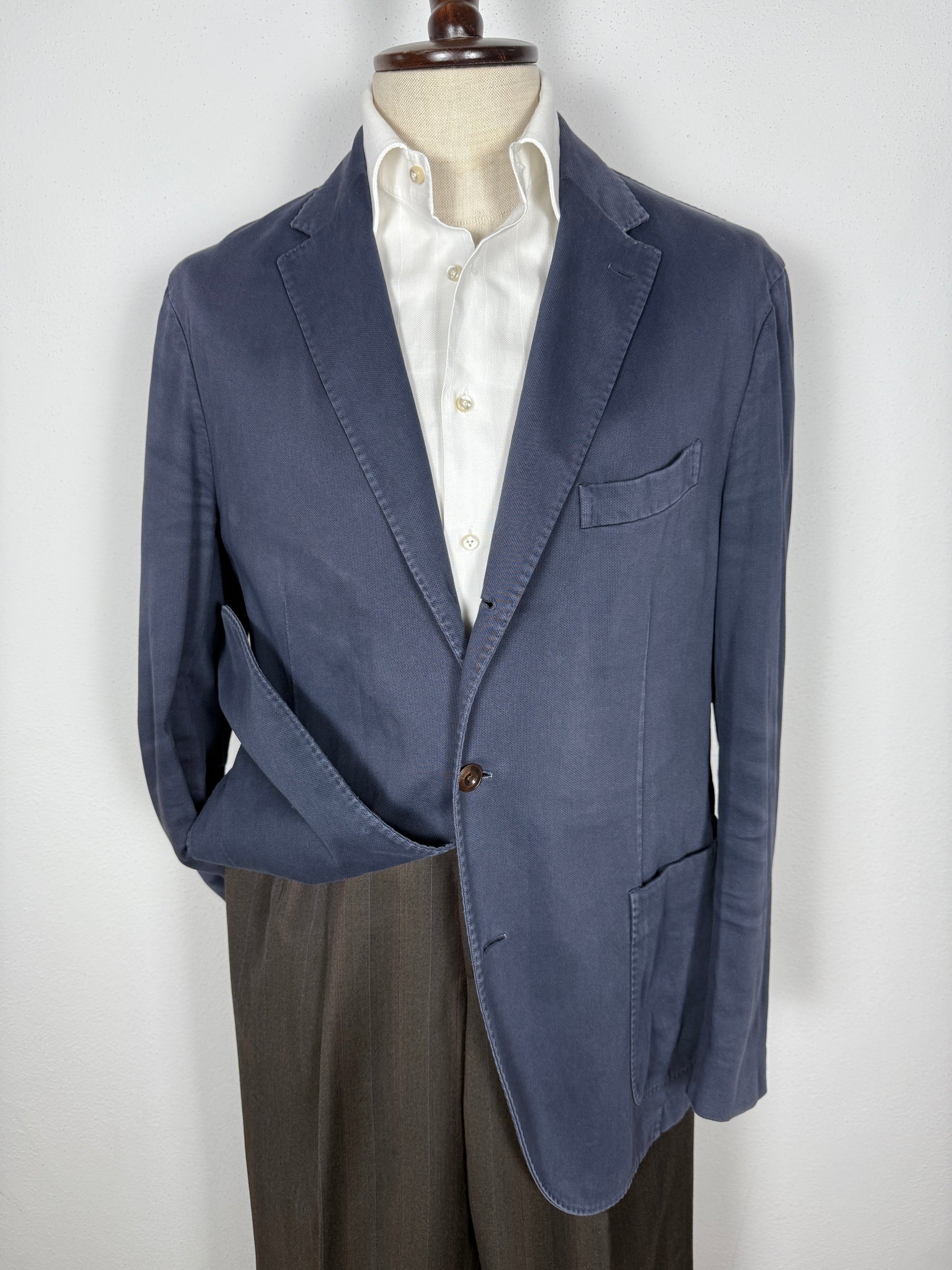 Giacca Boglioli dal tipico taglio destrutturato, in piquet di cotone rasato con una piccola percentuale di elastane. Colore blu navy.
