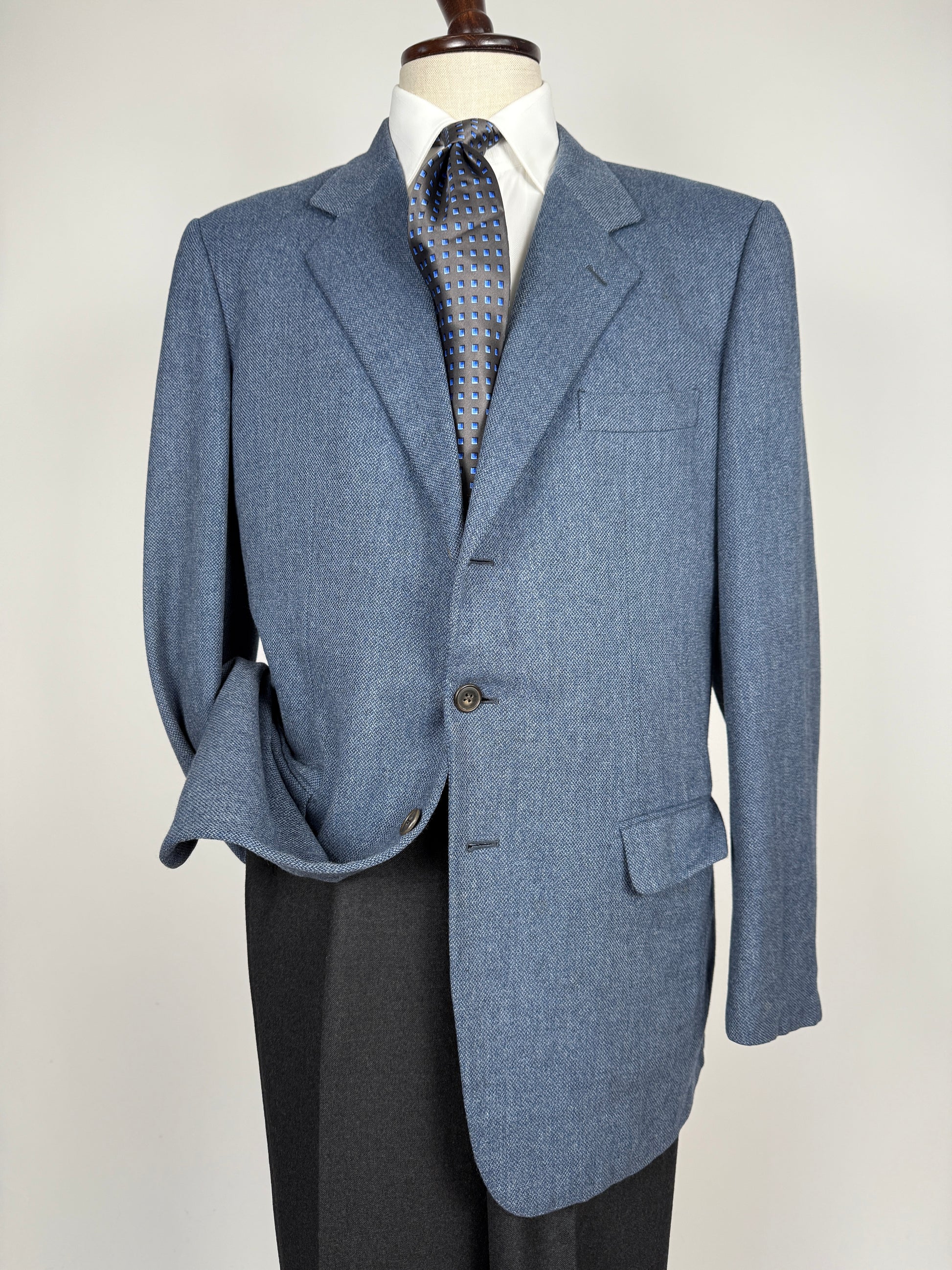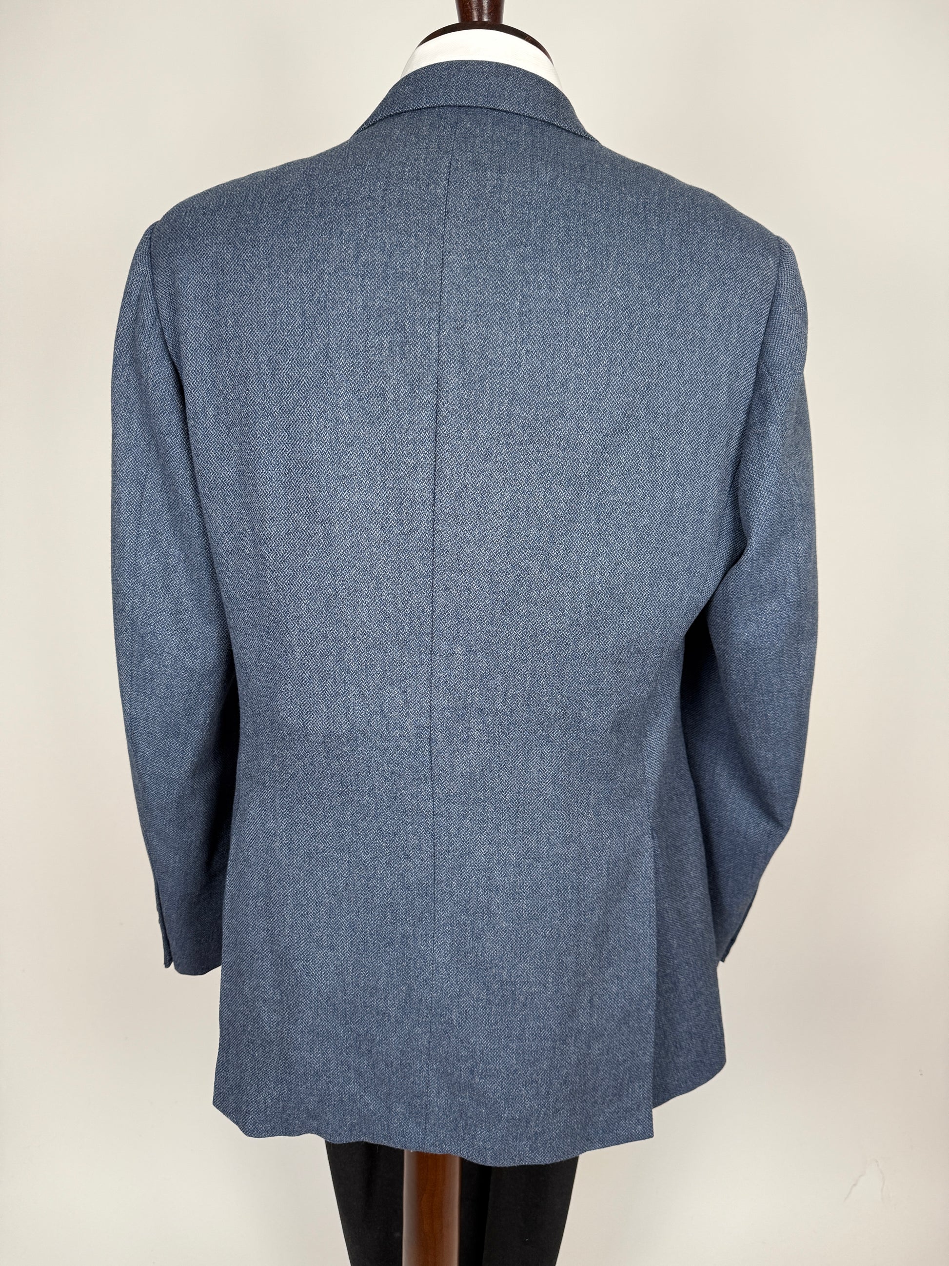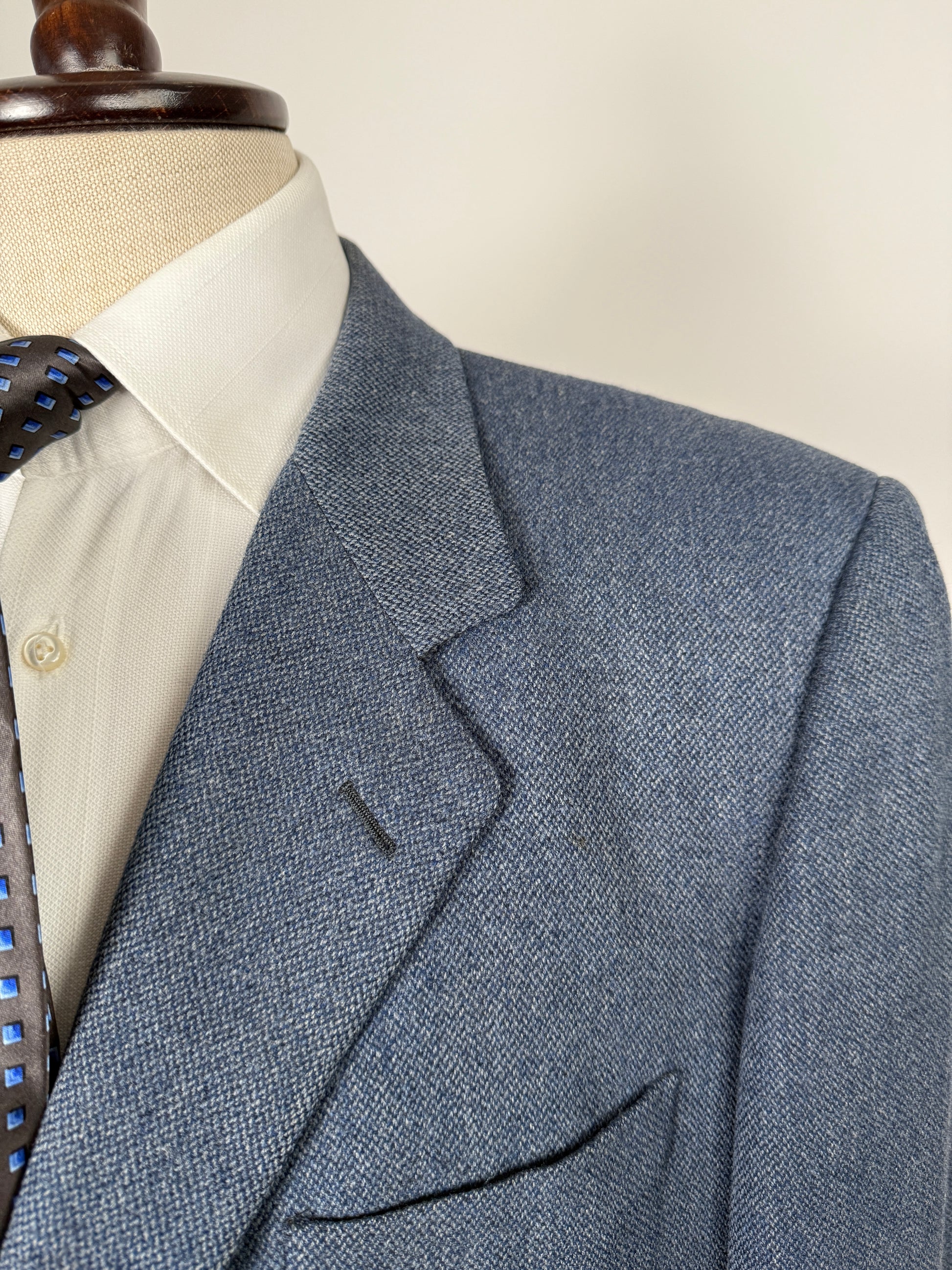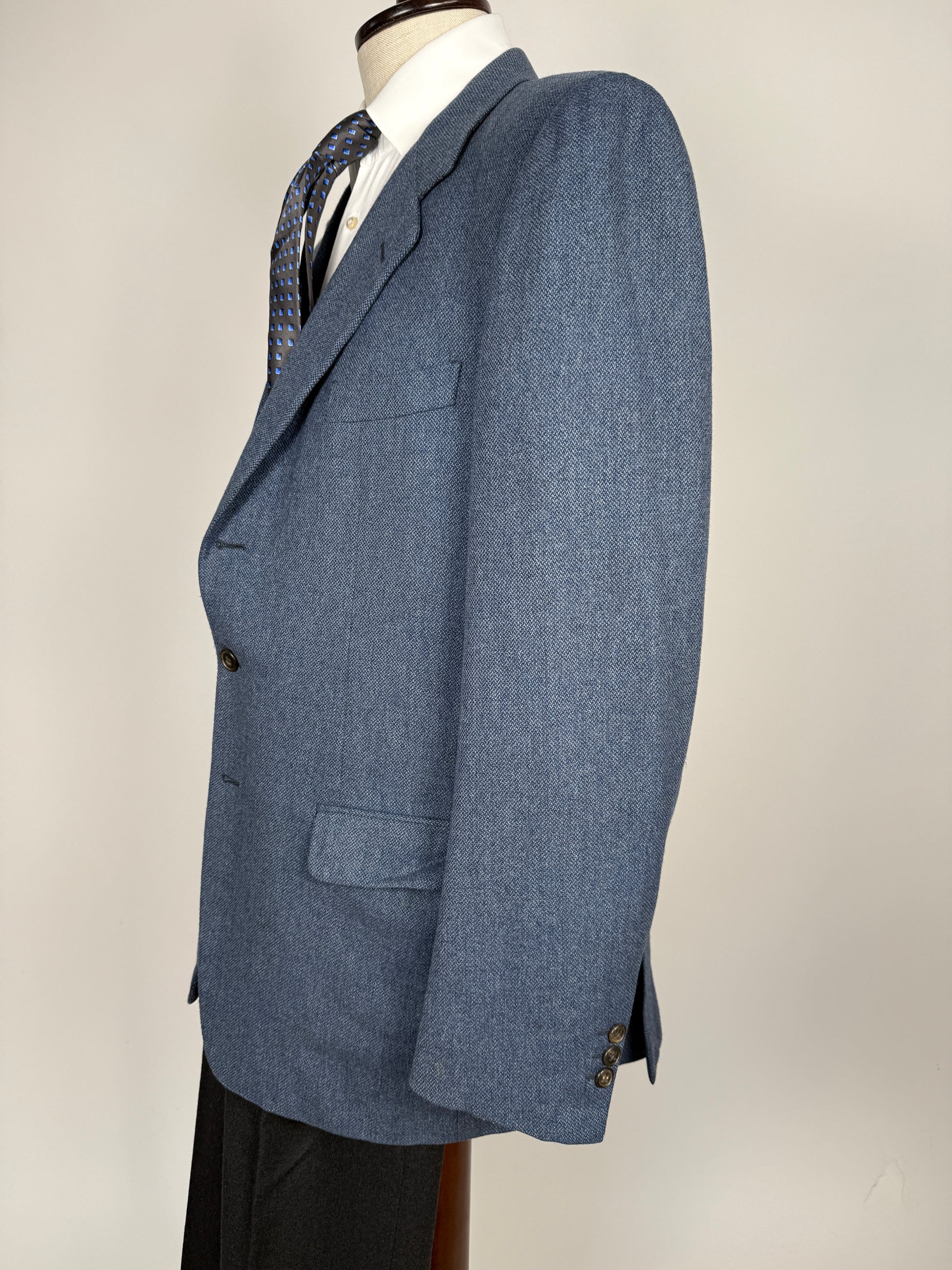 Giacca Burberrys anni '90 in un bel tessuto mélange color blu carta da zucchero, misto lana e cashmere.
