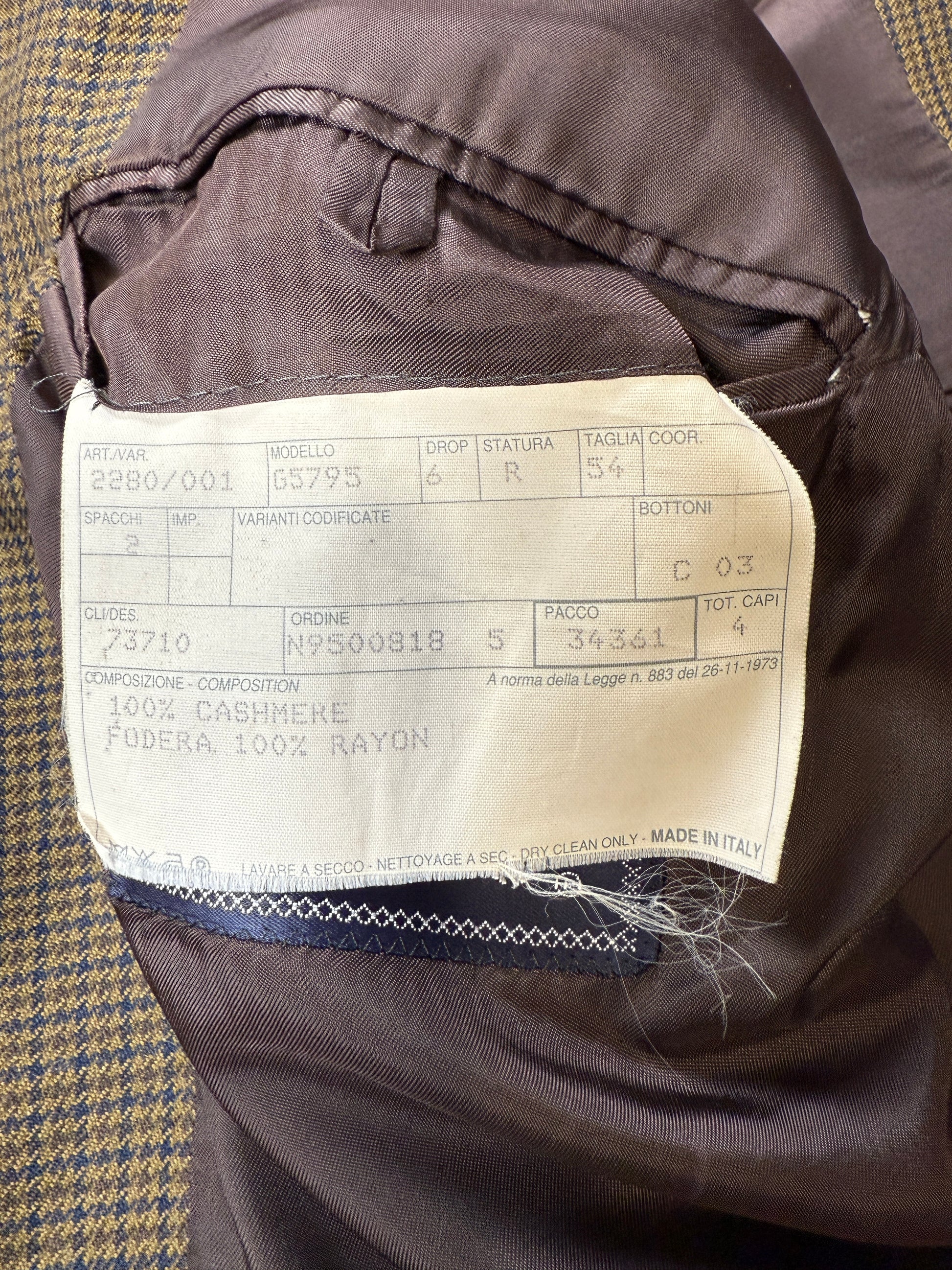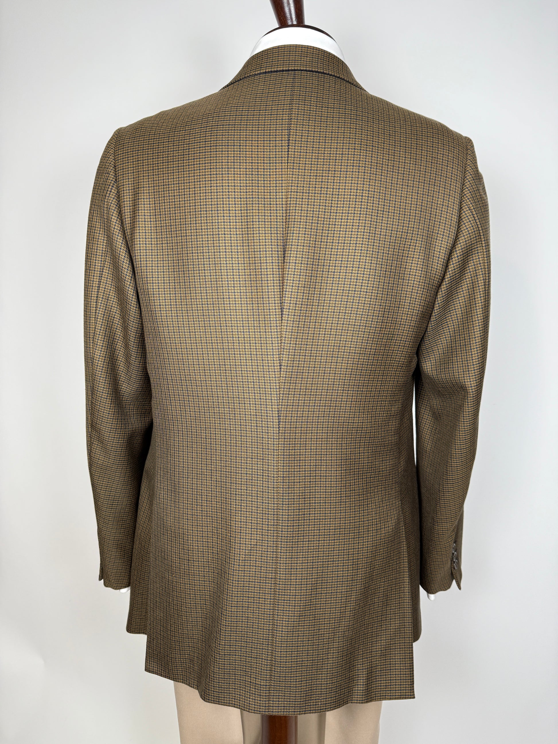 La giacca ha una eccellente costruzione completamente intelata (full canvas), con taglio a 3 bottoni, doppio spacco e tasche a pattina.