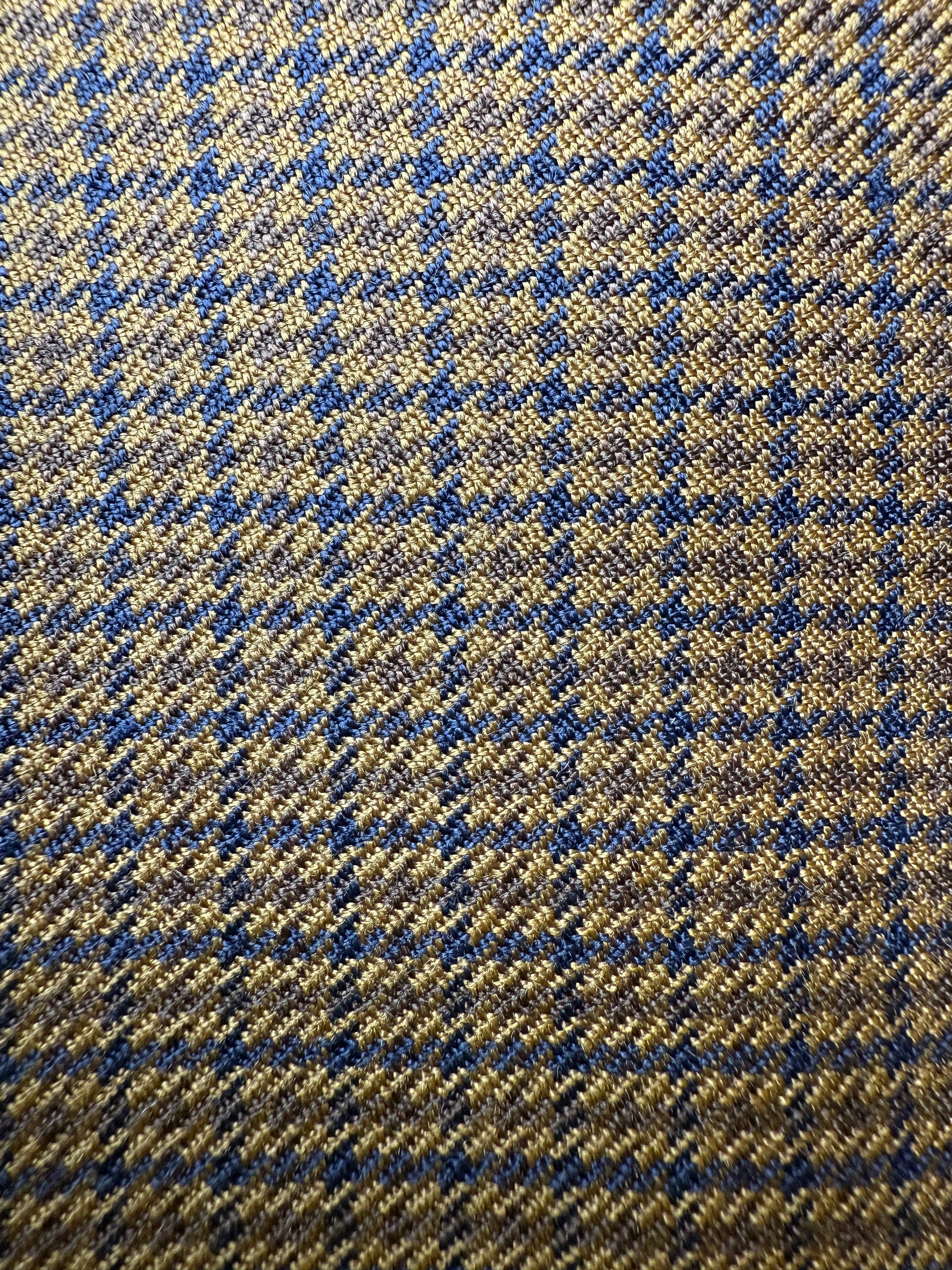 Fantasia pied-de-poule/check sui toni del cachi, senape, marrone.