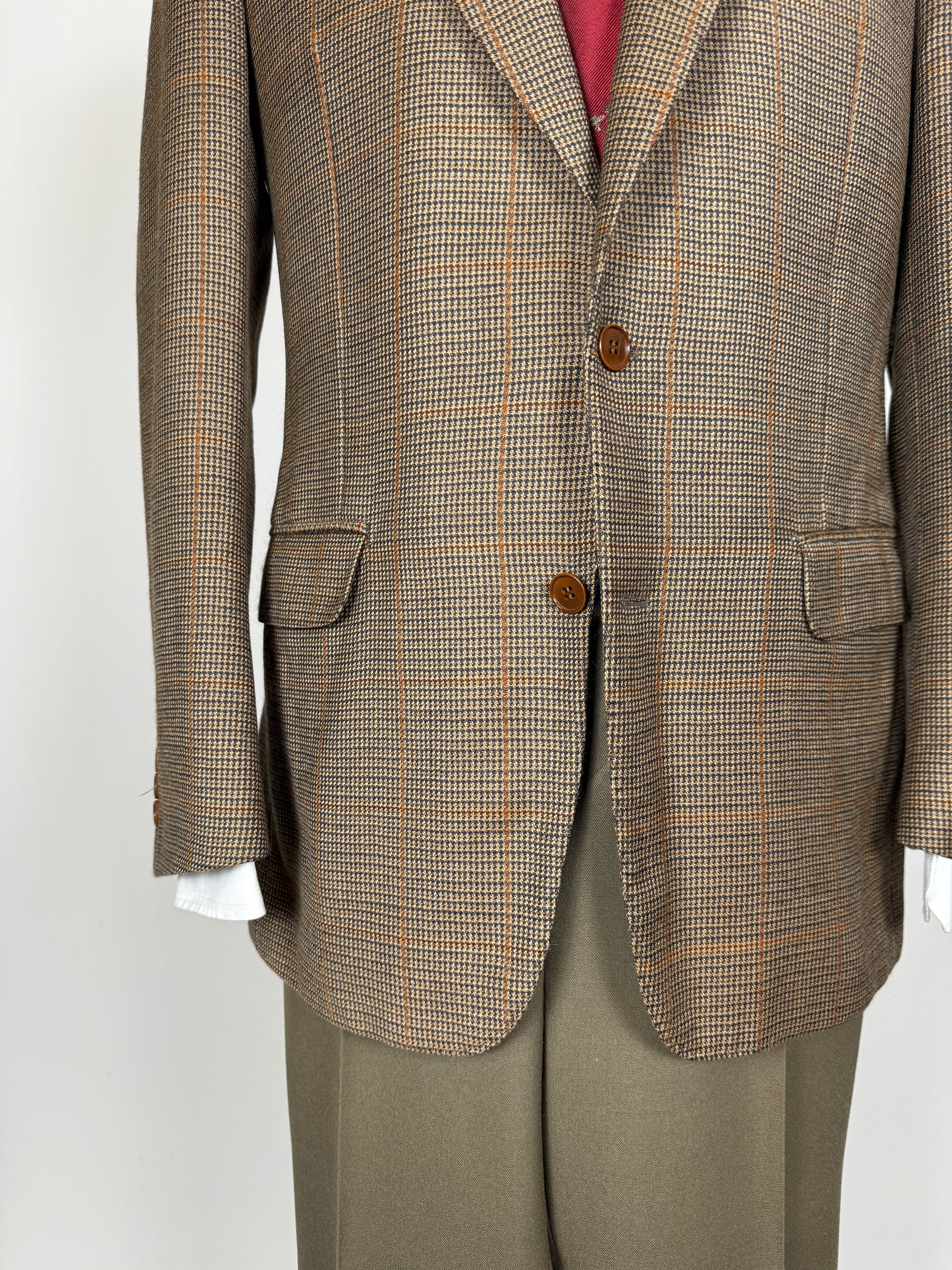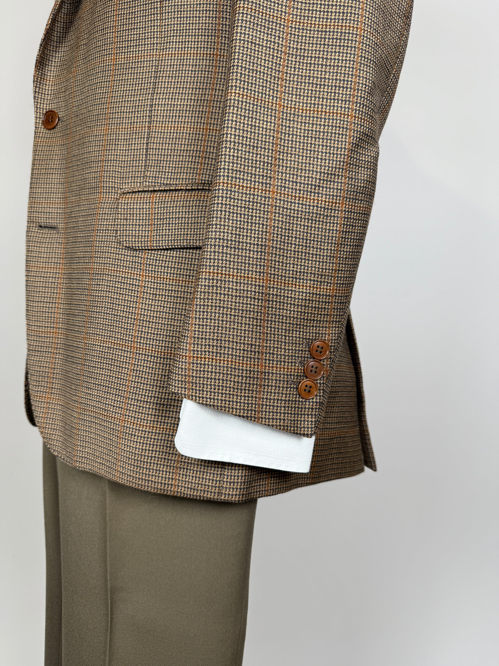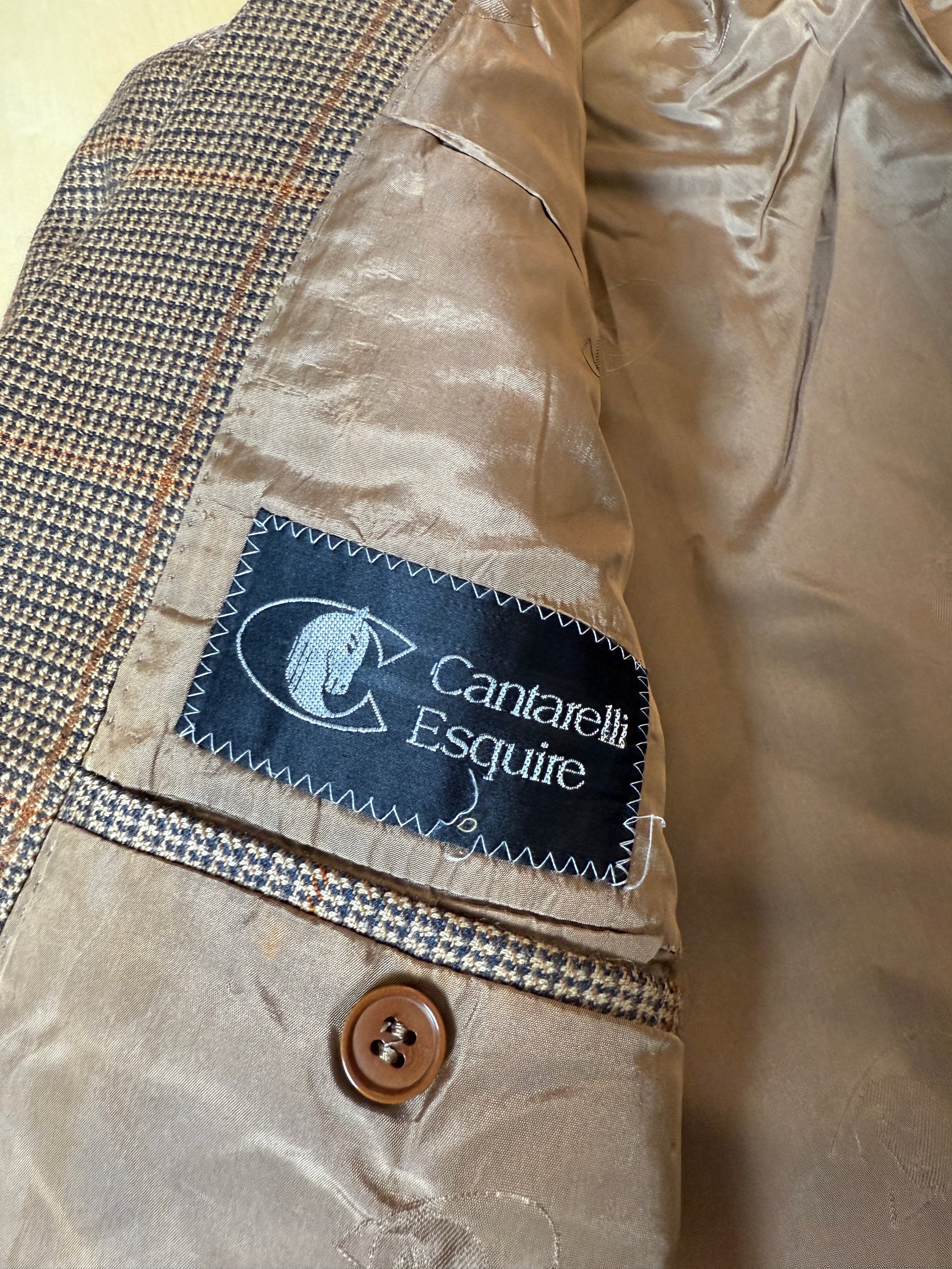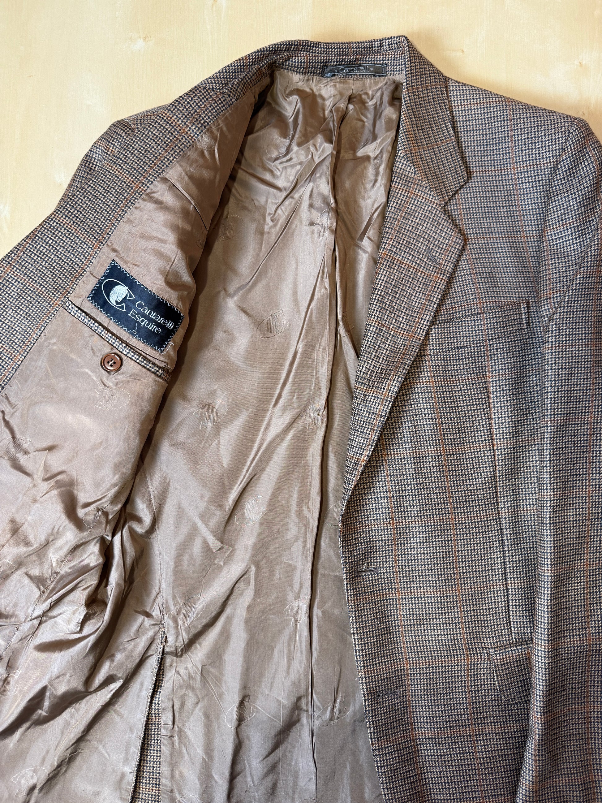 Giacca Cantarelli Esquire anni ‘70/‘80 con bellissima fantasia check finestrata sulle tinte del marrone, cammello, tabacco e ruggine.