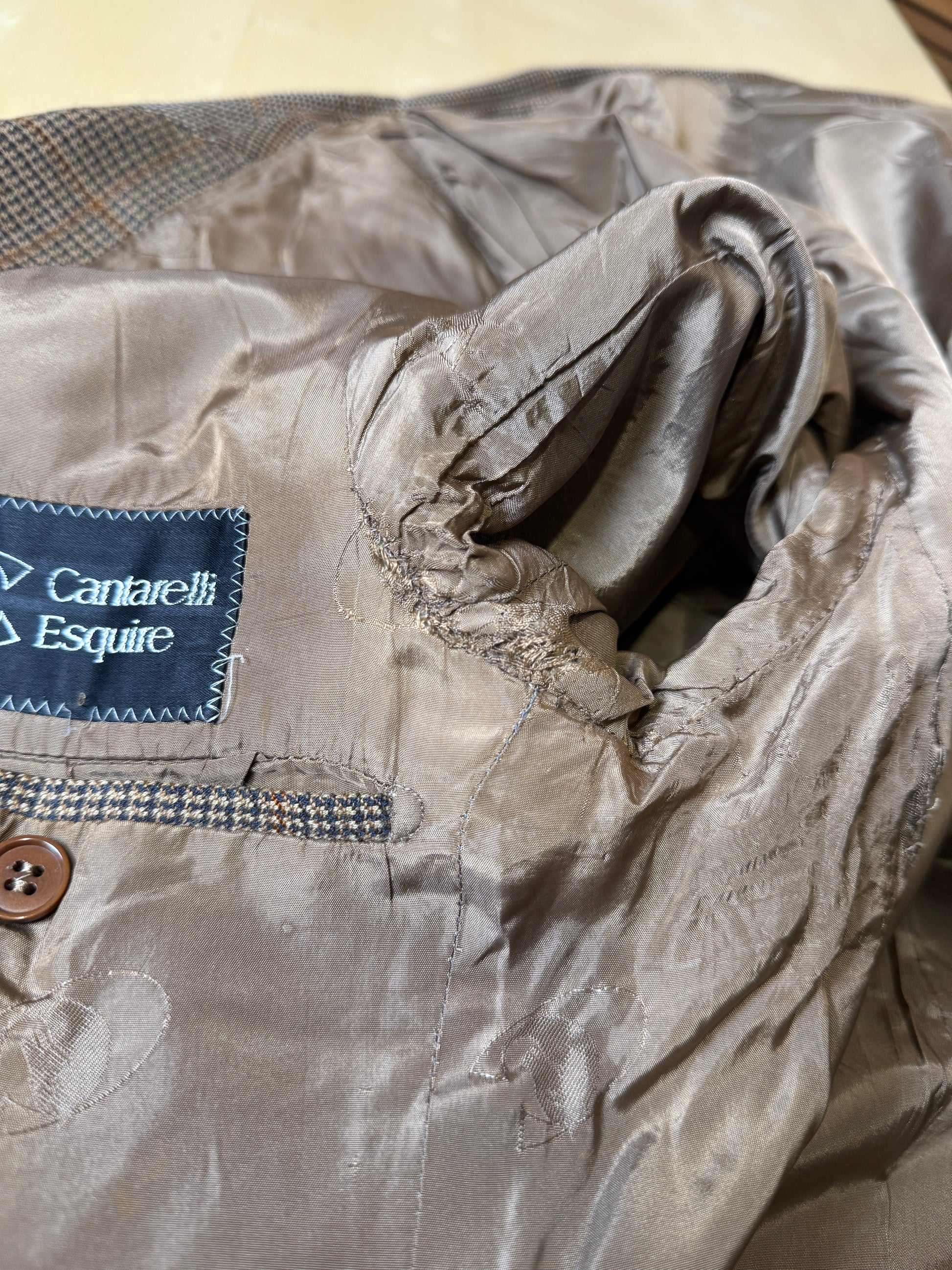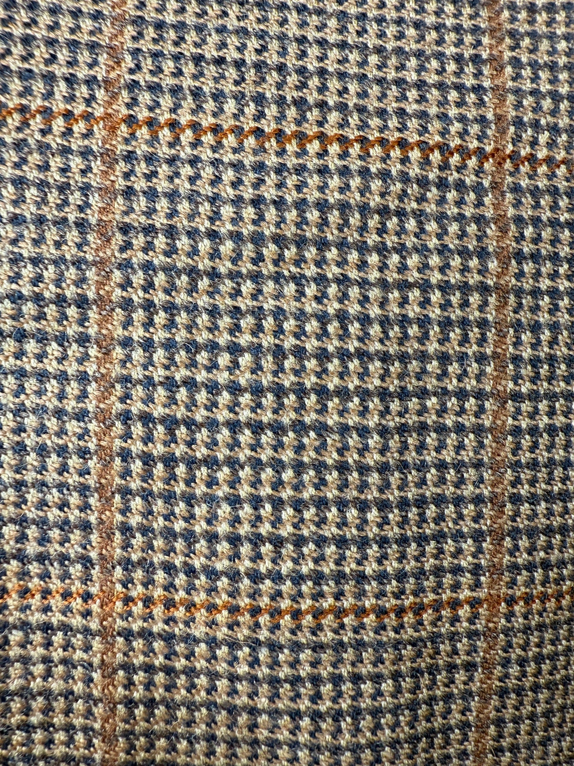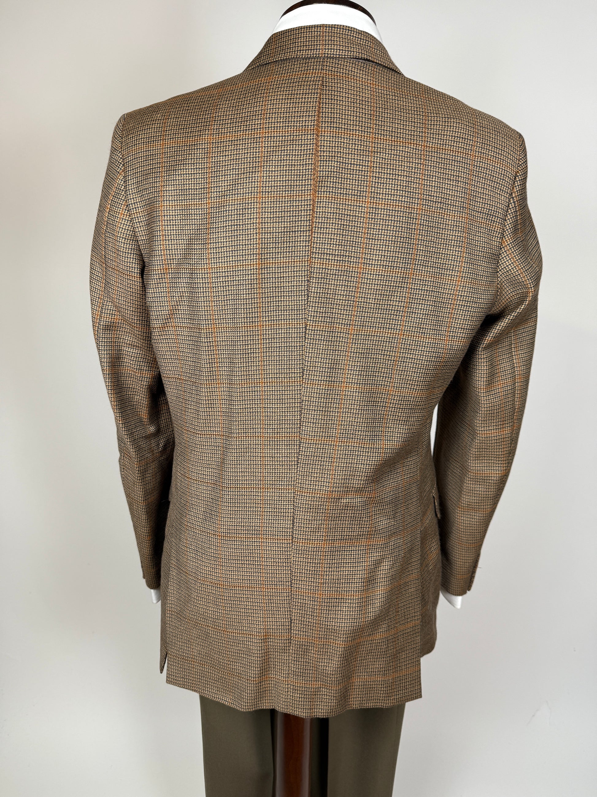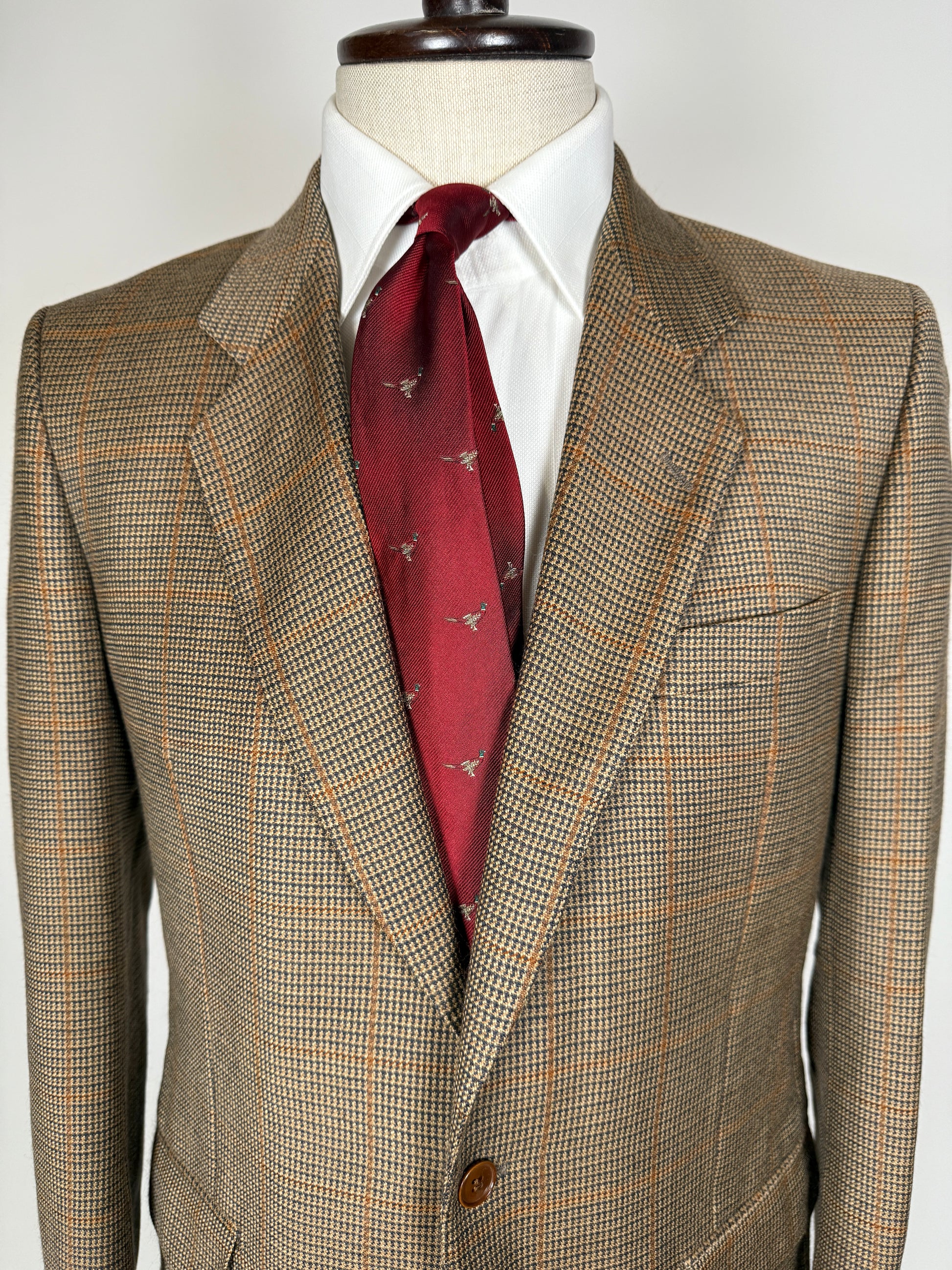 Giacca Cantarelli Esquire anni ‘70/‘80 con bellissima fantasia check finestrata sulle tinte del marrone, cammello, tabacco e ruggine.