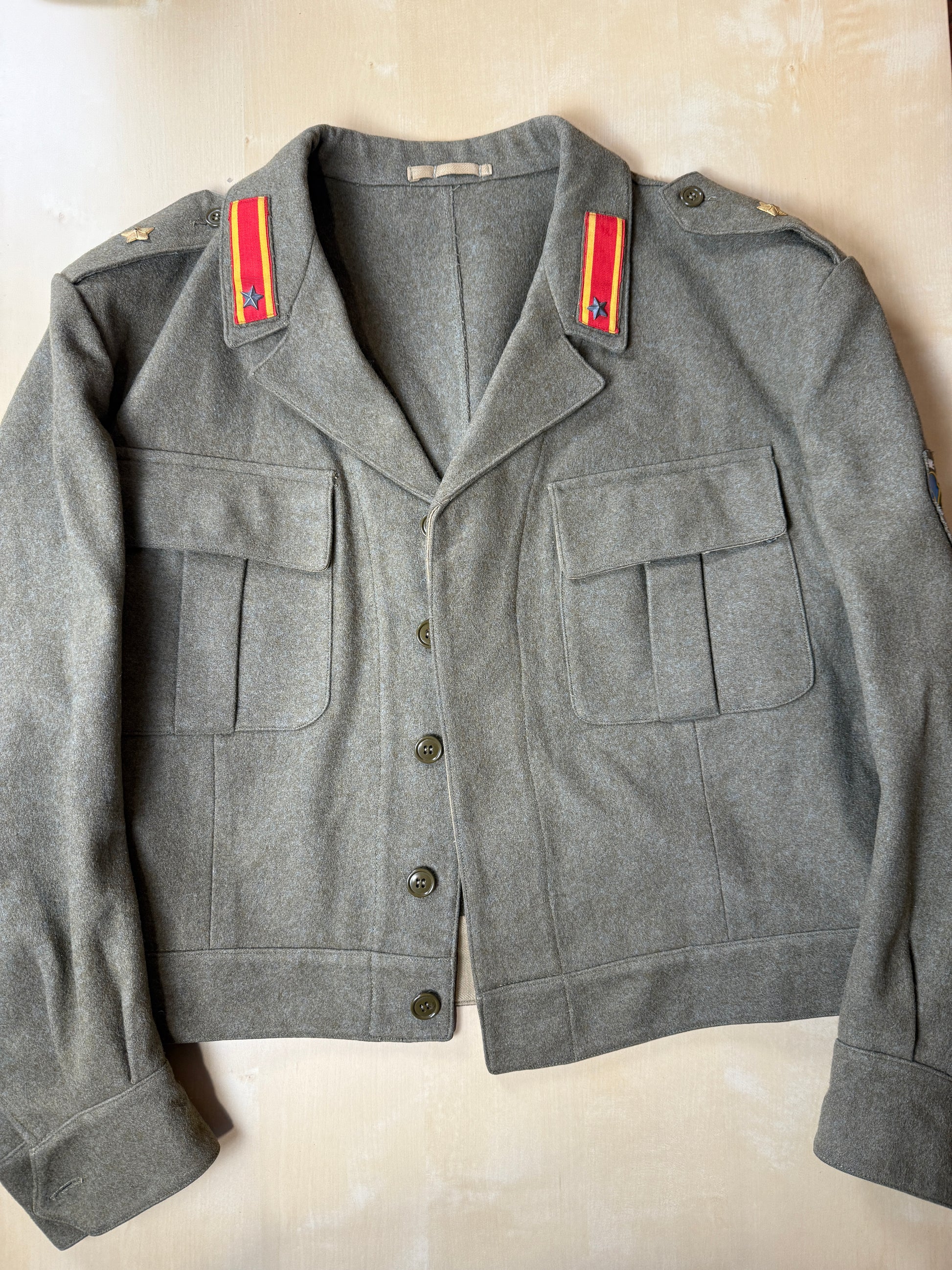 Giubba da uniforme Esercito Italiano datata 1959, del tipo cosiddetto "battle dress" in uso dal primissimo dopoguerra fino agli anni '70 inoltrati.