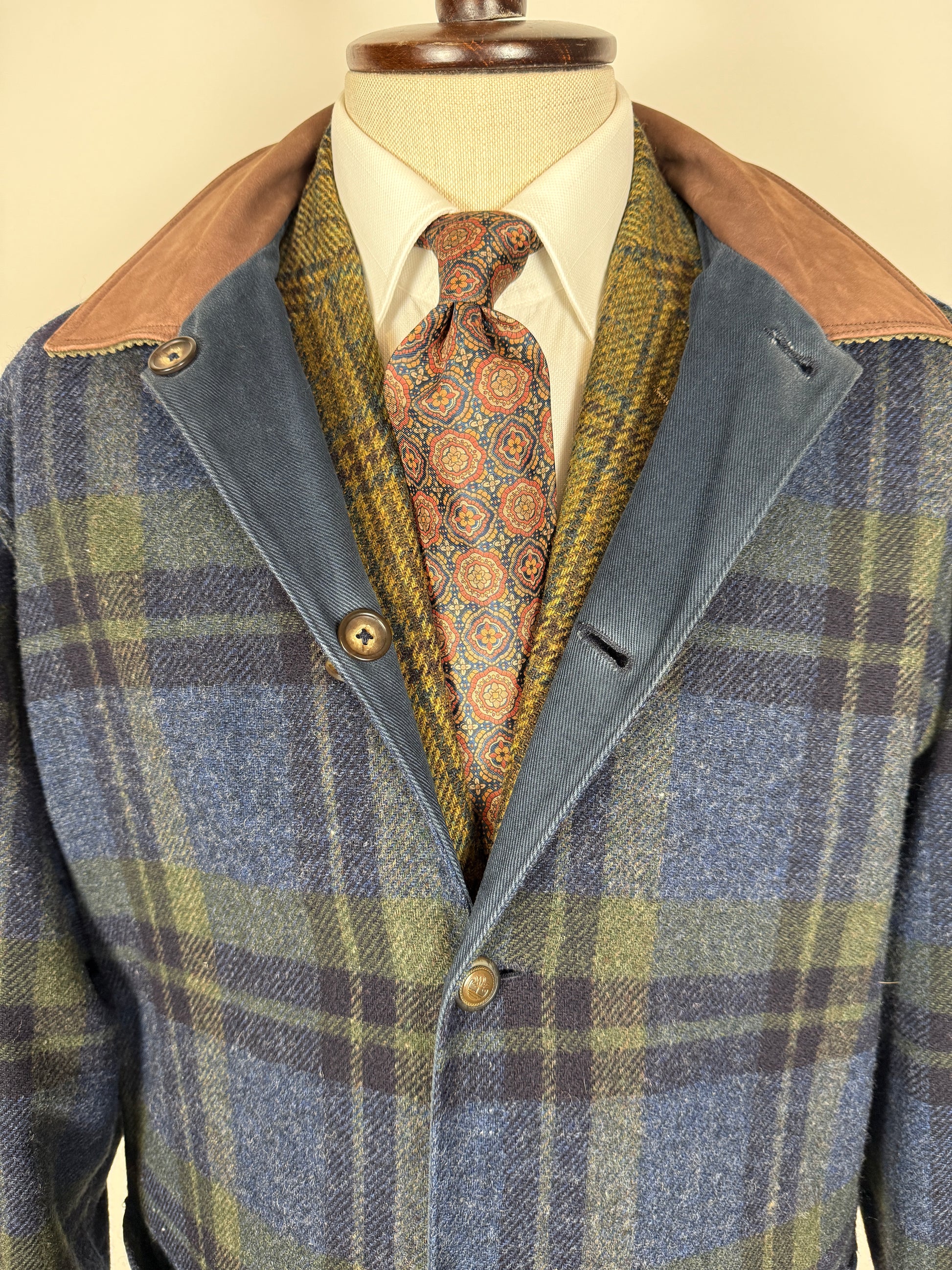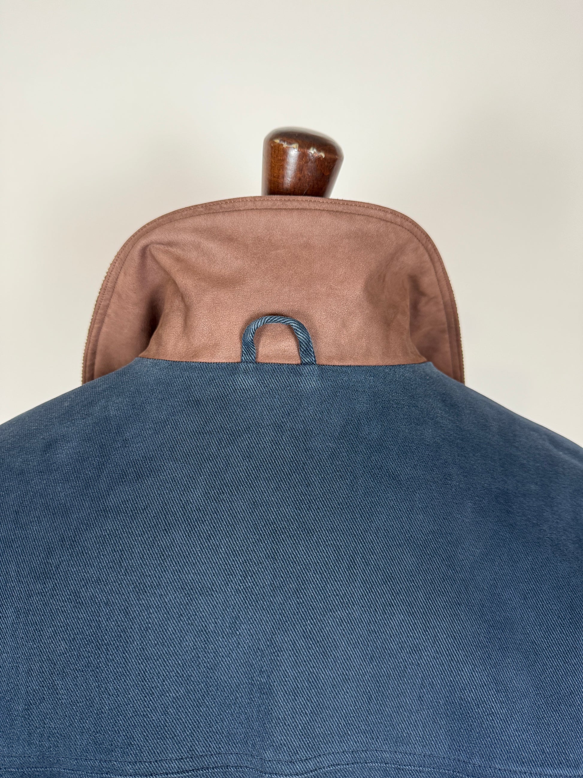 Colletto anch'esso double face, con una faccia in velluto a coste verde e l'altro in vera pelle.