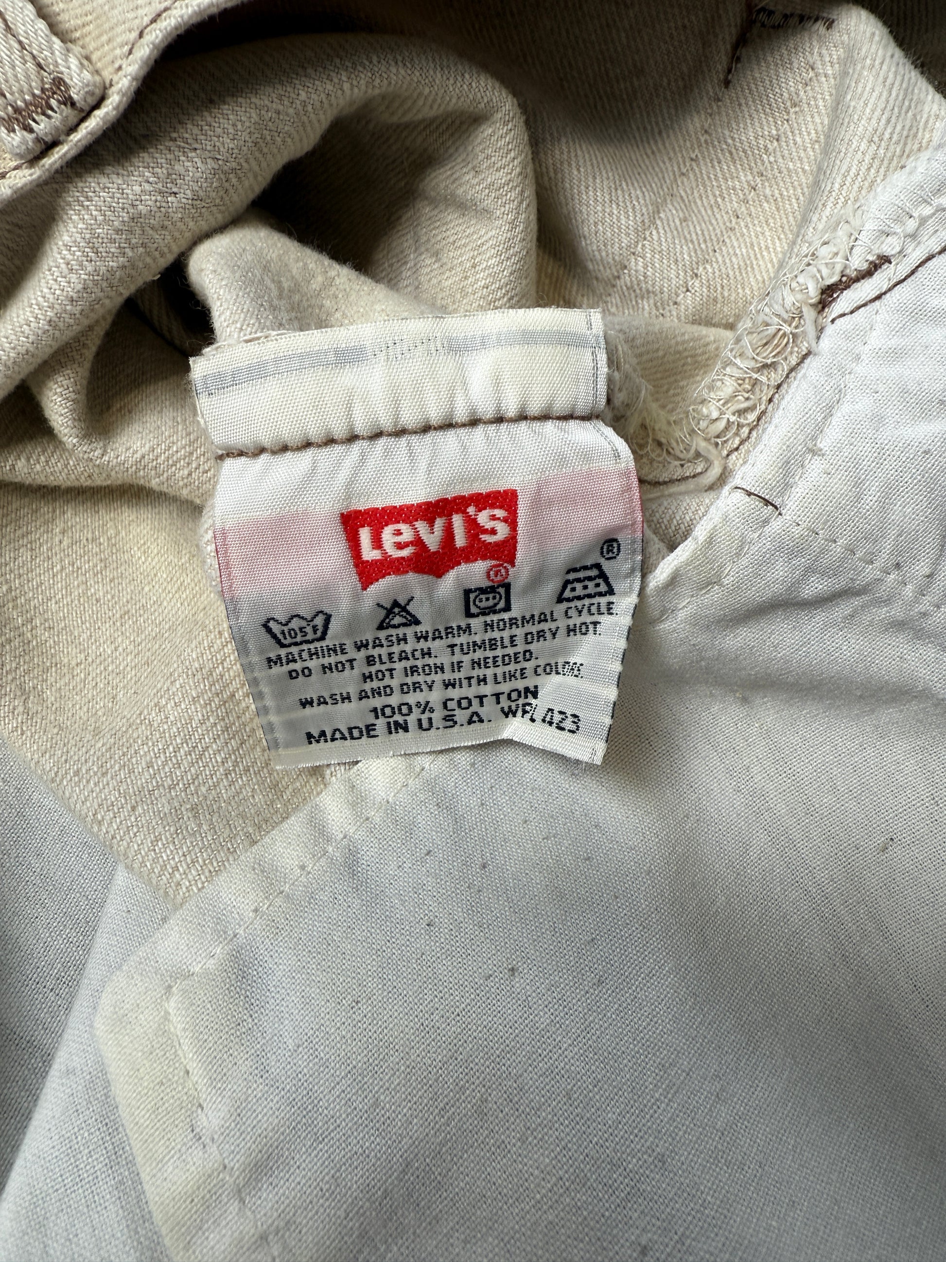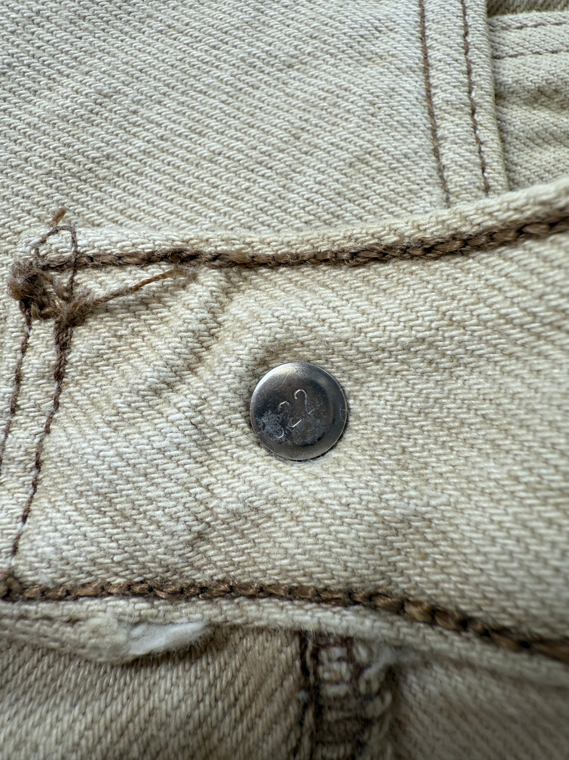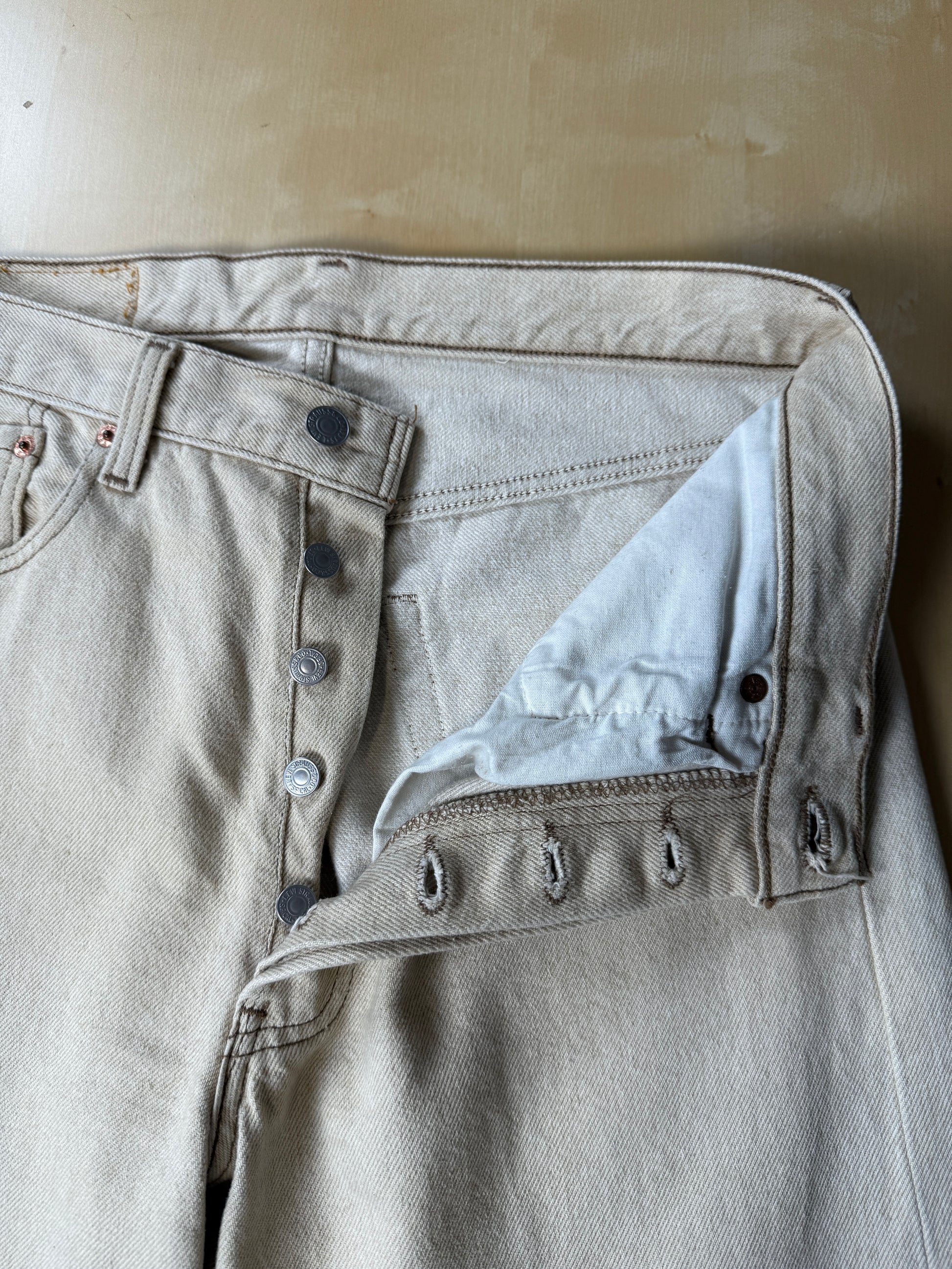 Levi’s 501 made in USA, anno 1995, in un bellissimo e raro lavaggio chiaro colore beige/ecru.