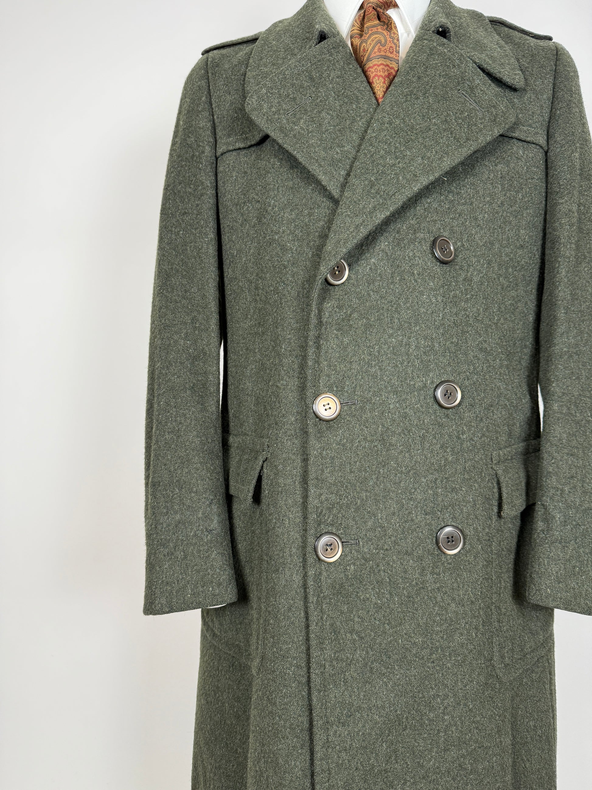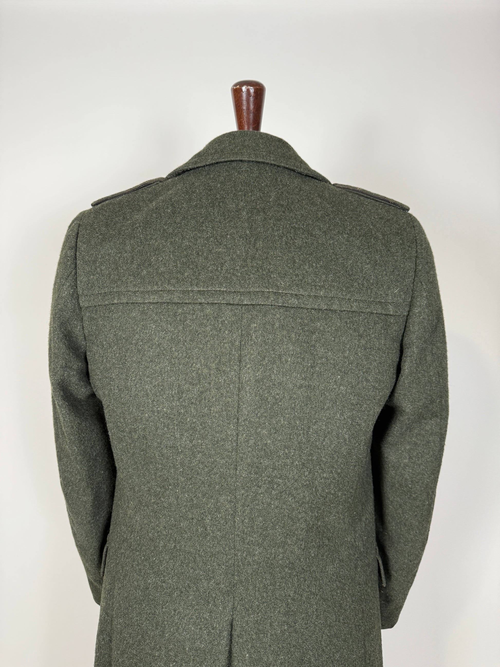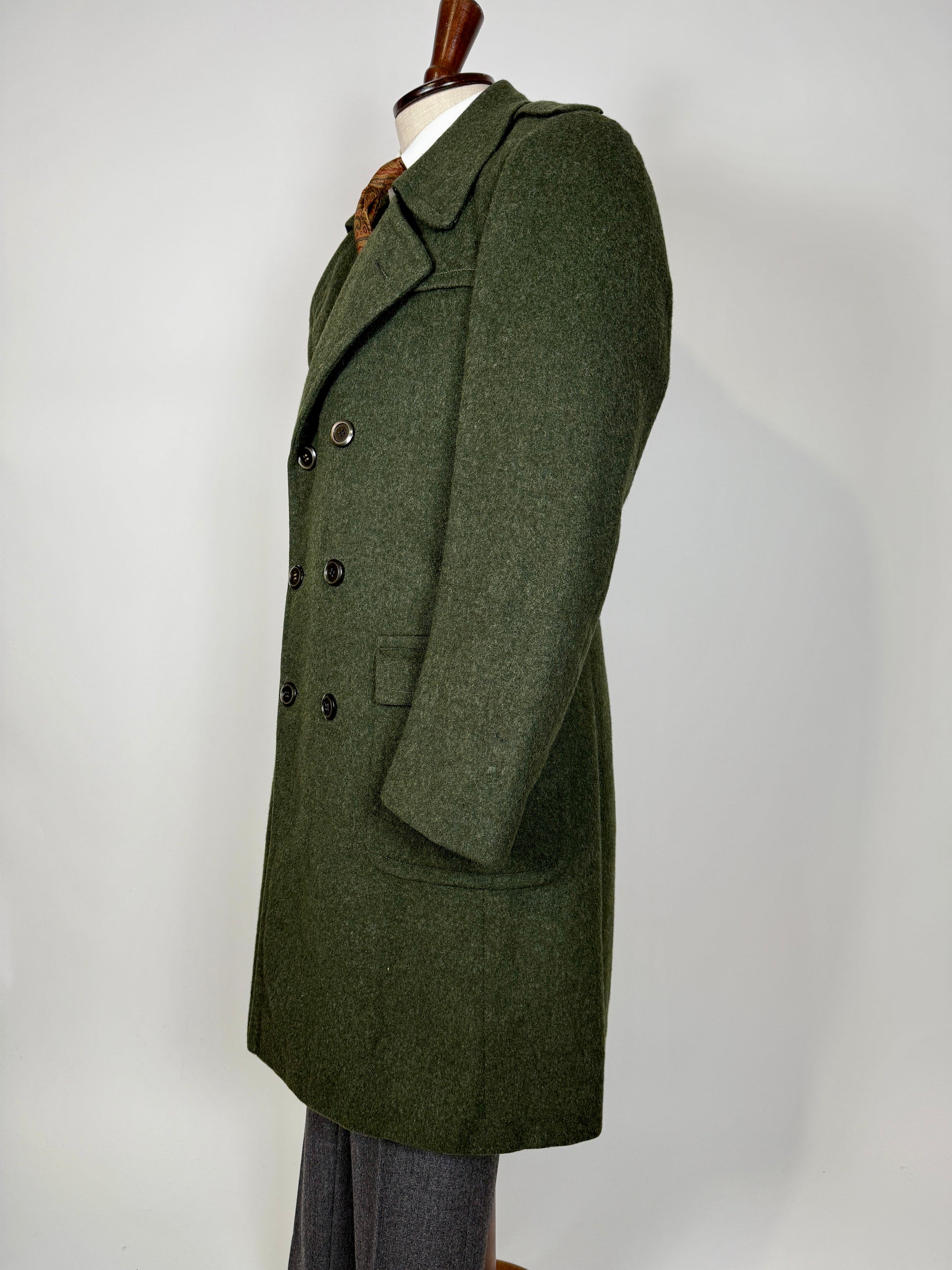Cappotto loden in una non comune versione doppiopetto, confezione anni ‘70/‘80 dalla nota catena Valstar di Milano.