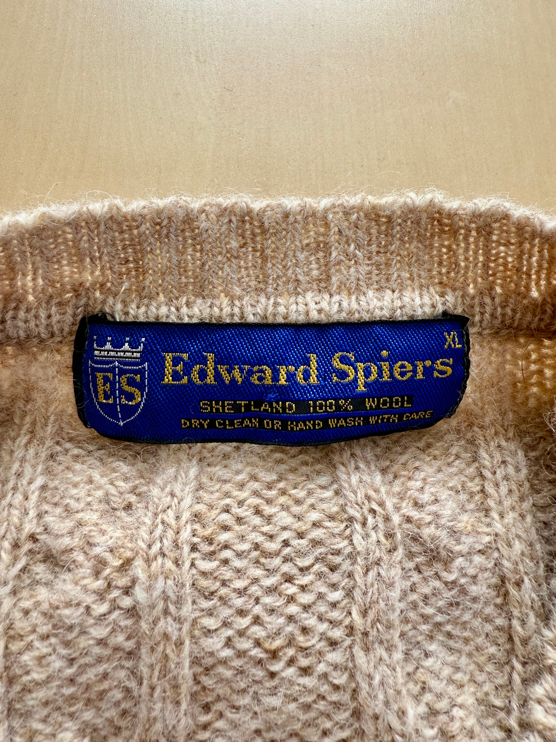 Maglione anni ‘80/‘90 Edward Spiers, 100% pesante lana shetland con lavorazione a trecce.