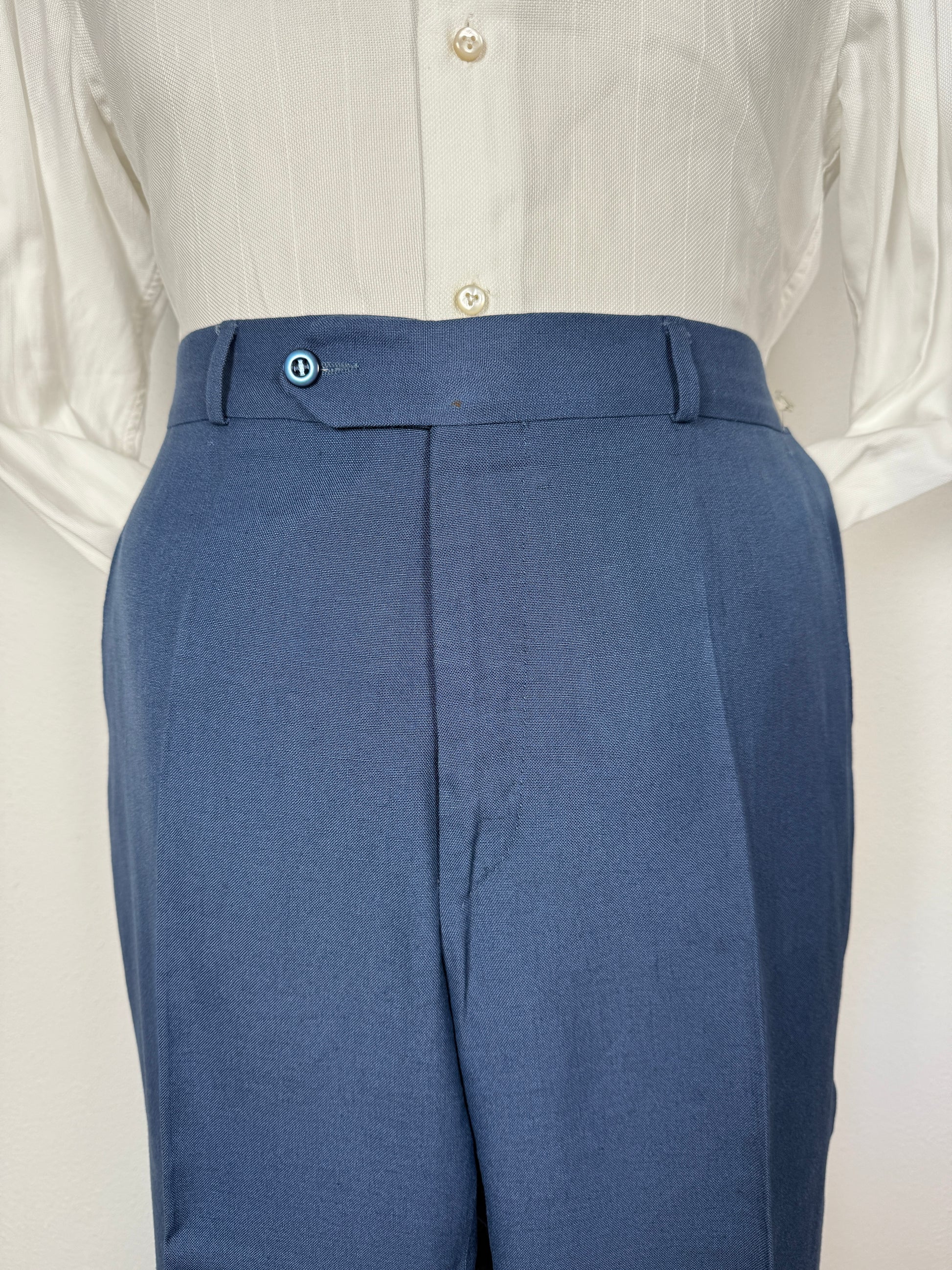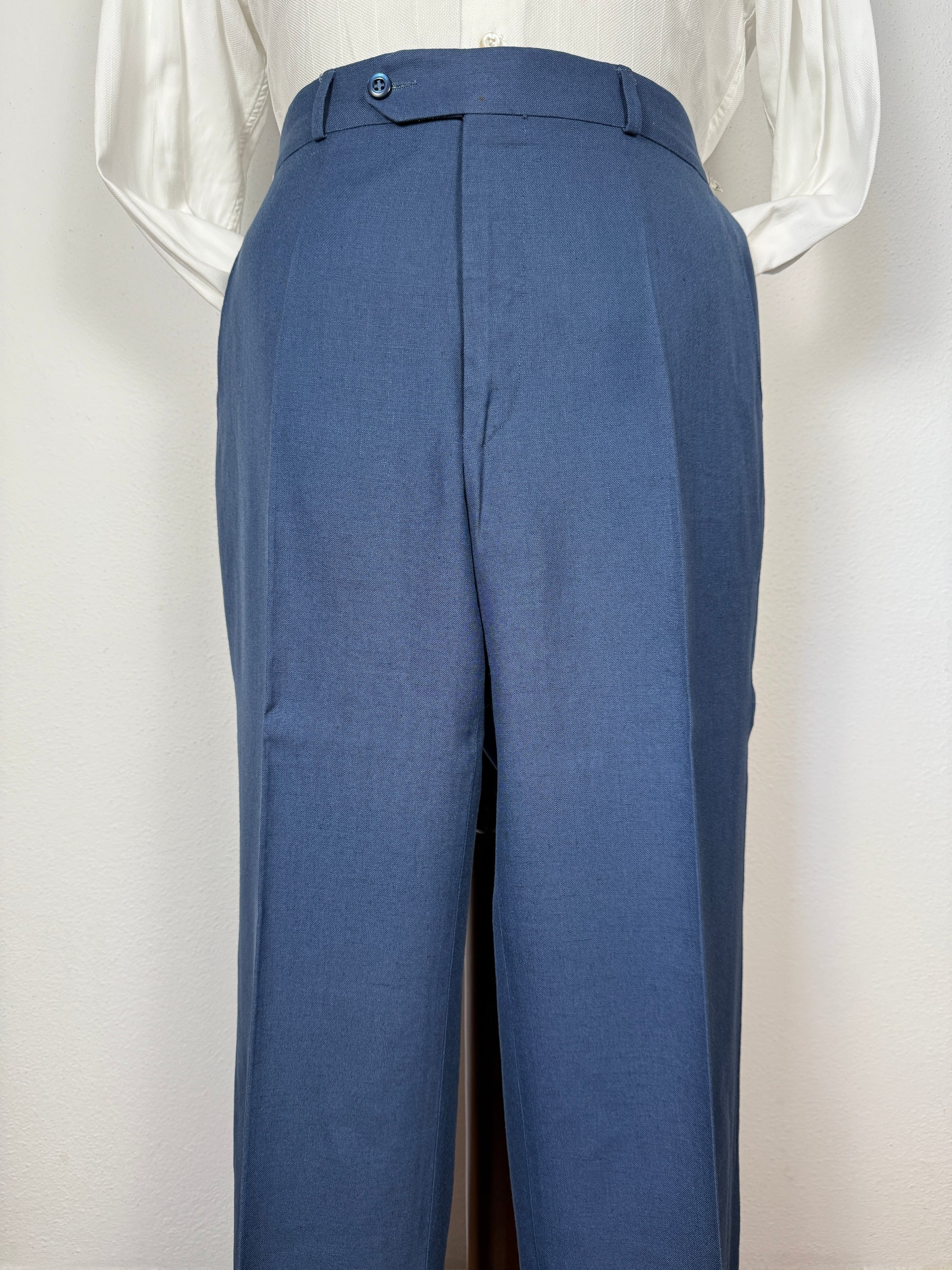 Pantalone estivo anni ‘70 in un bellissimo blu cobalto, tessuto in tela 75% viscosa e 25% lino.
