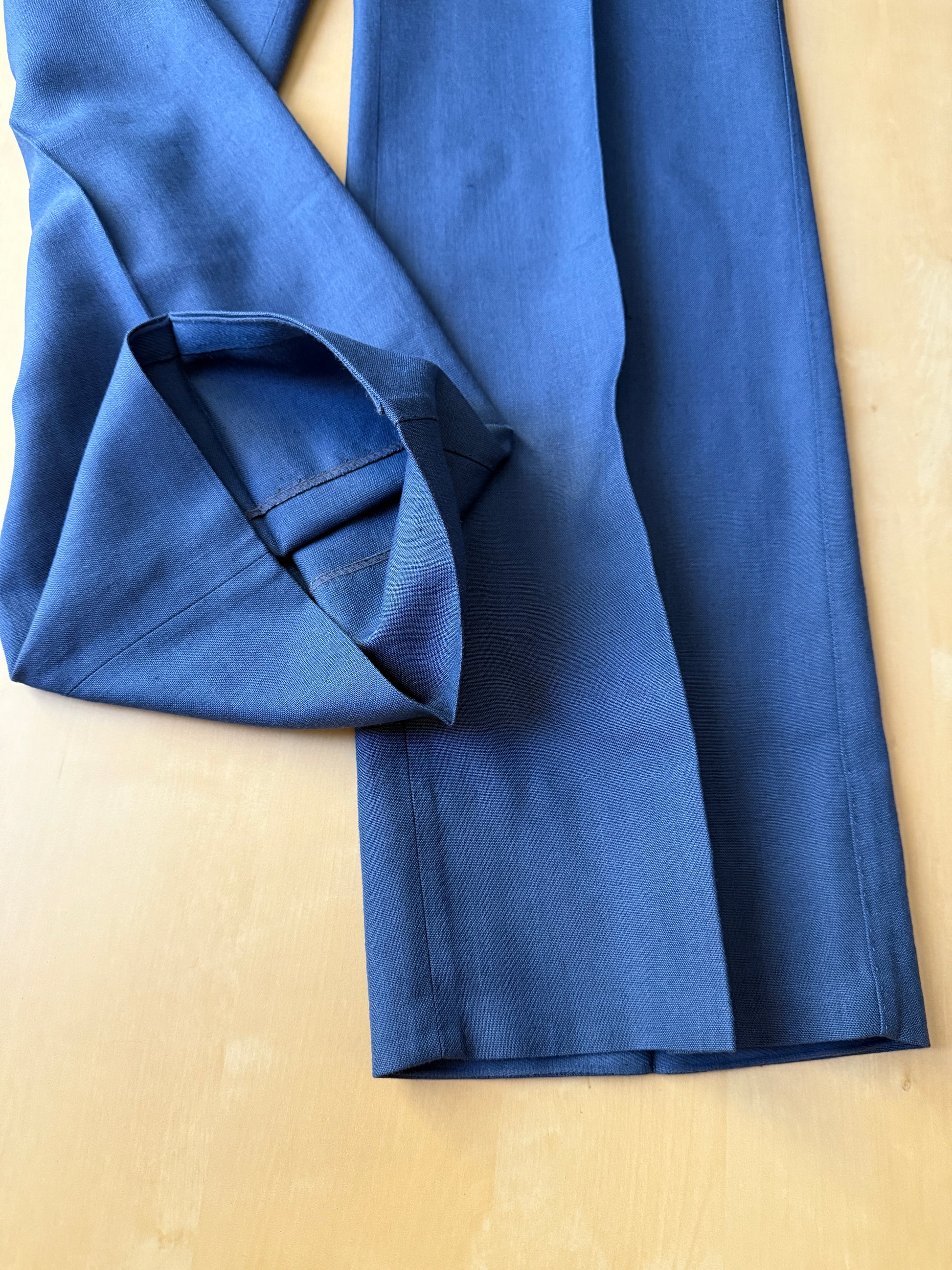 Pantalone anni ‘70 in lino e viscosa blu cobalto - tg. 50