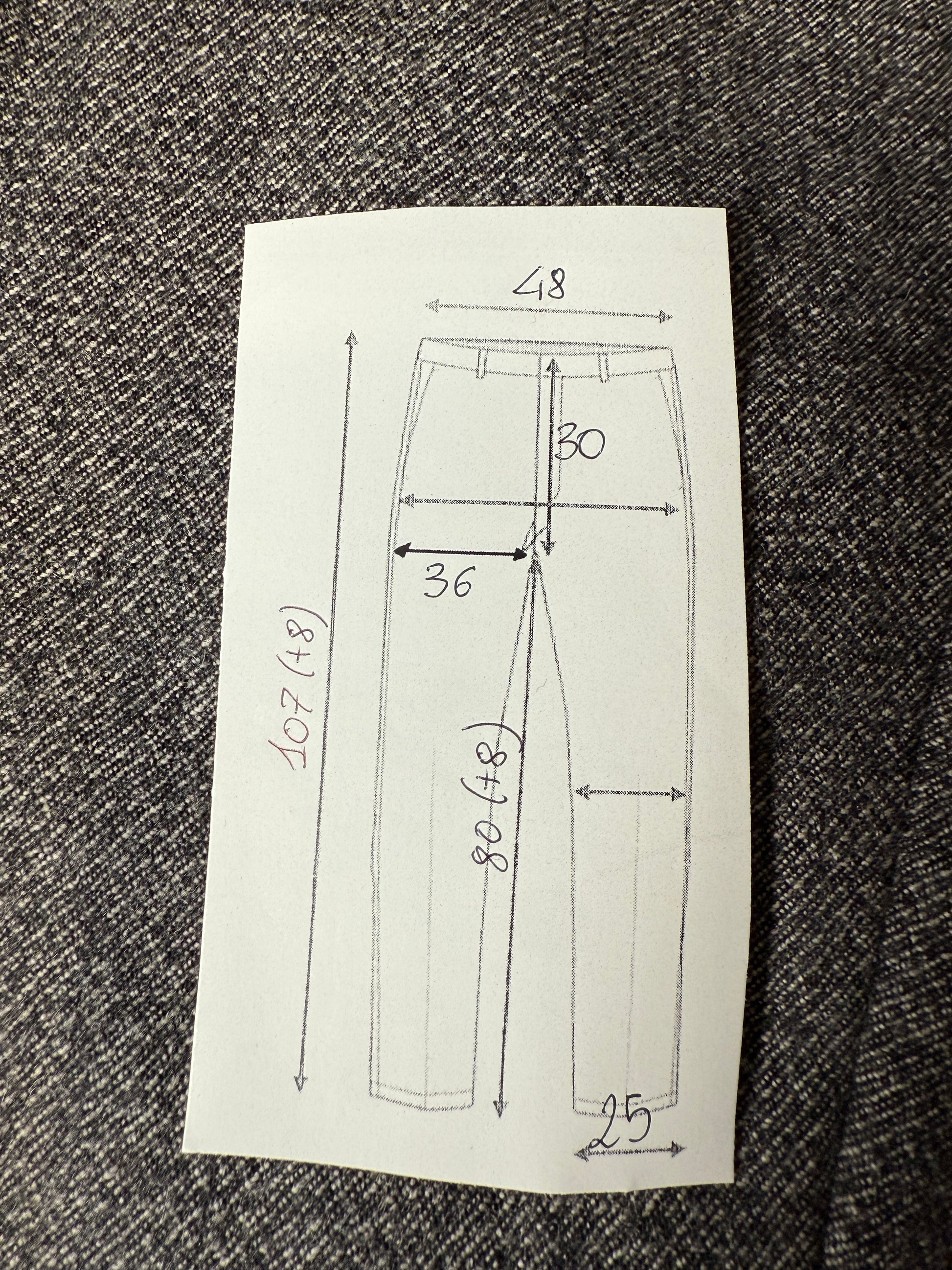 ⚠️ Per evitare incertezze, col numero seguito dal + indichiamo non la misura di tutto l'interno d'orlo, ma bensì il numero massimo di cm utilizzabile per allungare il pantalone: tenendo quindi conto del margine minimo che andrà lasciato all'interno (di solito almeno 3 cm), che dipende anche dal tipo di tessuto.