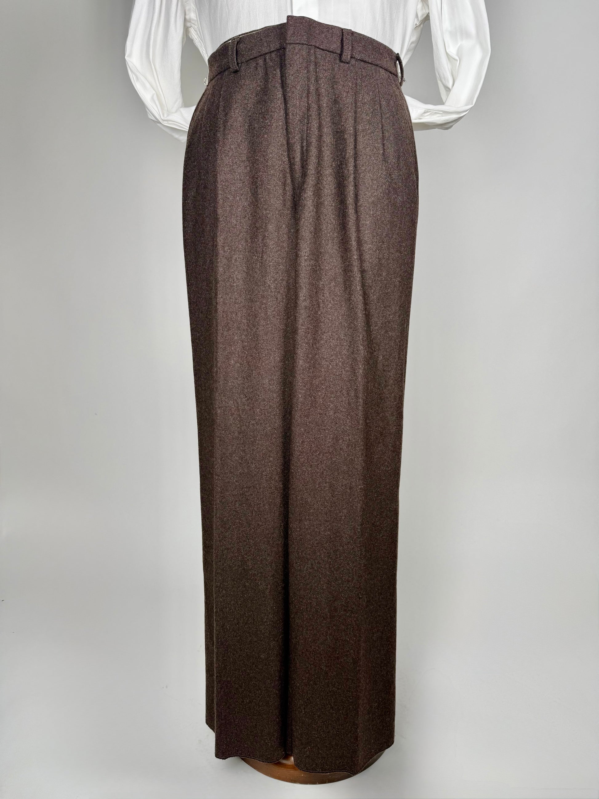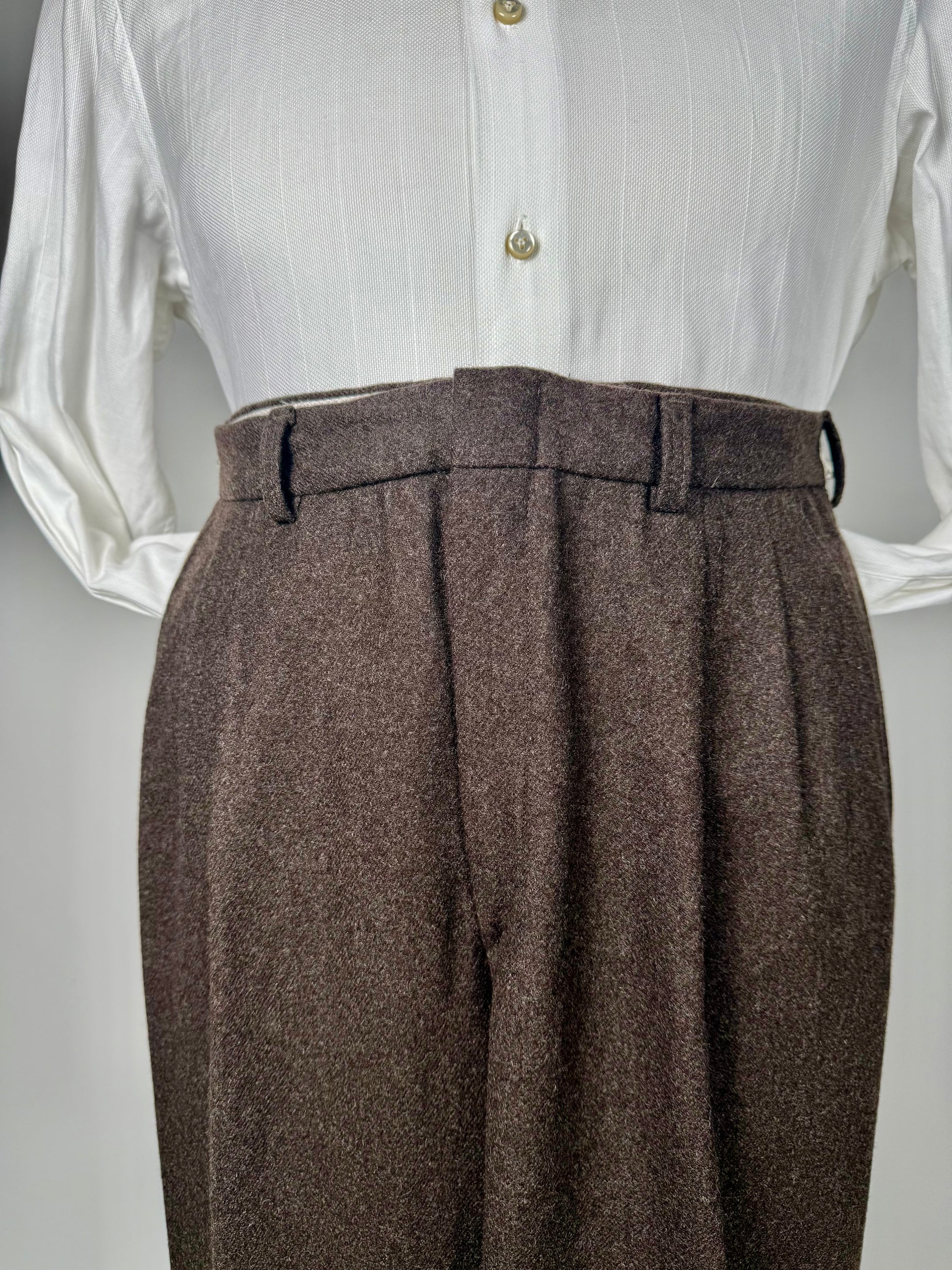 Pantaloni anni ‘80 in una bella flanella pesante 100% lana, colore marrone.