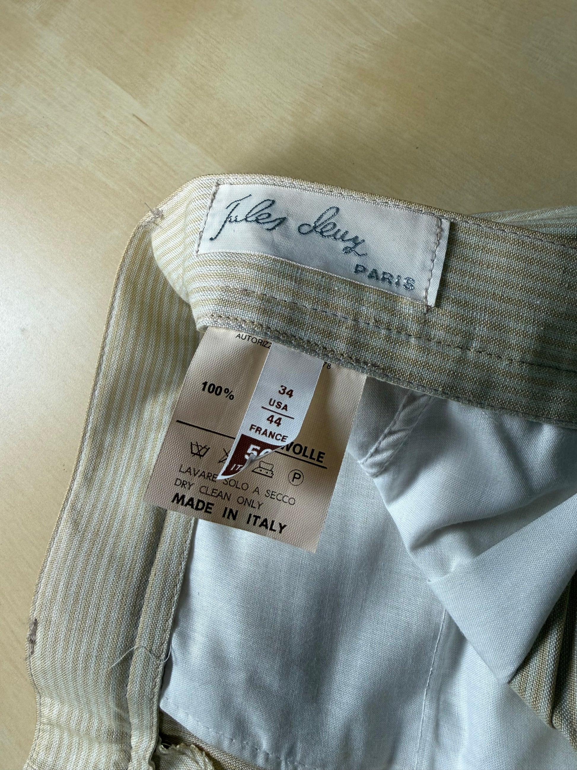 Pantaloni anni ‘80 tela di cotone a righe giallo pastello (NOS) - tg. 48