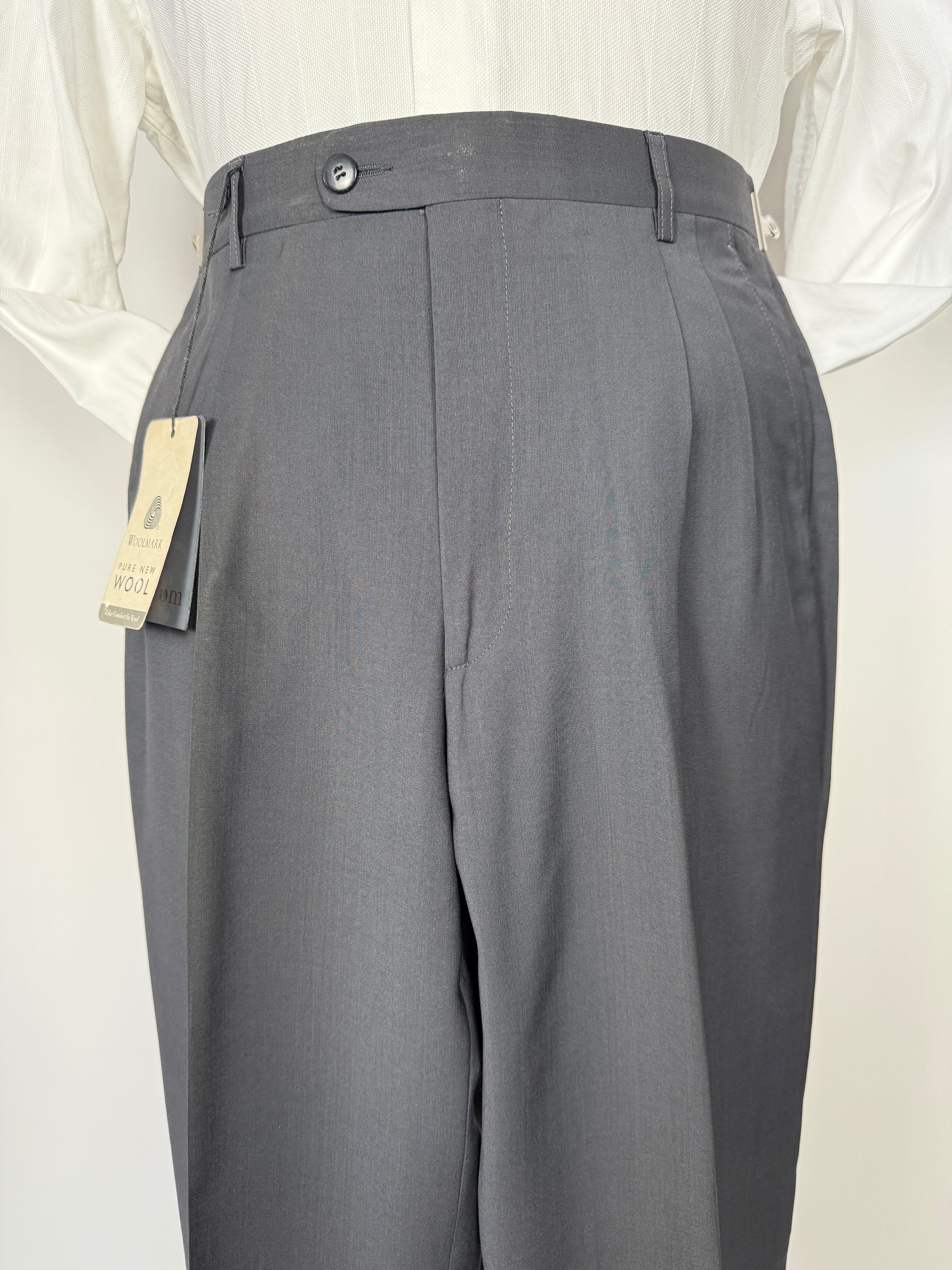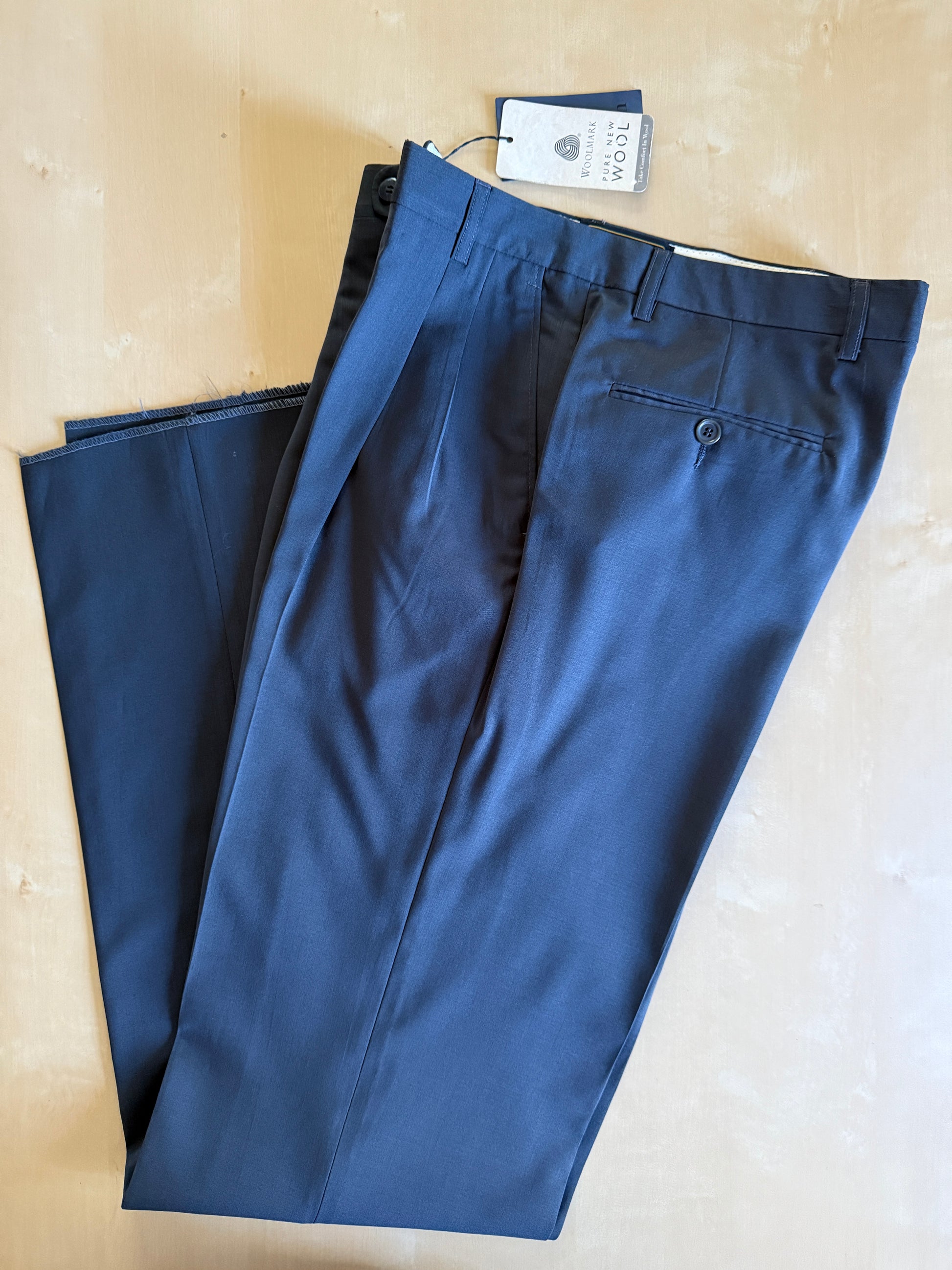 Pantalone da fondo di magazzino anni ‘90, in fresco lana color verde petrolio scuro.