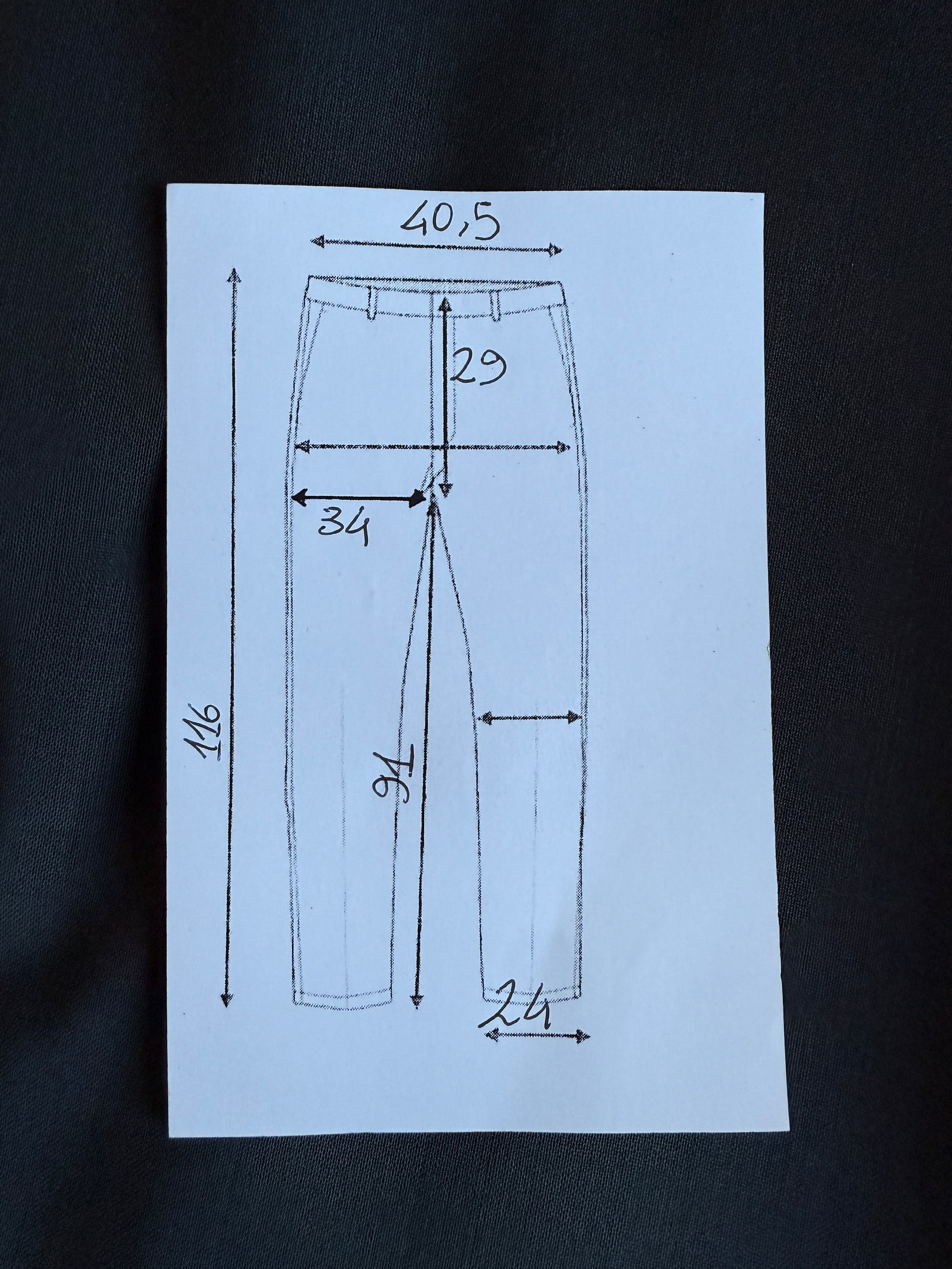 ⚠️Perché il confronto sia più preciso e per ridurre al minimo gli errori di taglia, è fondamentale confrontare le misure del pantalone che vi interessa sul sito con quelle di un vostro pantalone che sia il più possibile analogo come taglio e modello.