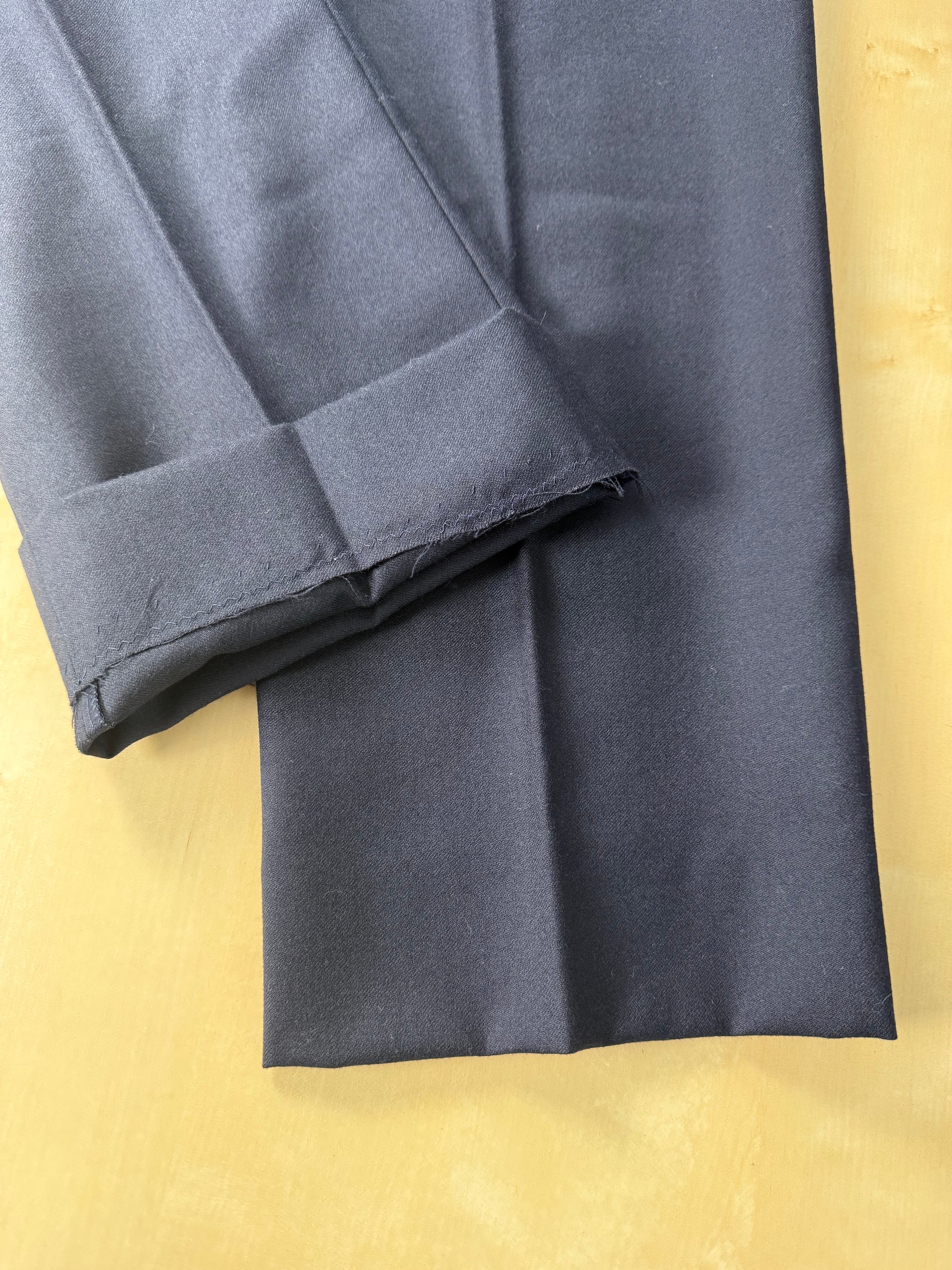 Pantaloni anni ‘90 in flanella 100% lana, colore blu notte.