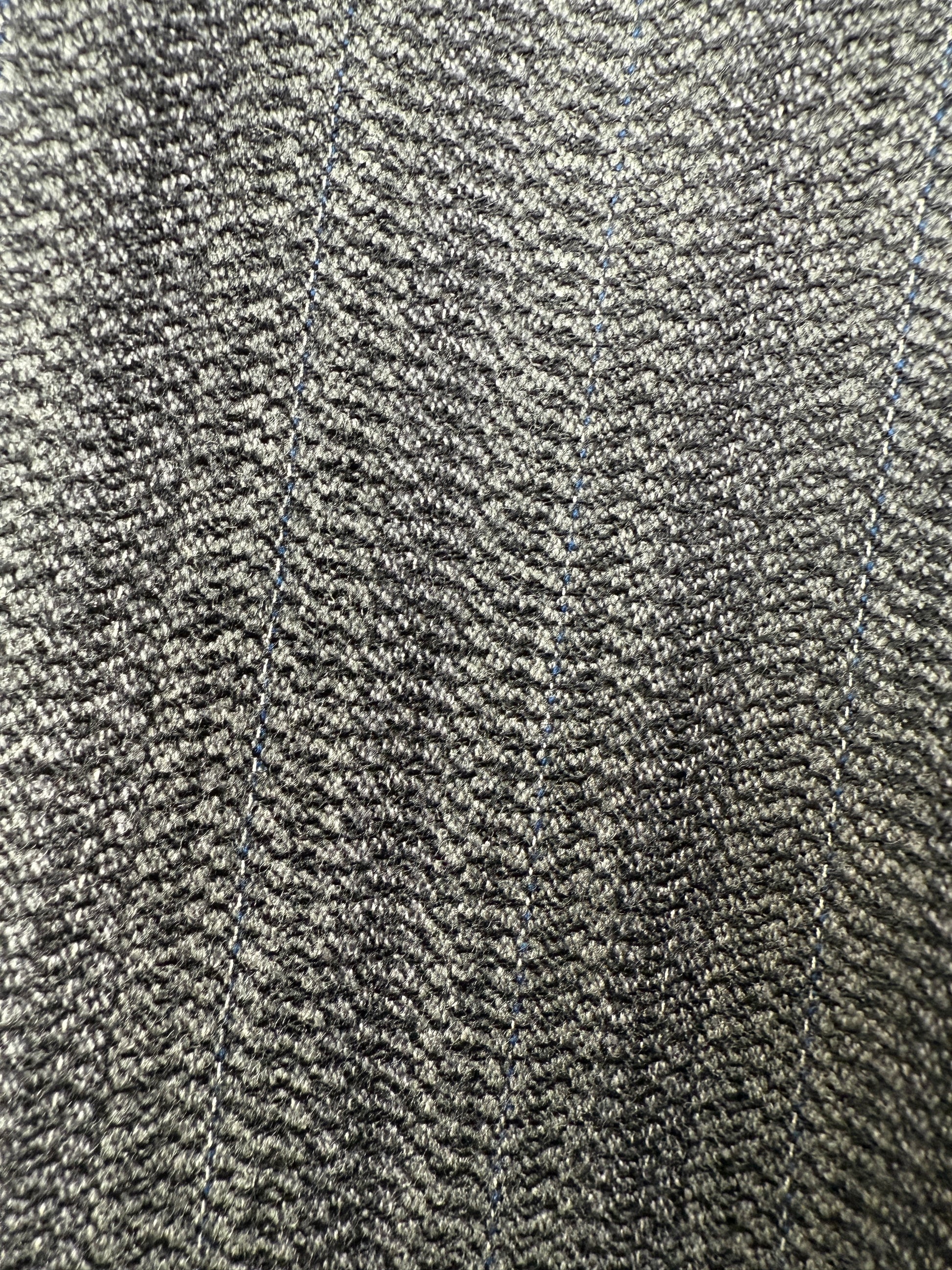 Tessuto tweed 100% lana colore grigio medio, con trama a righe verticali e lavorazione effetto sale-pepe.